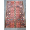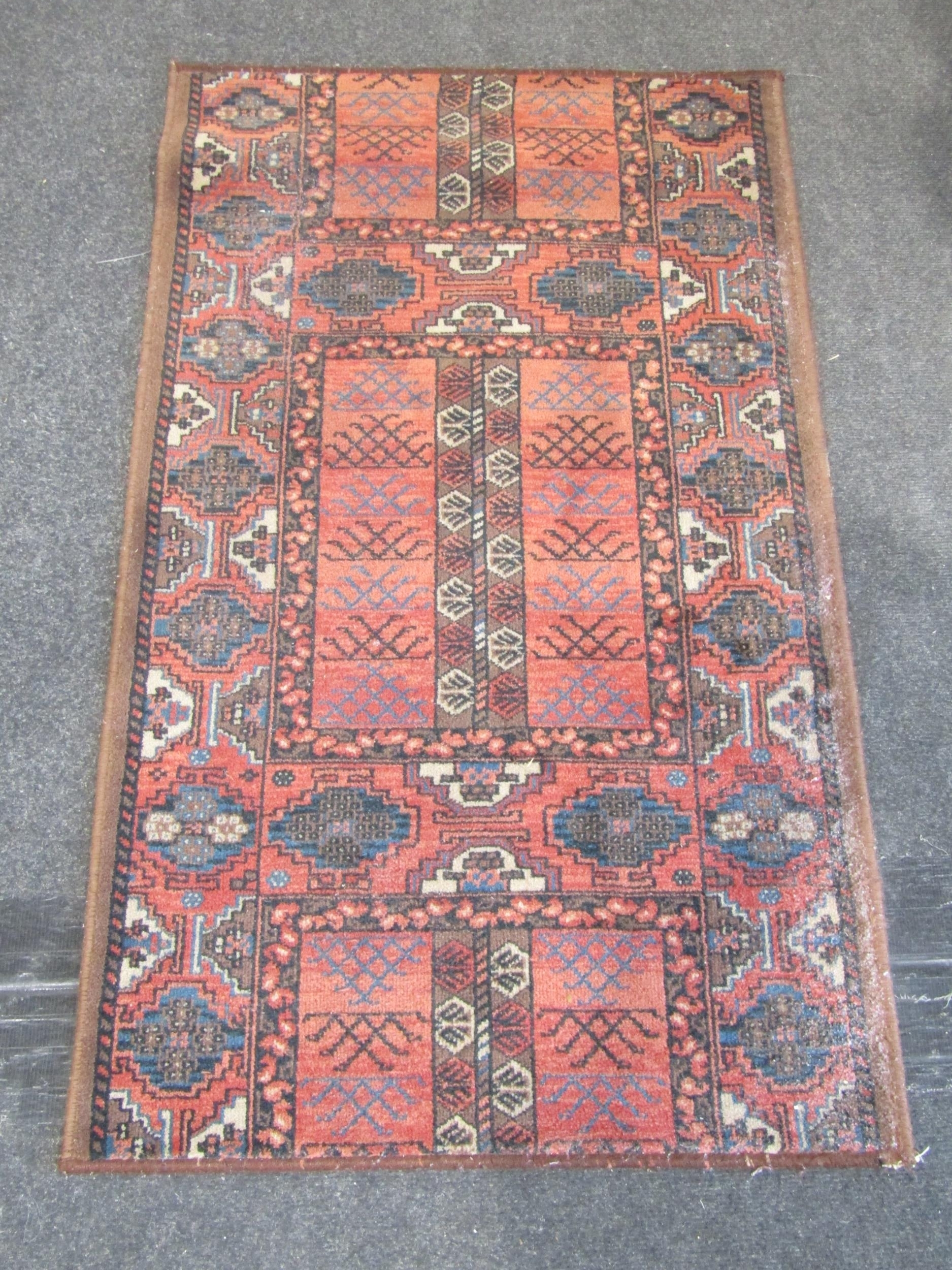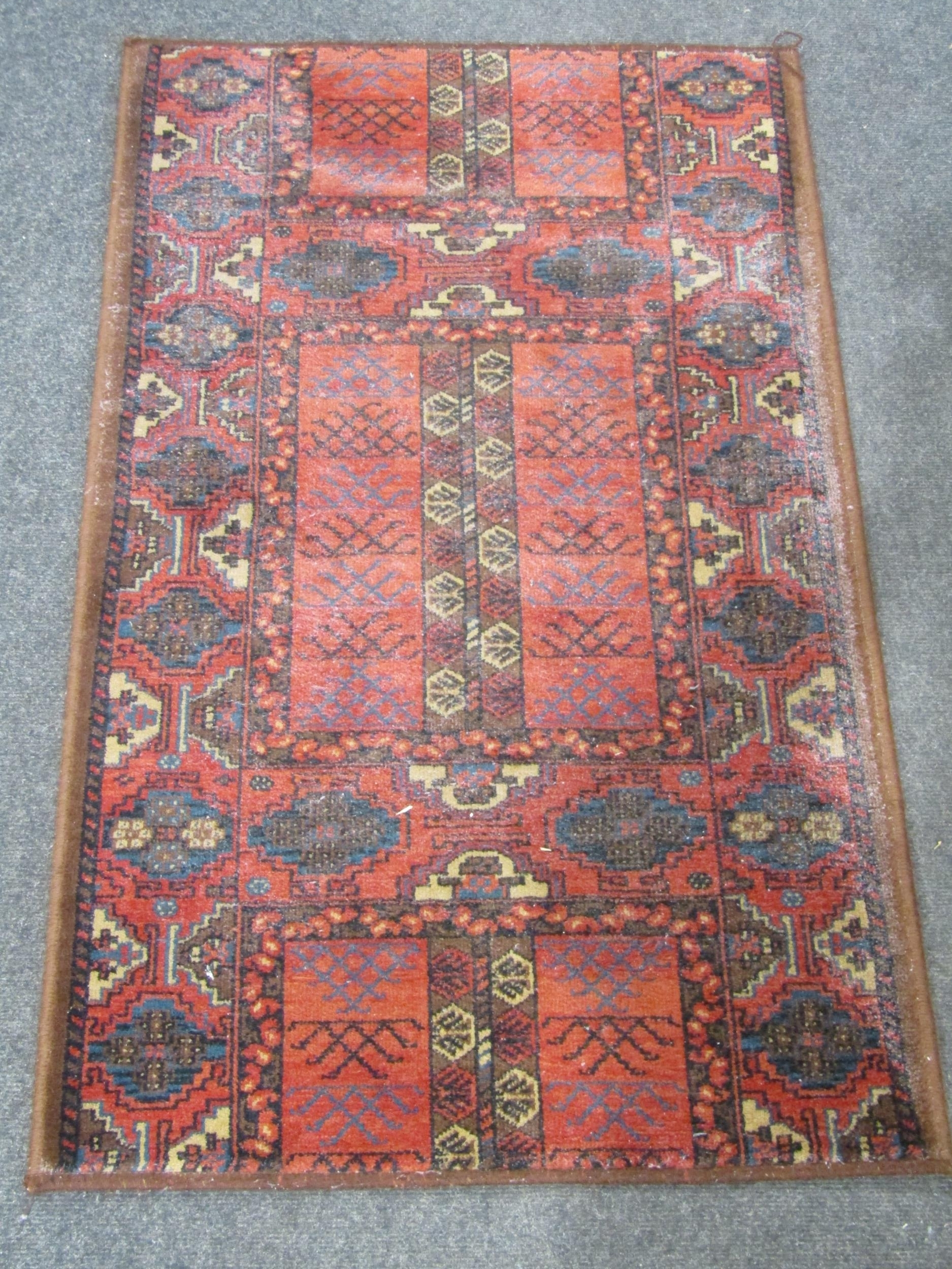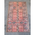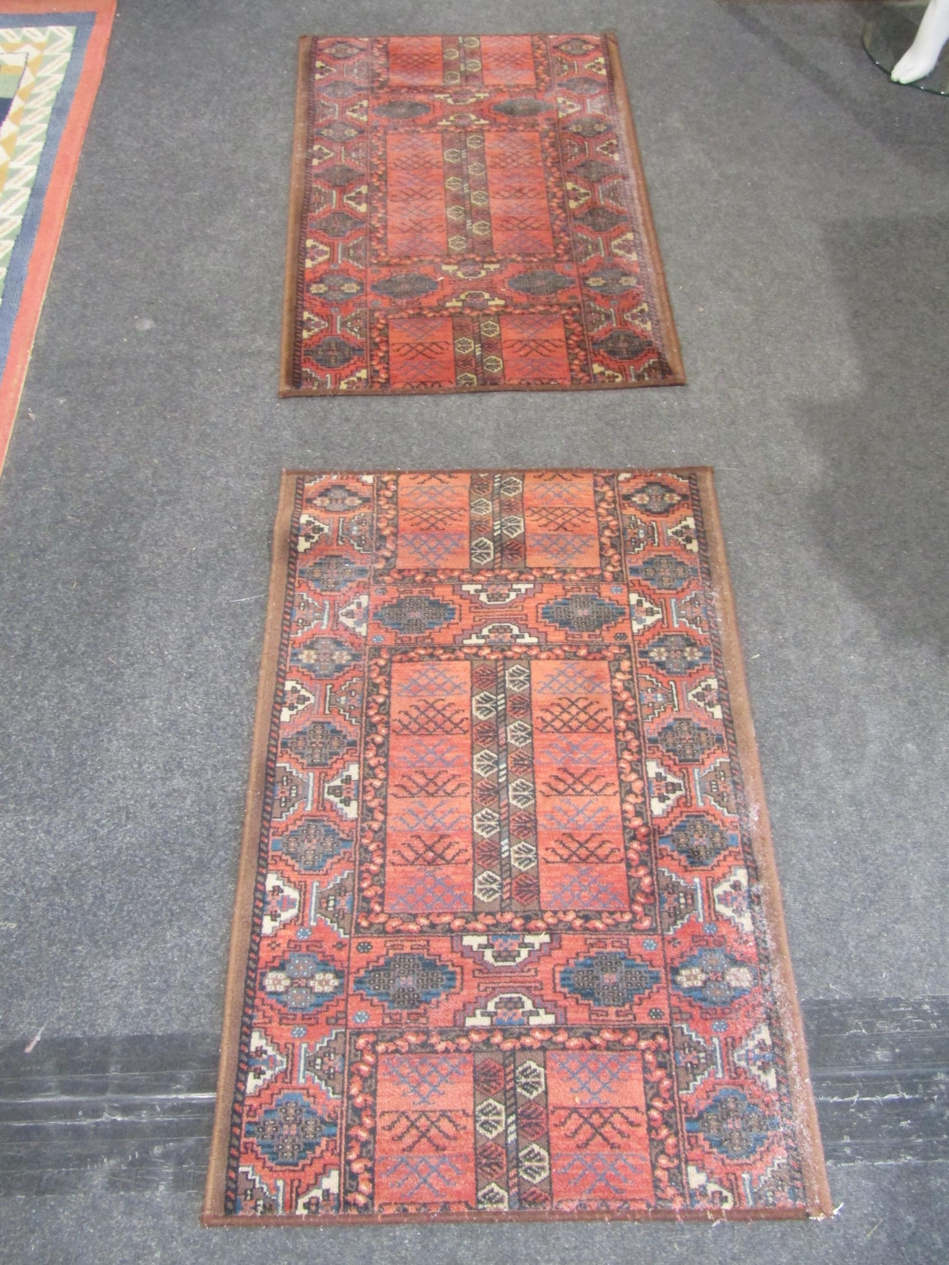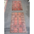 A pair of red ground rugs with geometric designs (each 3' 10" x 2' 3")