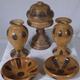 Collection of early 20th Century turned banana wood items inc pair of bulbous vases with original metal liners, a side lamp with turned wood shade and a pair of fruit bowls both bowls cracked