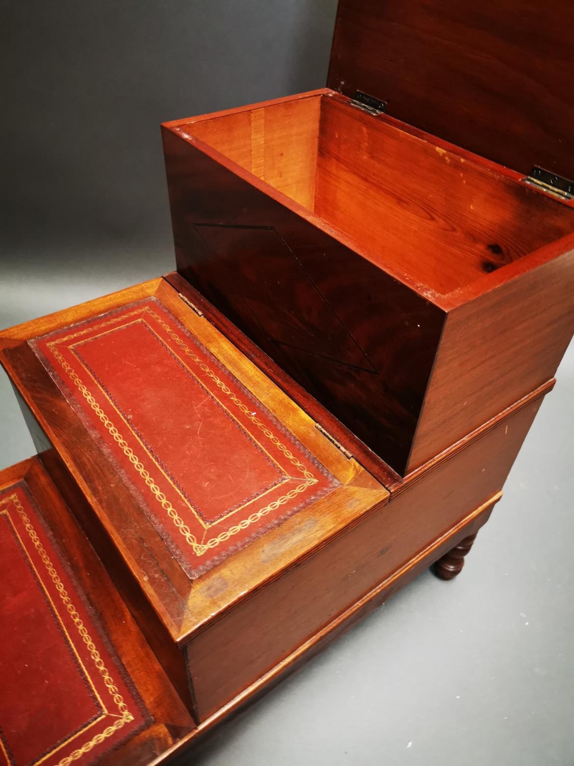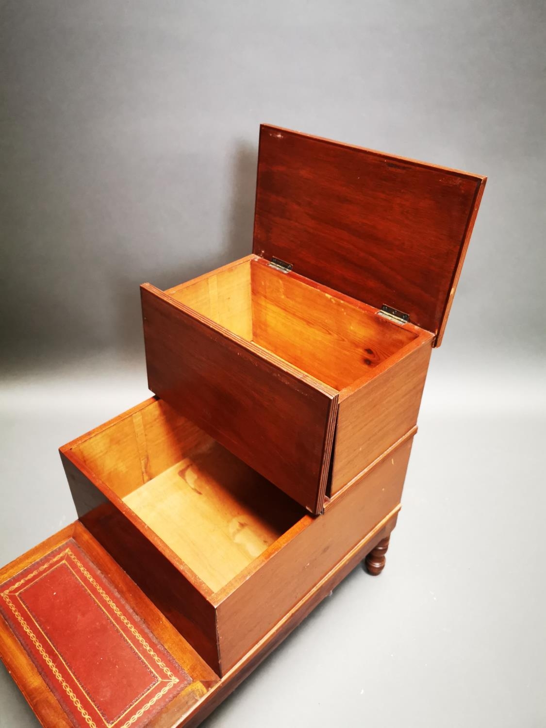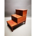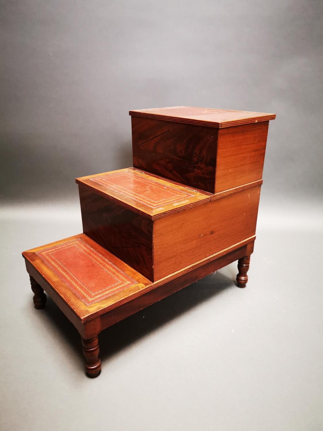 Victorian mahogany library steps with inset leather panels on turned legs {62 cm H x 42 cm W x 68 cm D}.