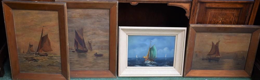 Pictures - maritime interest - a trio of sailing boats, oils on canvas, unsigned, two portrait, one landscape; another larger (4)