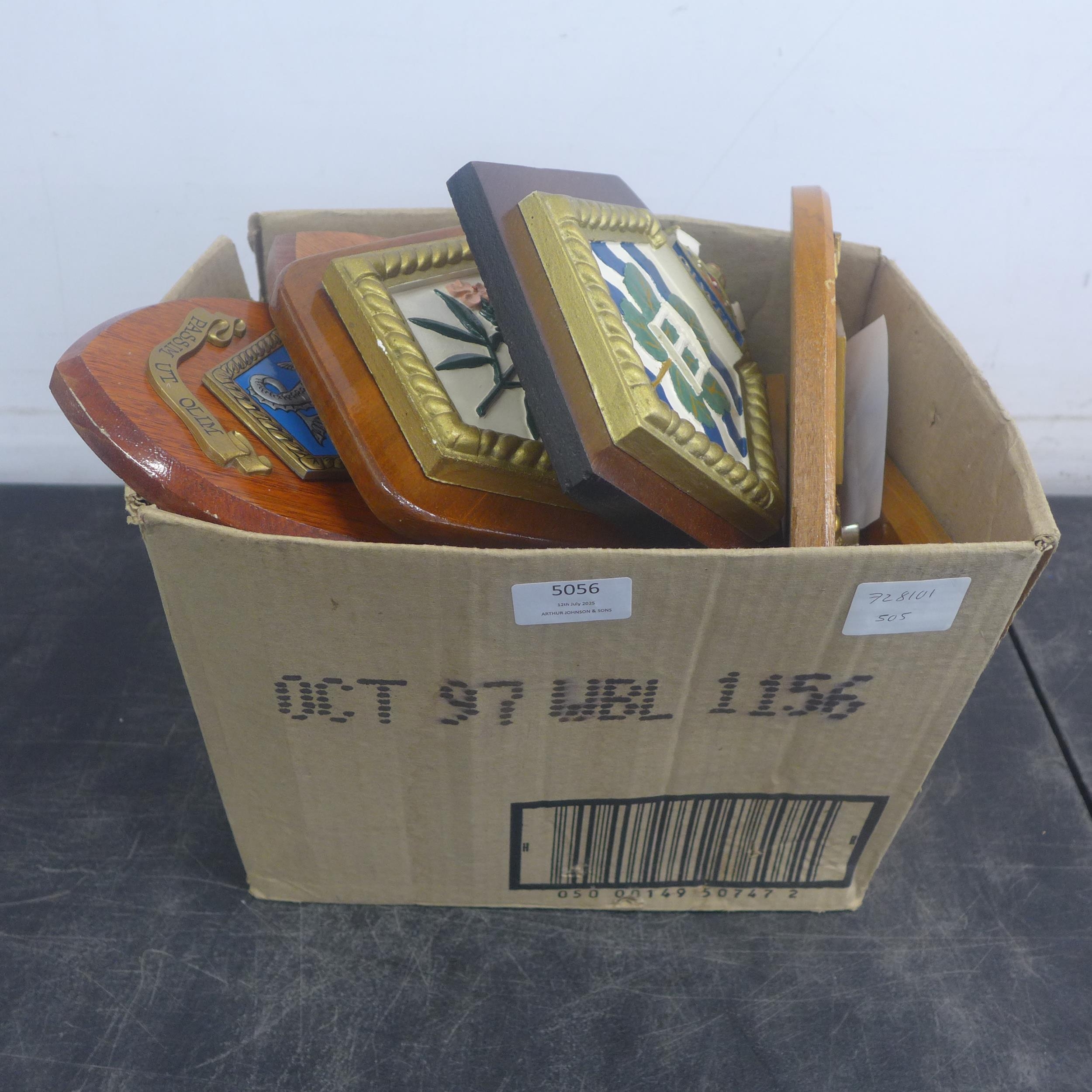 A quantity of assorted wooden plaques including R.F.A. Gold Rover, Olwen, Olmeda, etc.