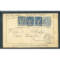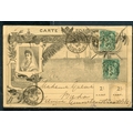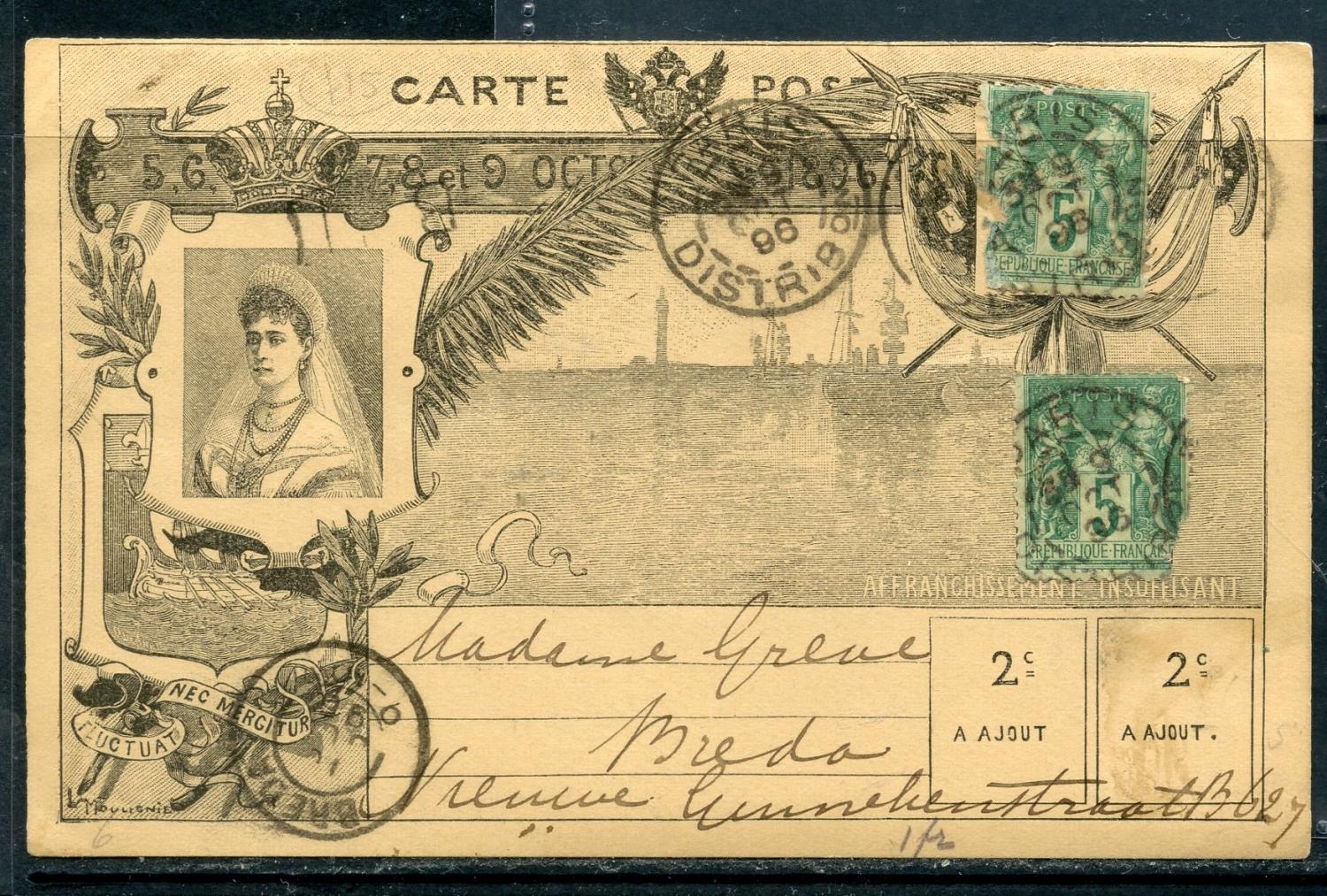 FRANCE 1896 postal card to Netherlands celebrating the Russian Naval visit franked with 5c sage x 2 (damaged).