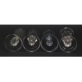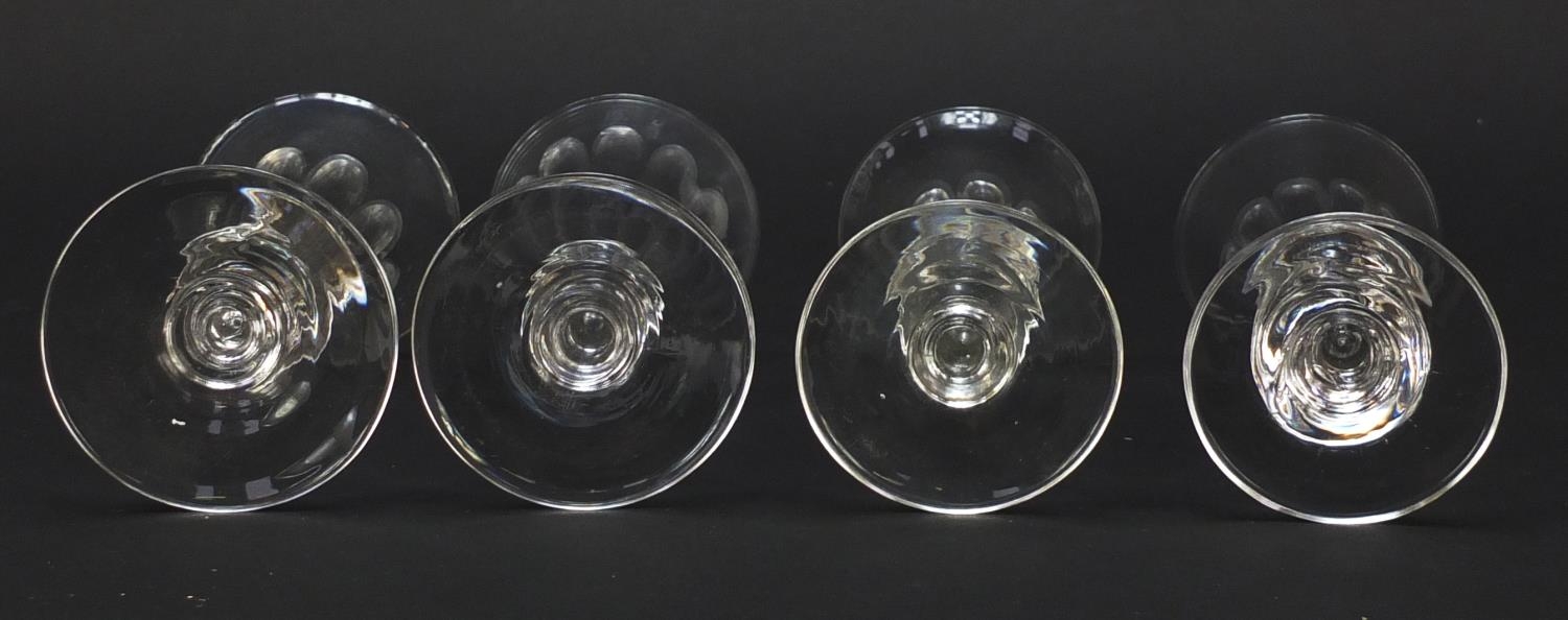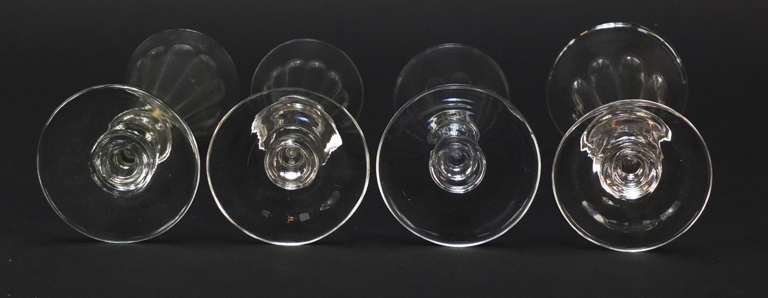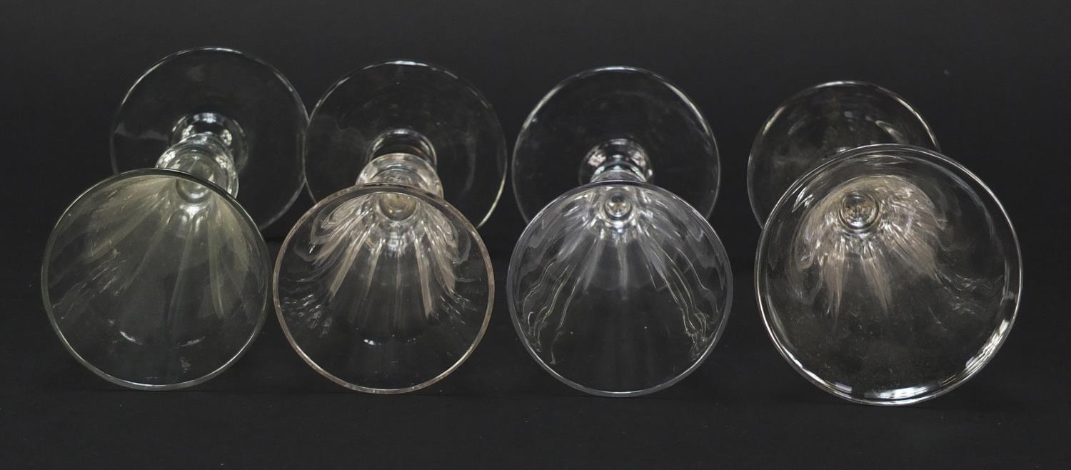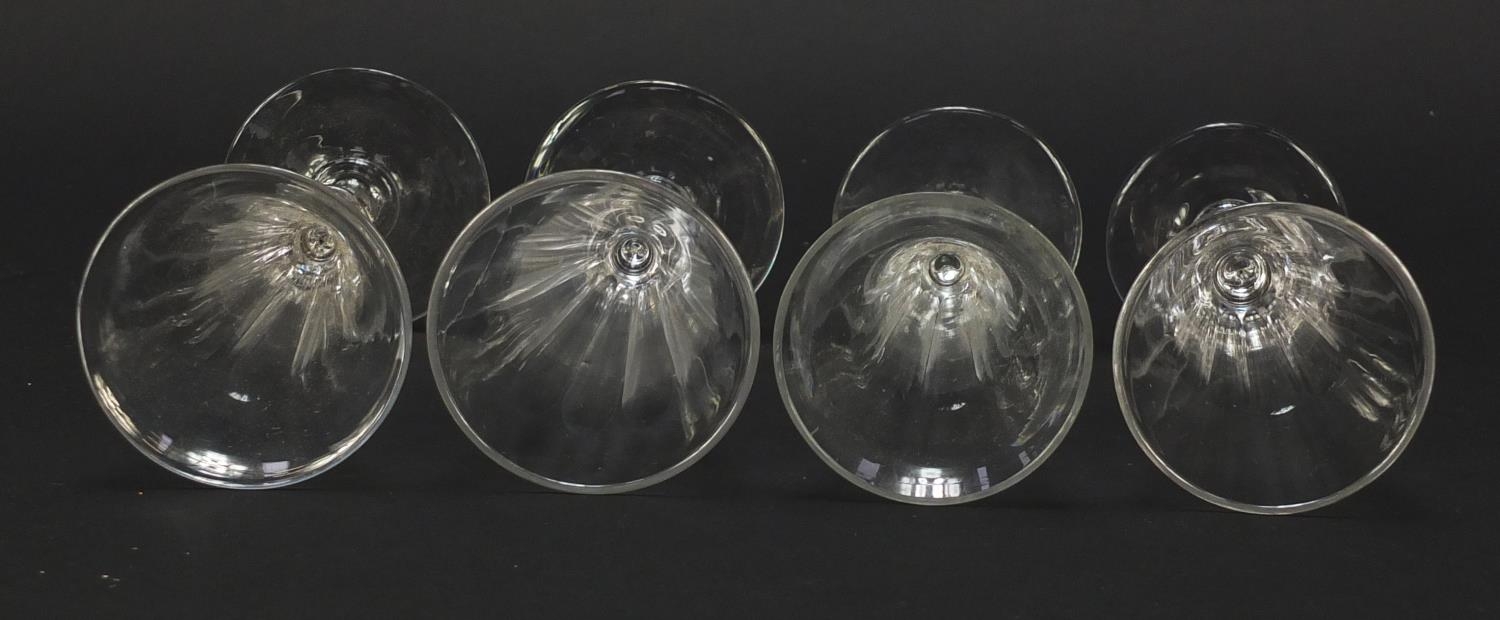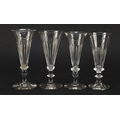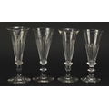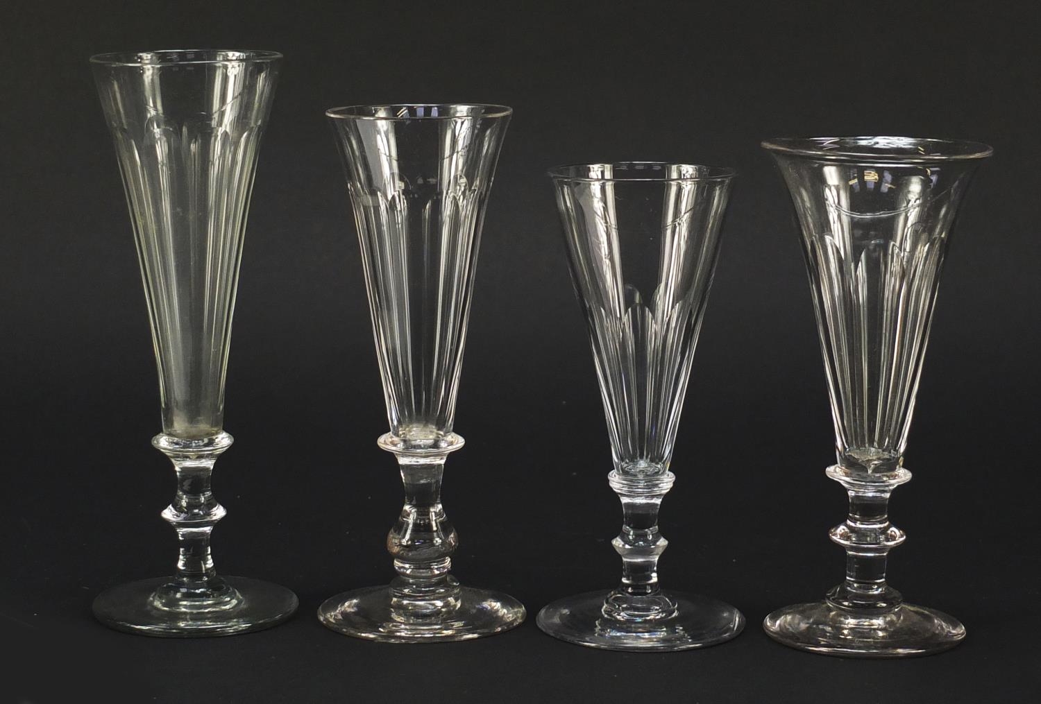 Eight 18th/19th century Champagne flutes with blade collars and knopped stems, the largest 15.5cm high