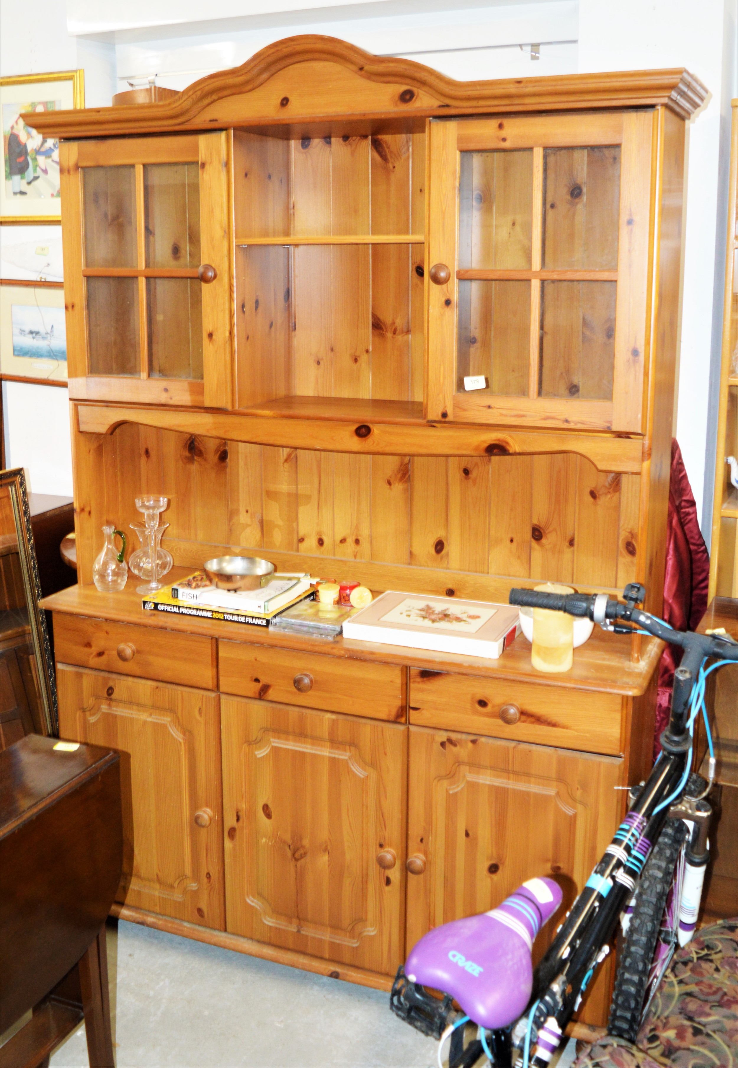 Pine Kitchen Dresser (Base has 3 Drawers over 3 Cupboards, and Separate Top has Glazed Display Sections) - 51" W x 77" H x 16" D
