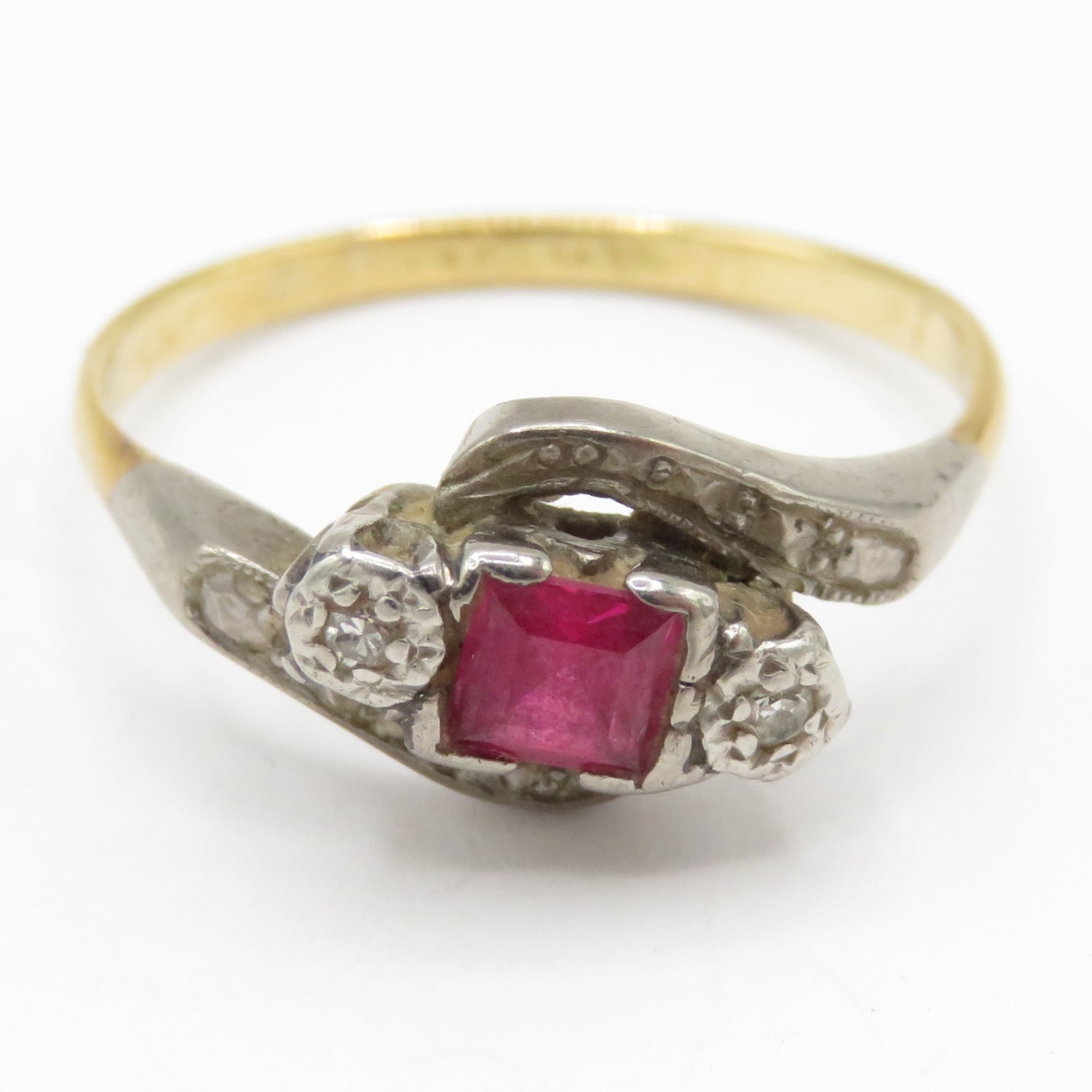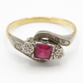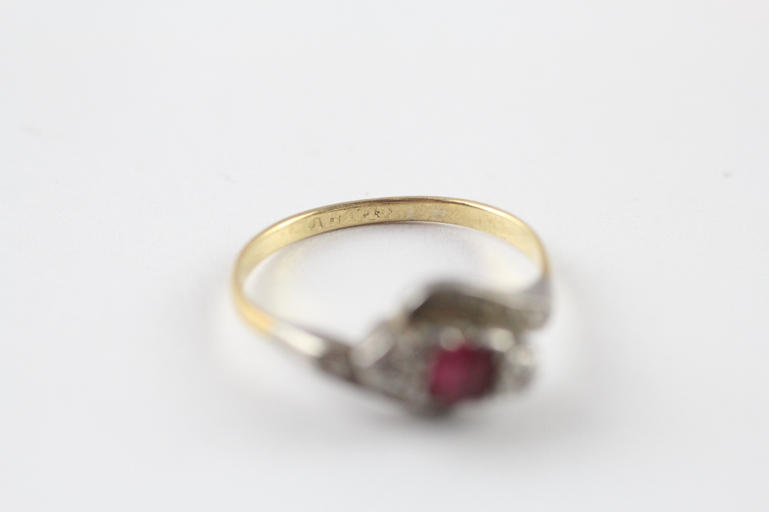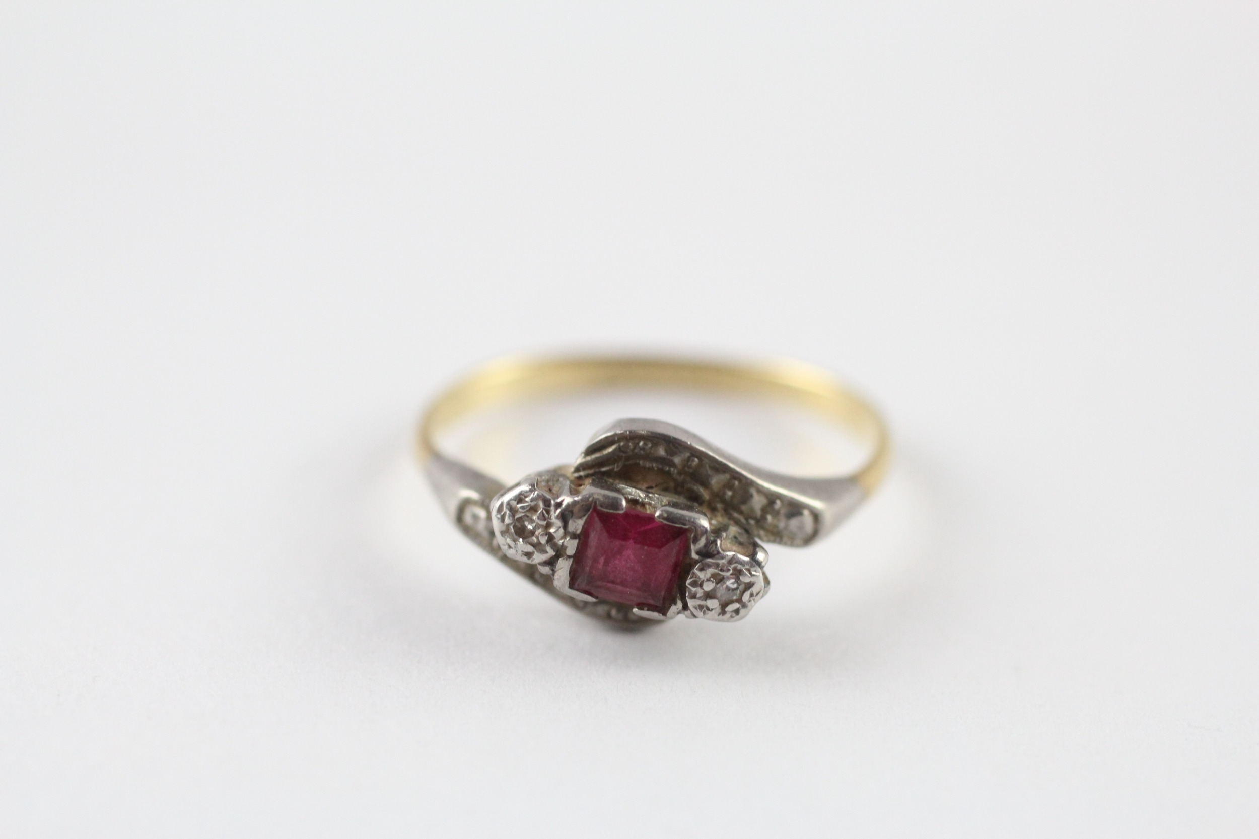 18ct gold synthetic ruby diamond bypass ring (2g) Size M