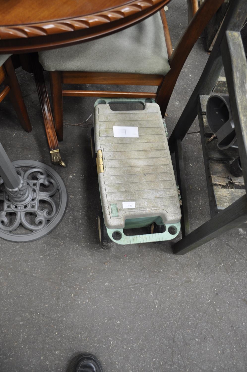 4 WHEELED GARDENERS TROLLEY WITH BULB PLANTER AND FORK