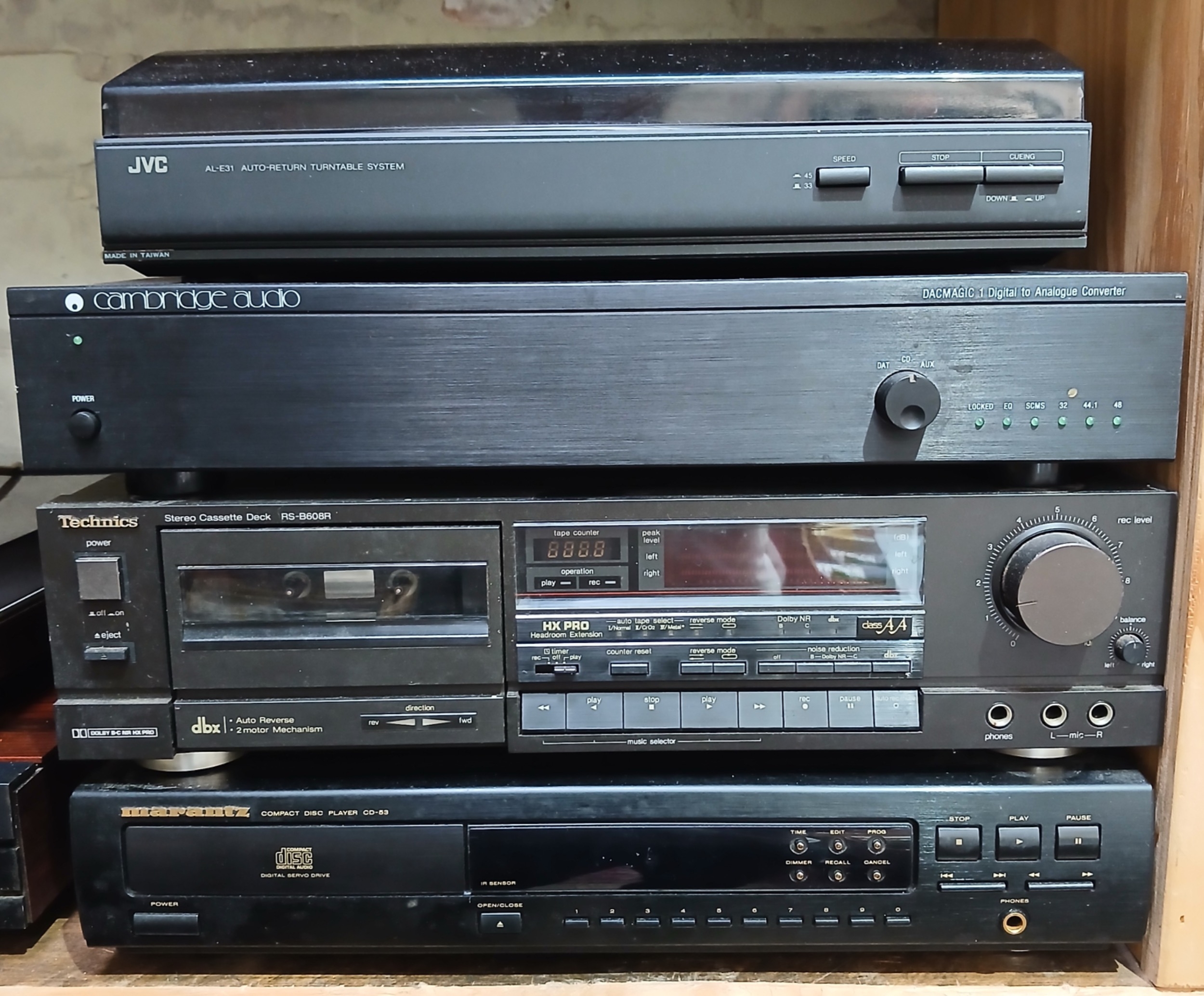 Assorted separates comprising Cambridge Audio DACMAGIC digital/analog converter, Technics RS-B608R, Marantz CD-53 etc.