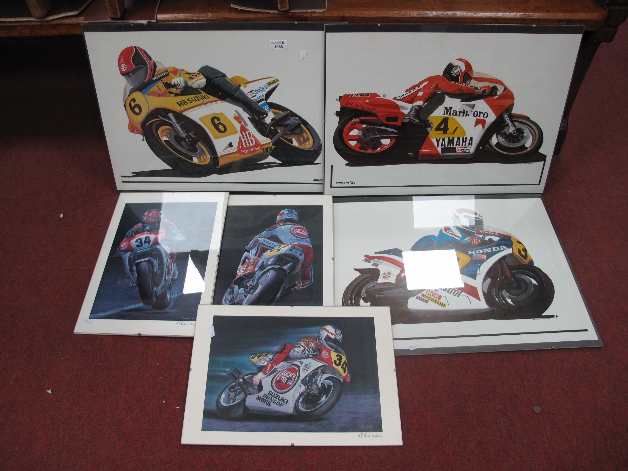 R. J. House, Kevin Schwantz, limited edition colour prints of 100 (2) and 1500 - 34.5 x 24.5cm, each signed by the artist Richard Jakes, colour prints of Mamola Spencer and Roberts (6).