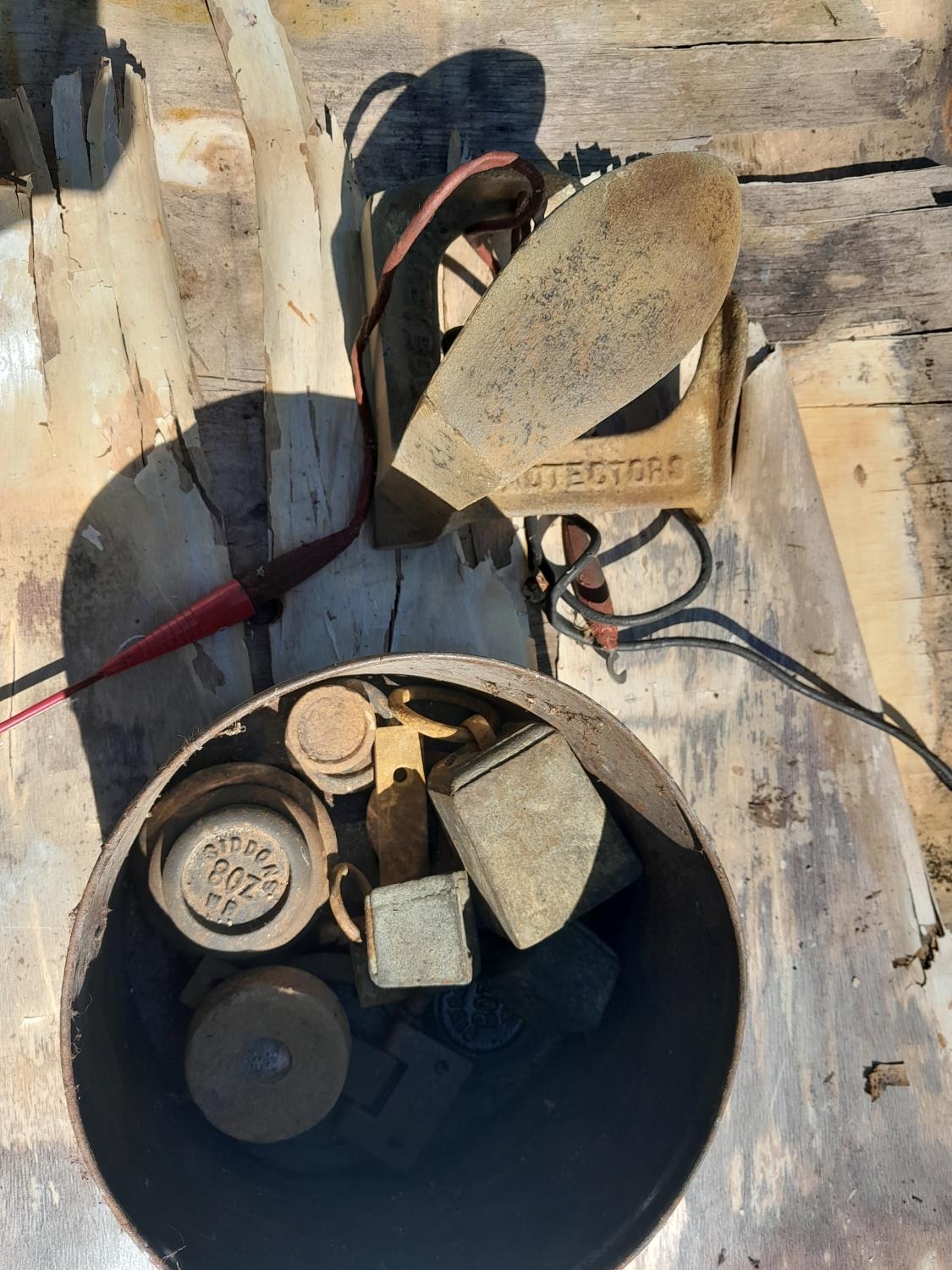 Signed print, lavender in a bucket , scale weights etc