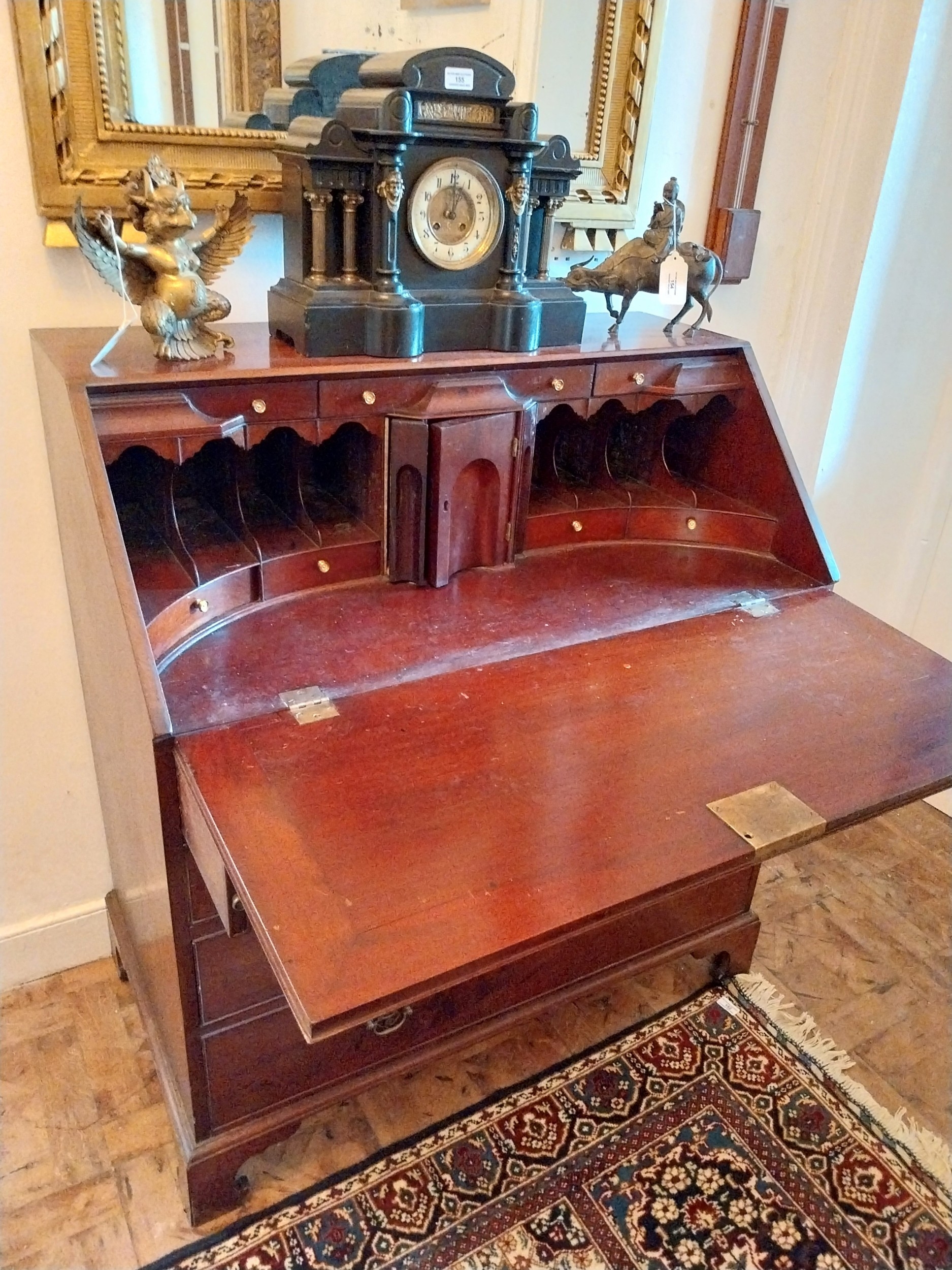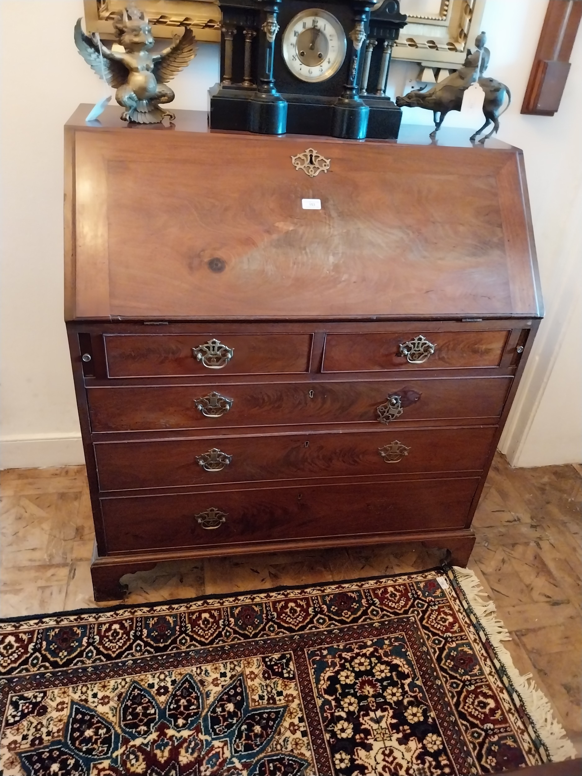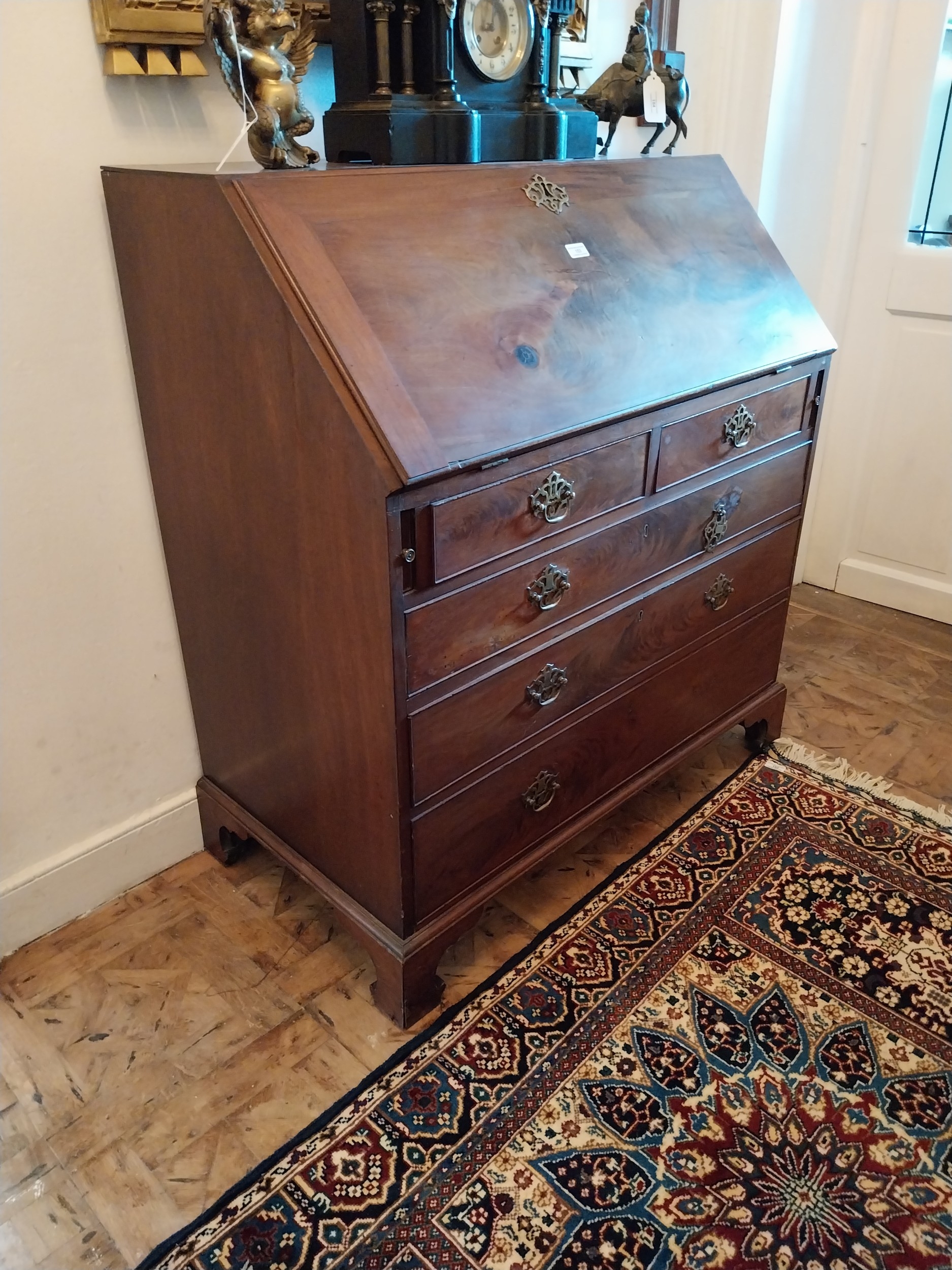 Georgian mahogany bureau chest of drawers with fitted interior, raised on bracket feet. { 110cm H X 99cm W X 55cm D }.