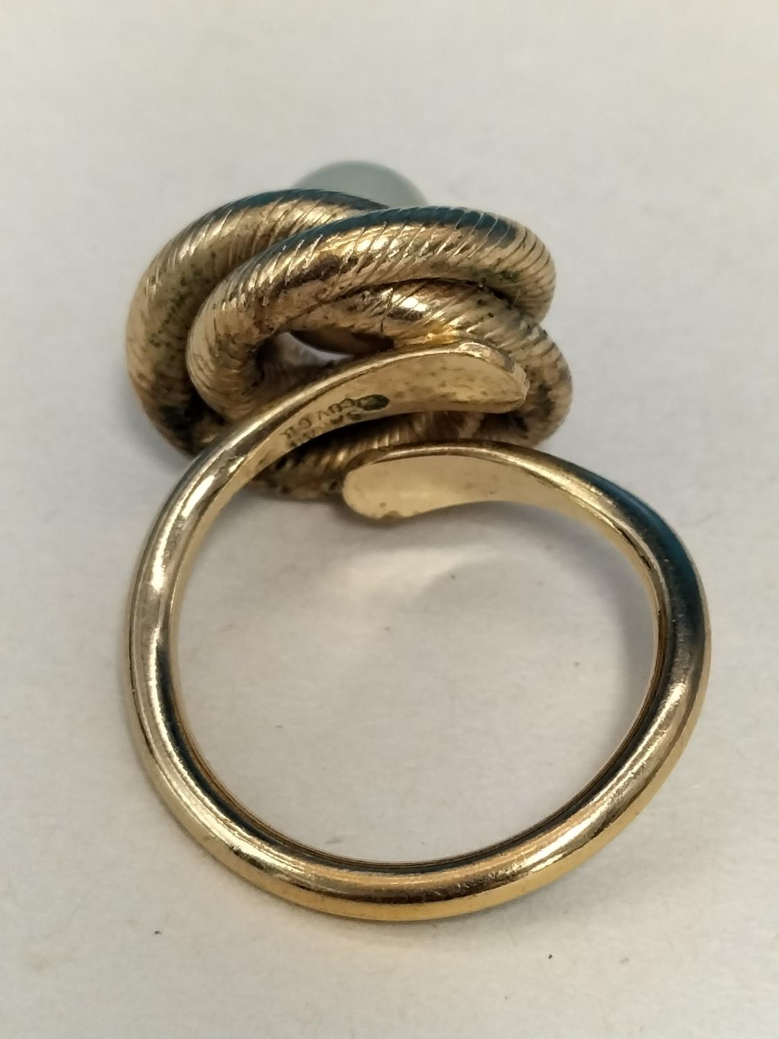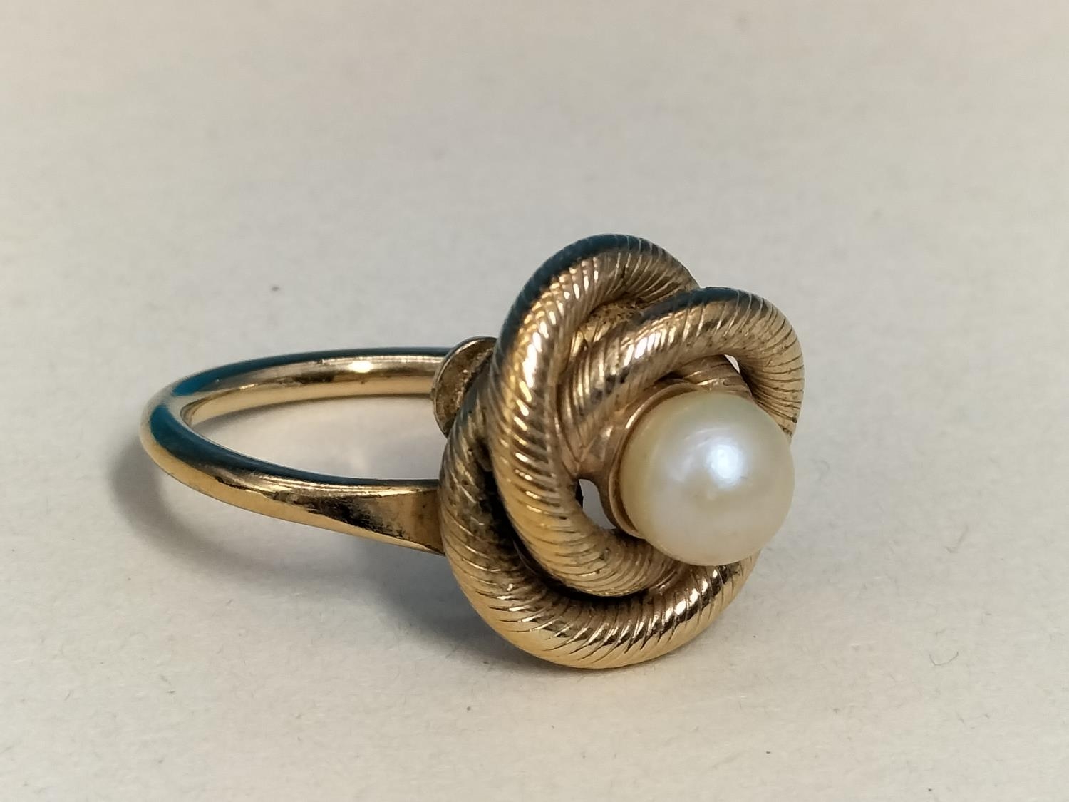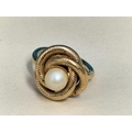 Vintage 70's Sarah Coventry Gold Tone and Pearl Love Knot Ring. Size N.