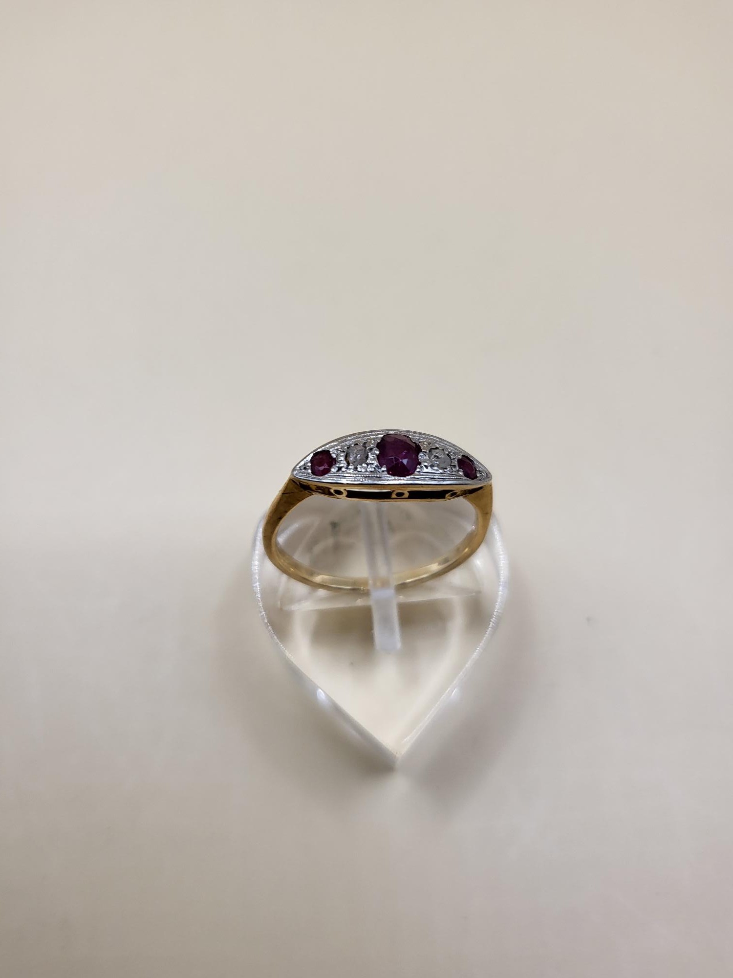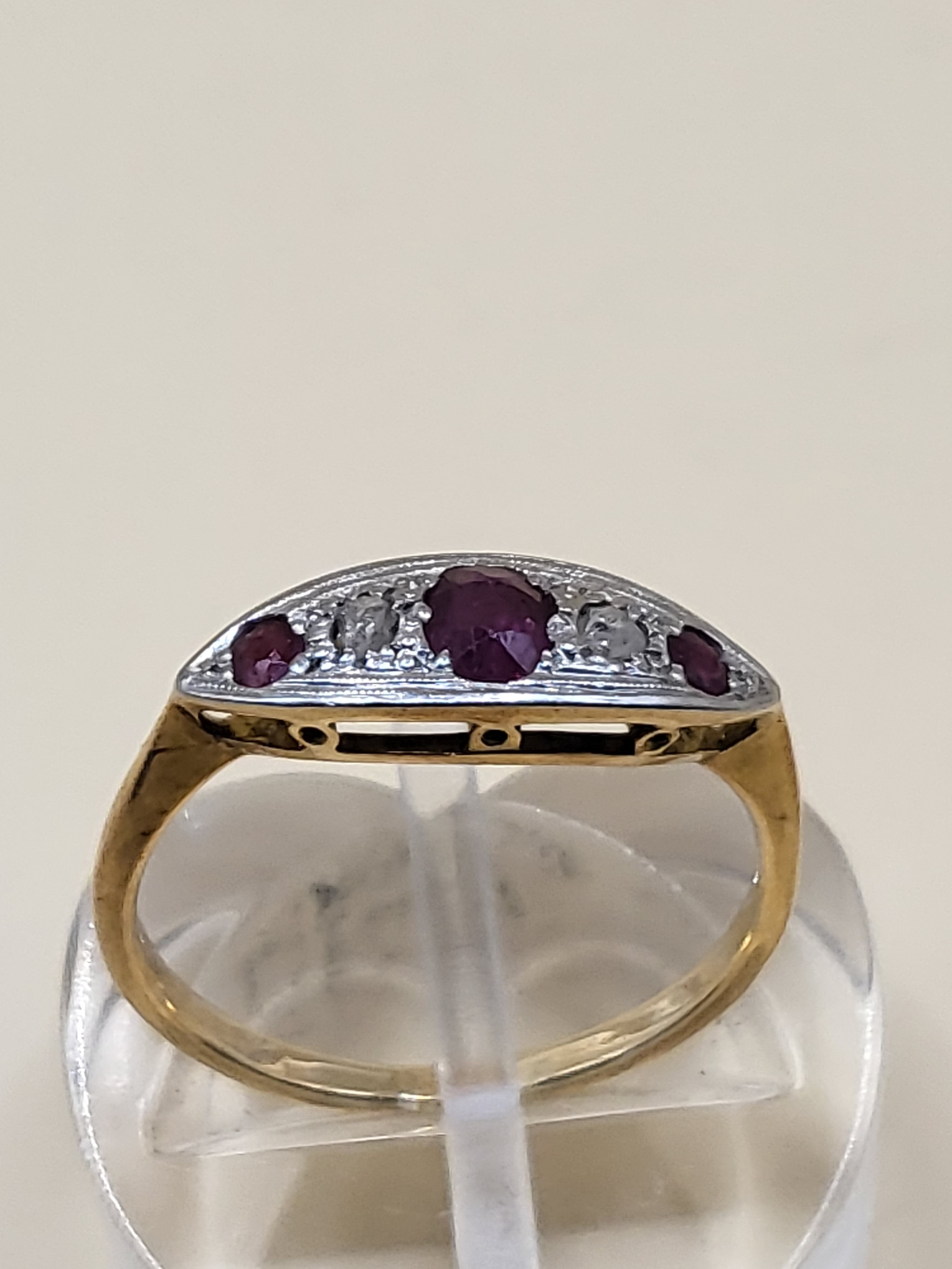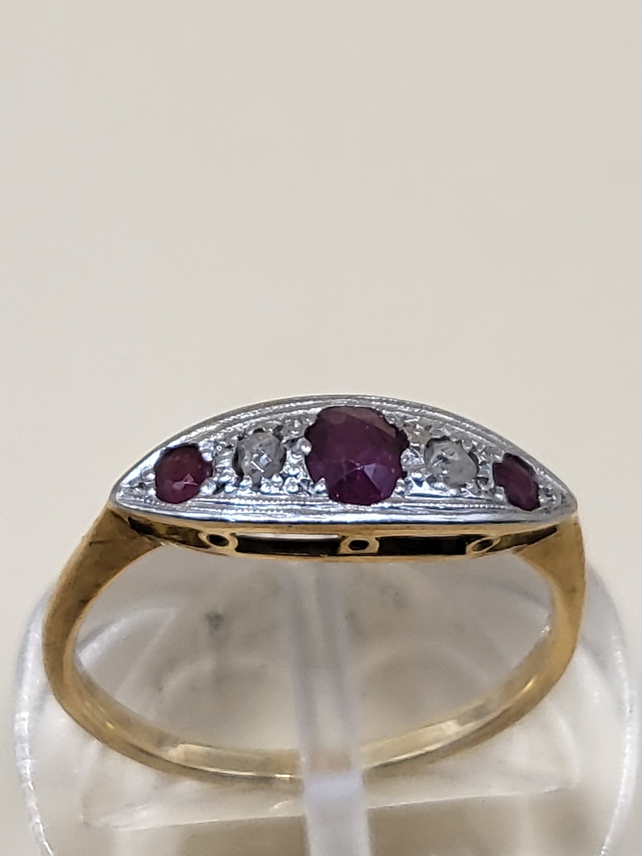 Unhallmarked Ring With Mine Cut Diamonds & Rubies Weighs 1.7g