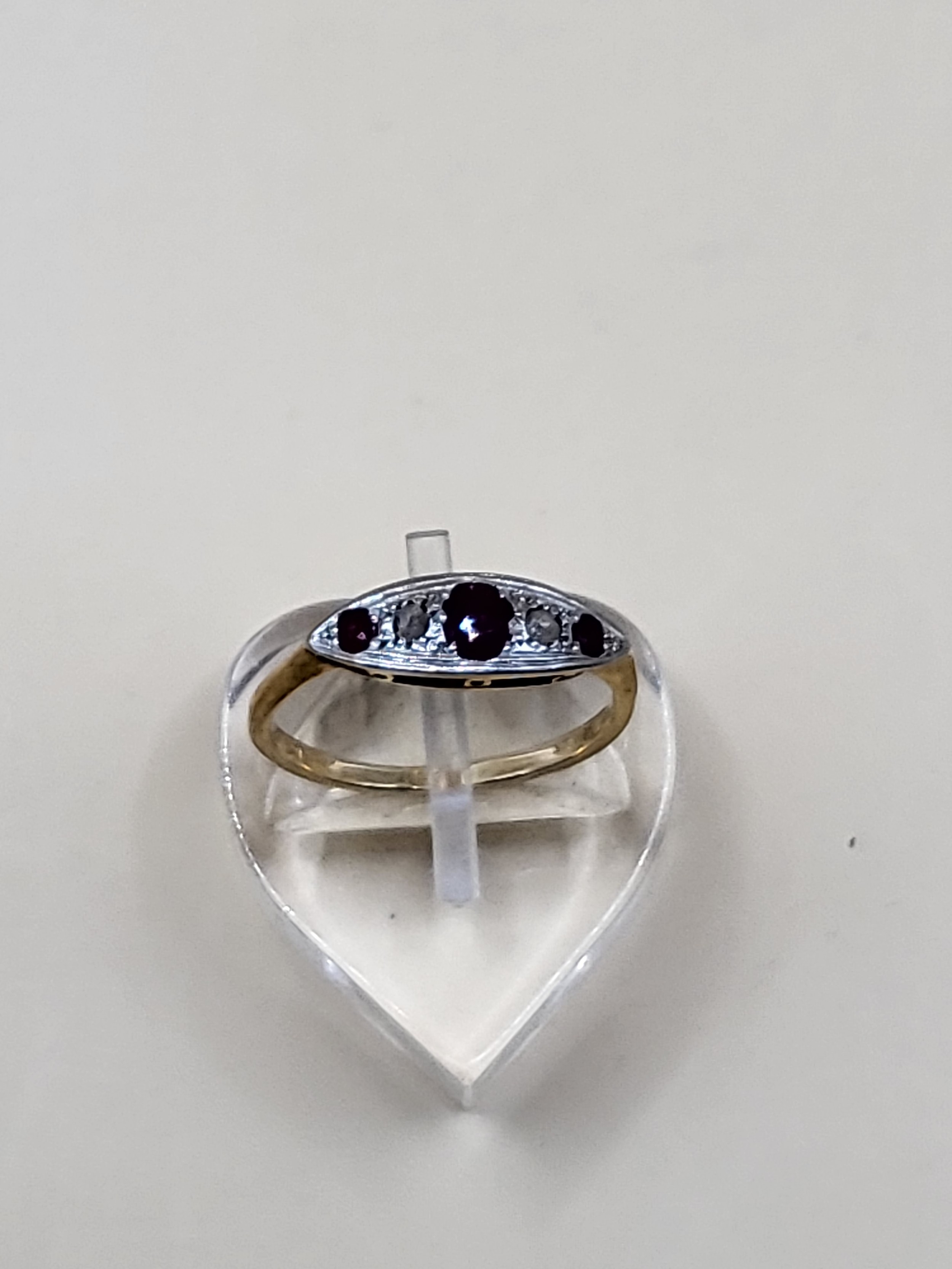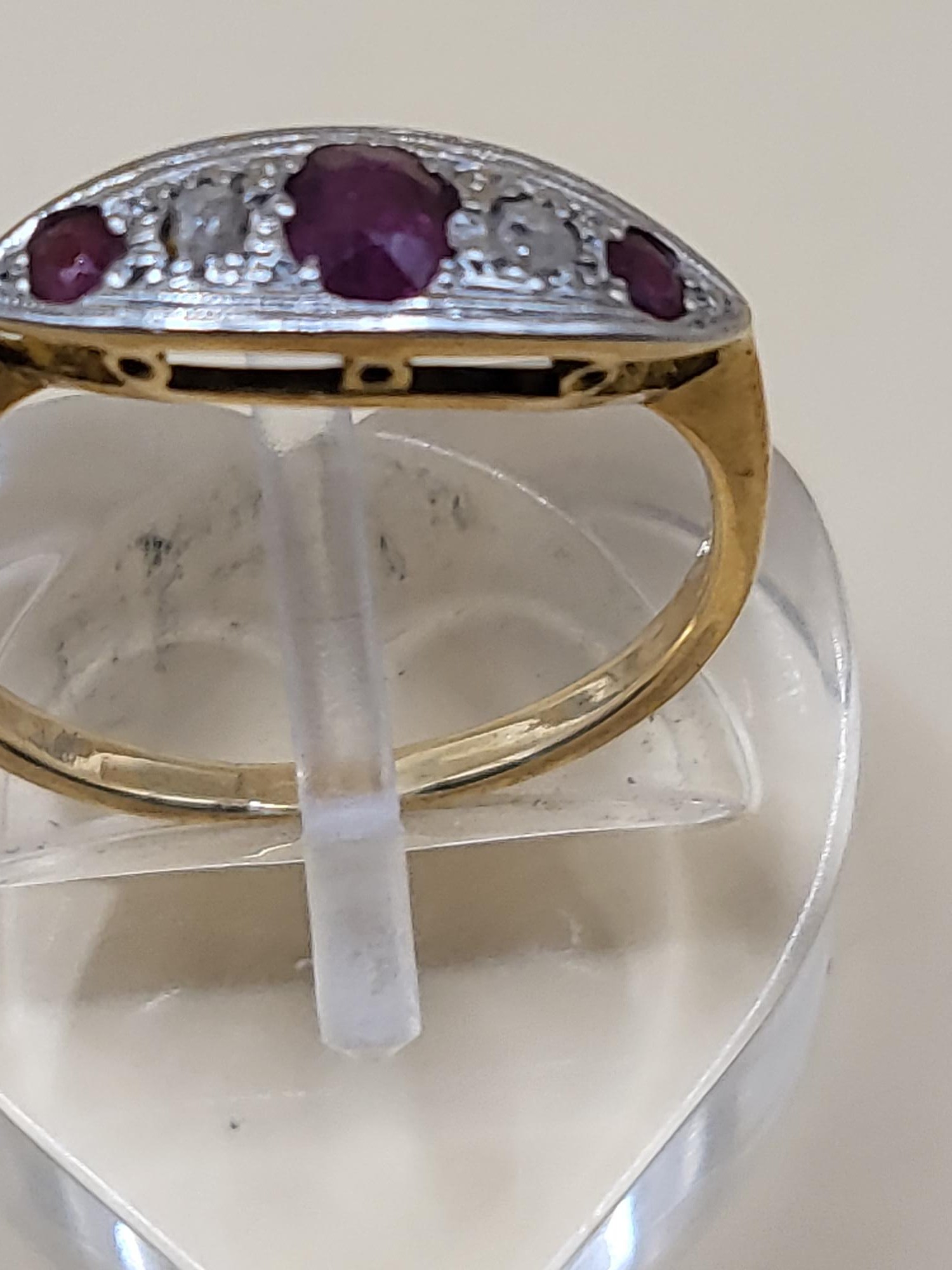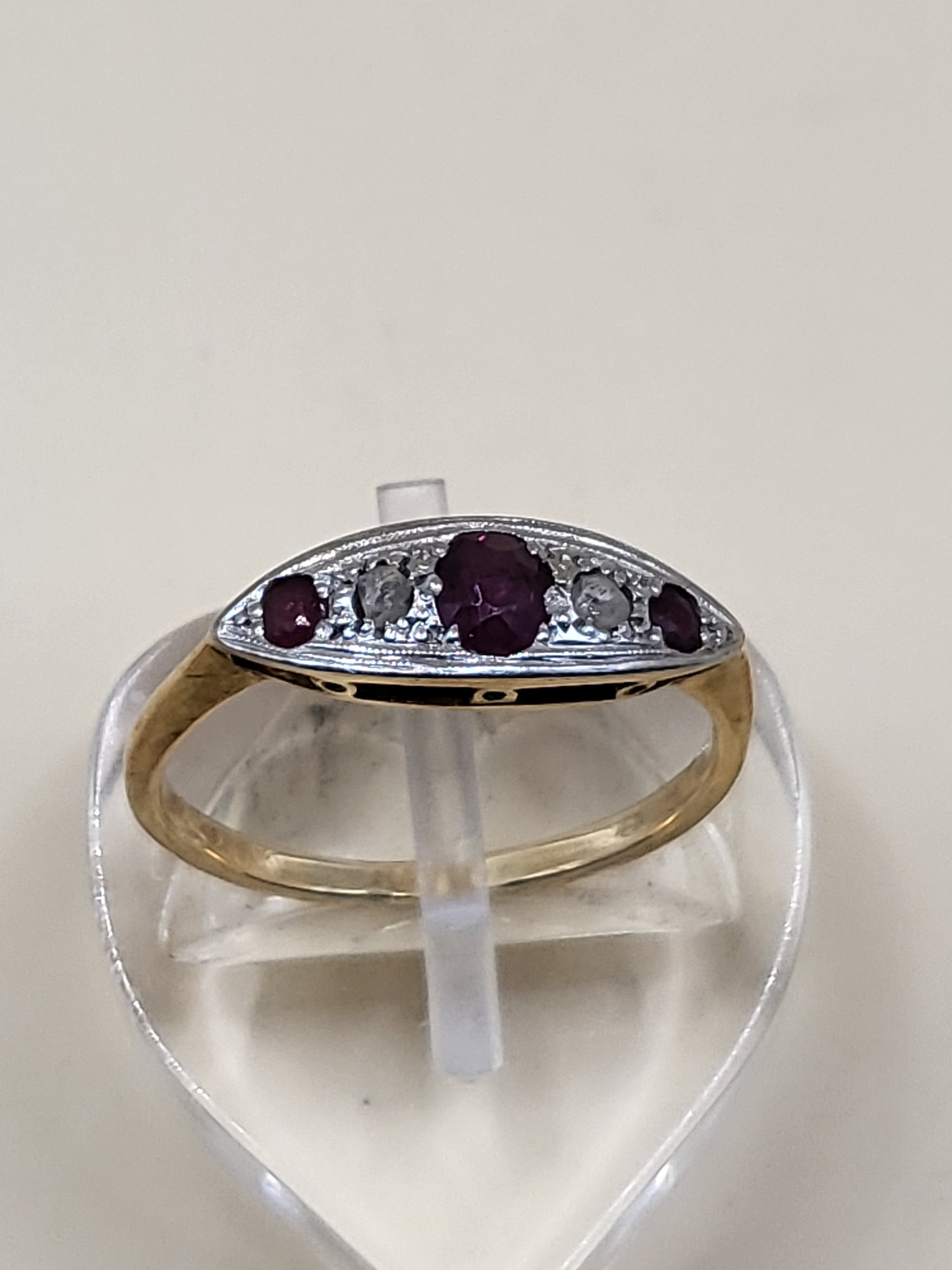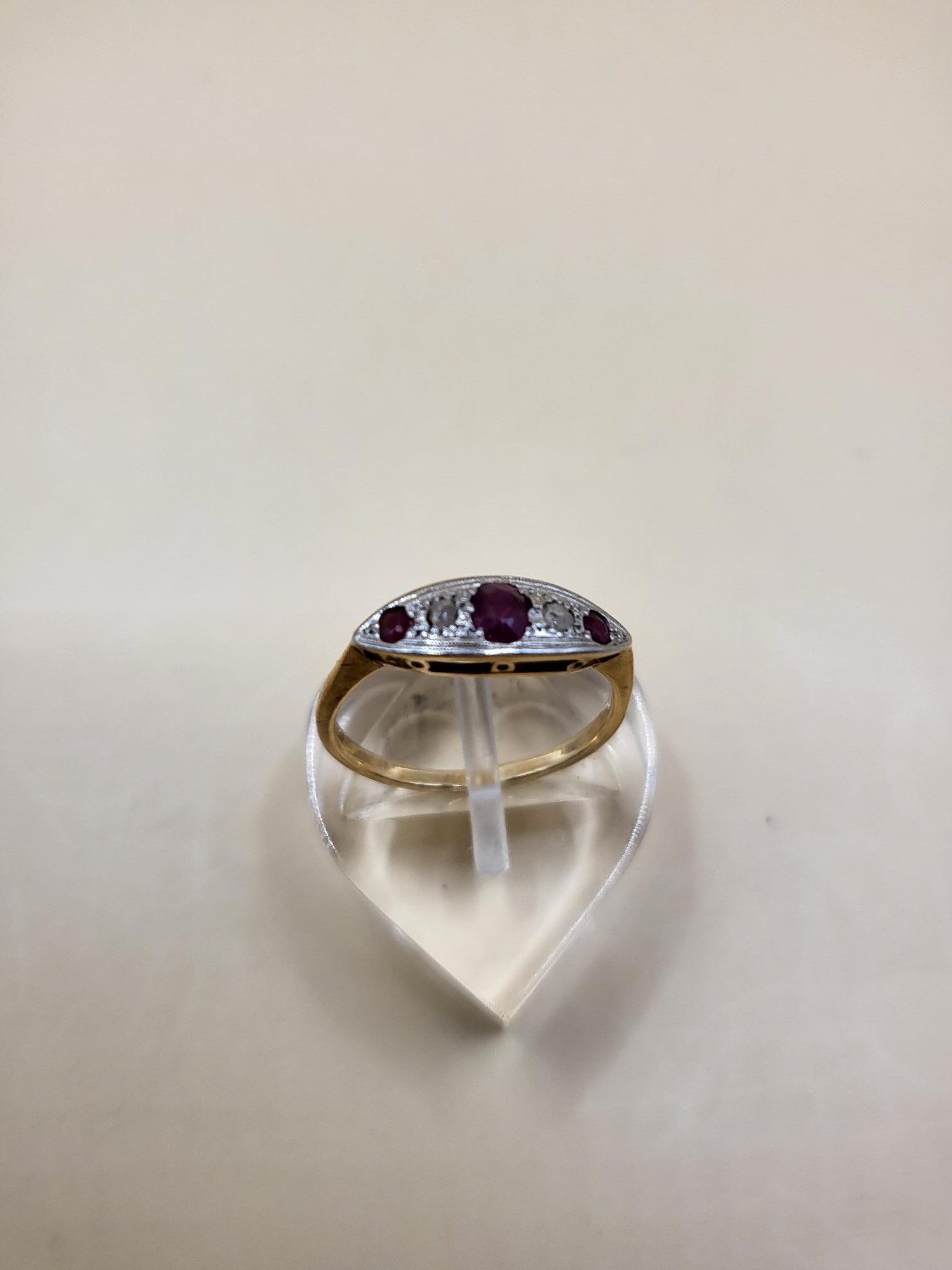 Unhallmarked Ring With Mine Cut Diamonds & Rubies Weighs 1.7g