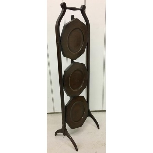 Three-tiered, mahogany folding cake stand. Height 90 cm.