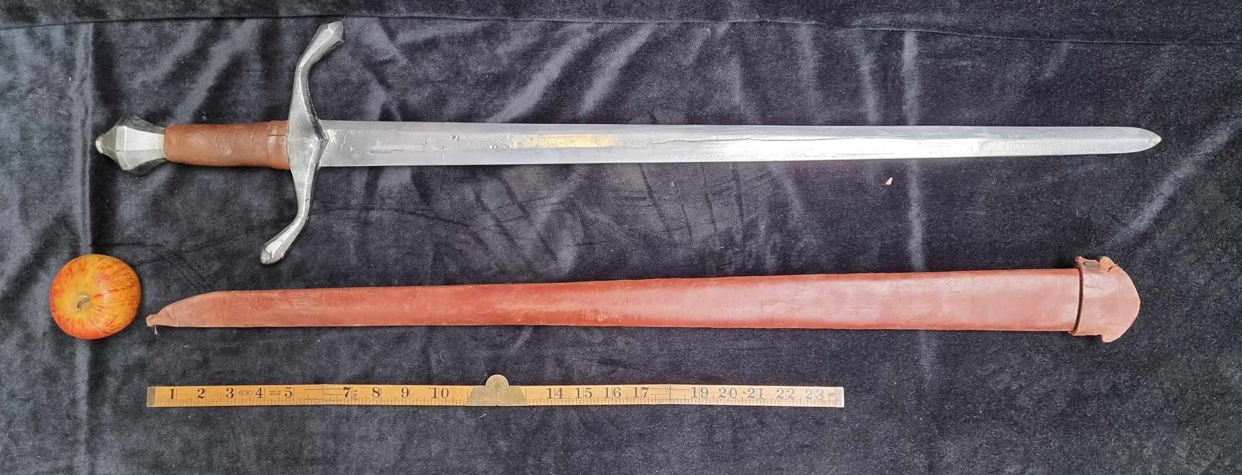 A heavy replica plastic sword from the set of the AMC tv Show the Vikings. Complete with a leather scabbard.