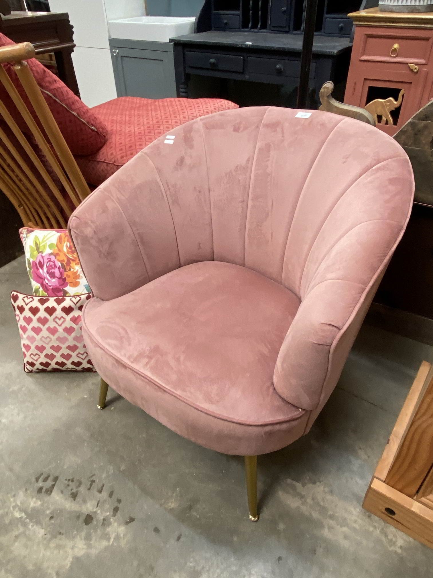 Kirkton House pink upholstered accent chair with 2 cushions 77H 74W