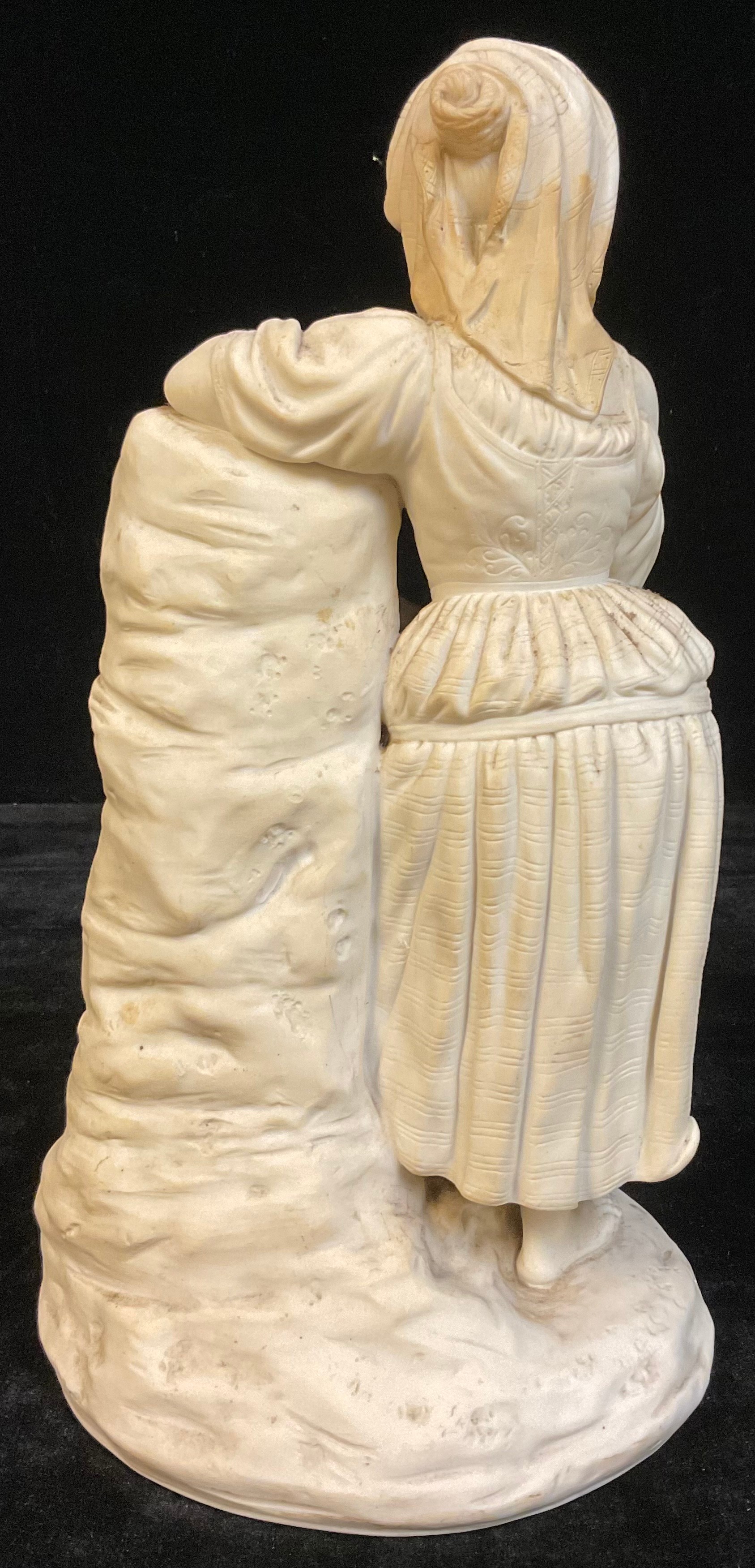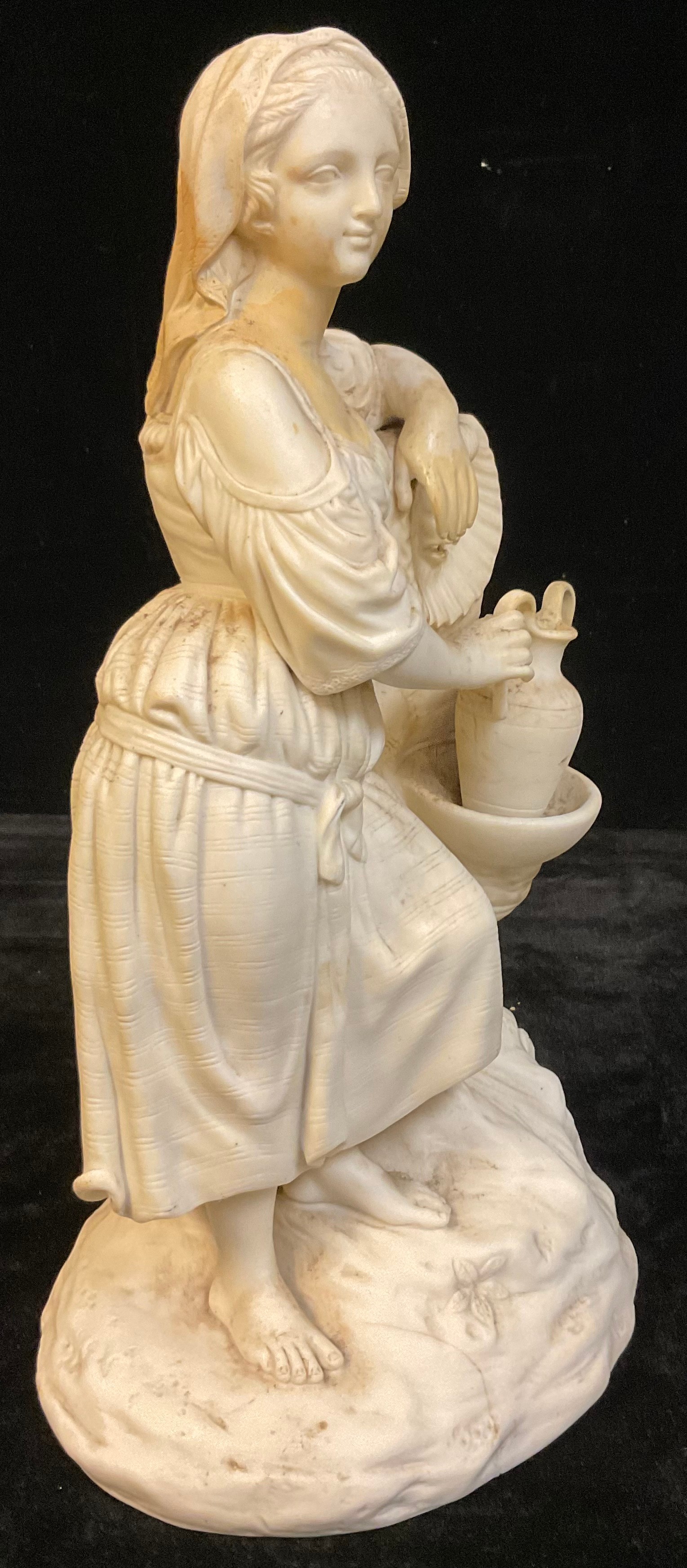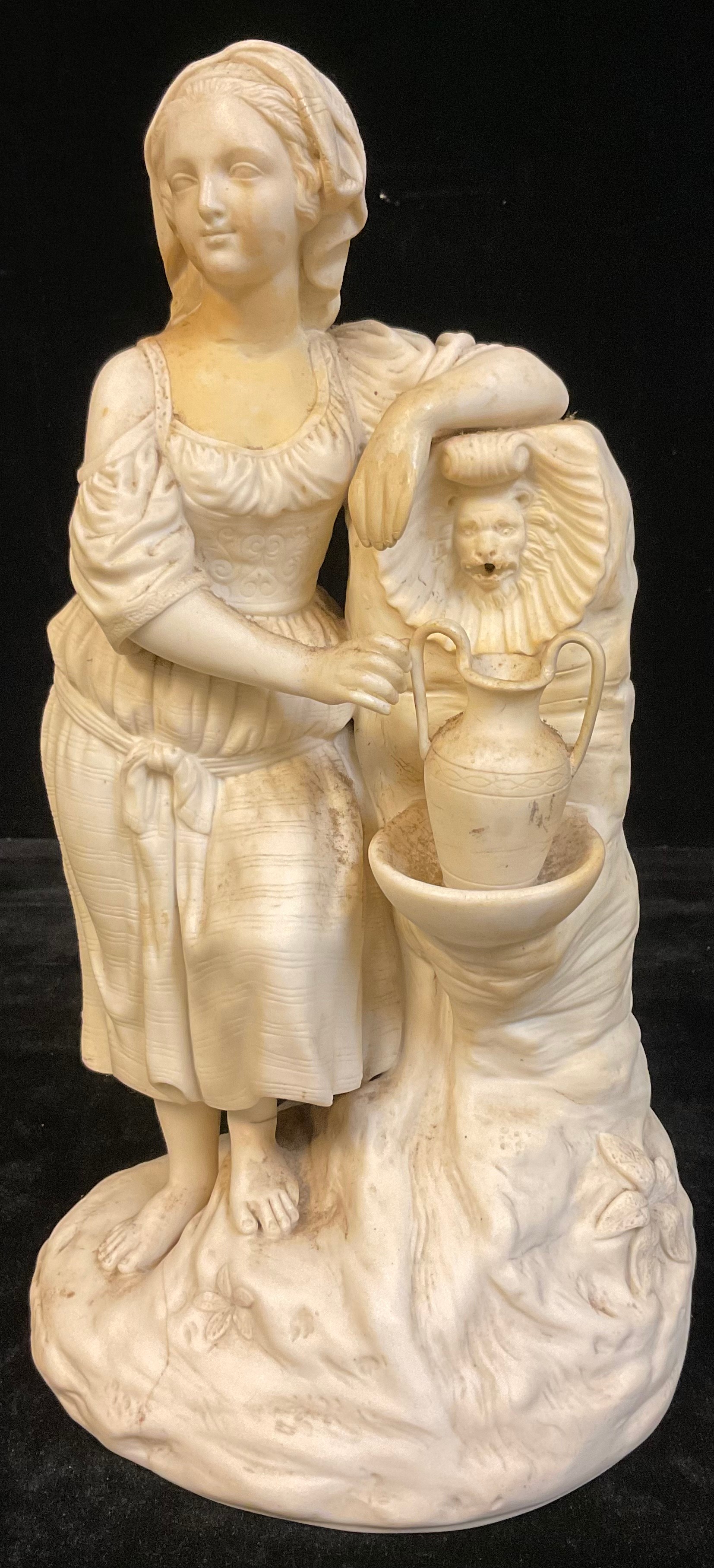 A 19th century Parian ware figure, modelled as a maiden at a fountain, 35cm high, faults