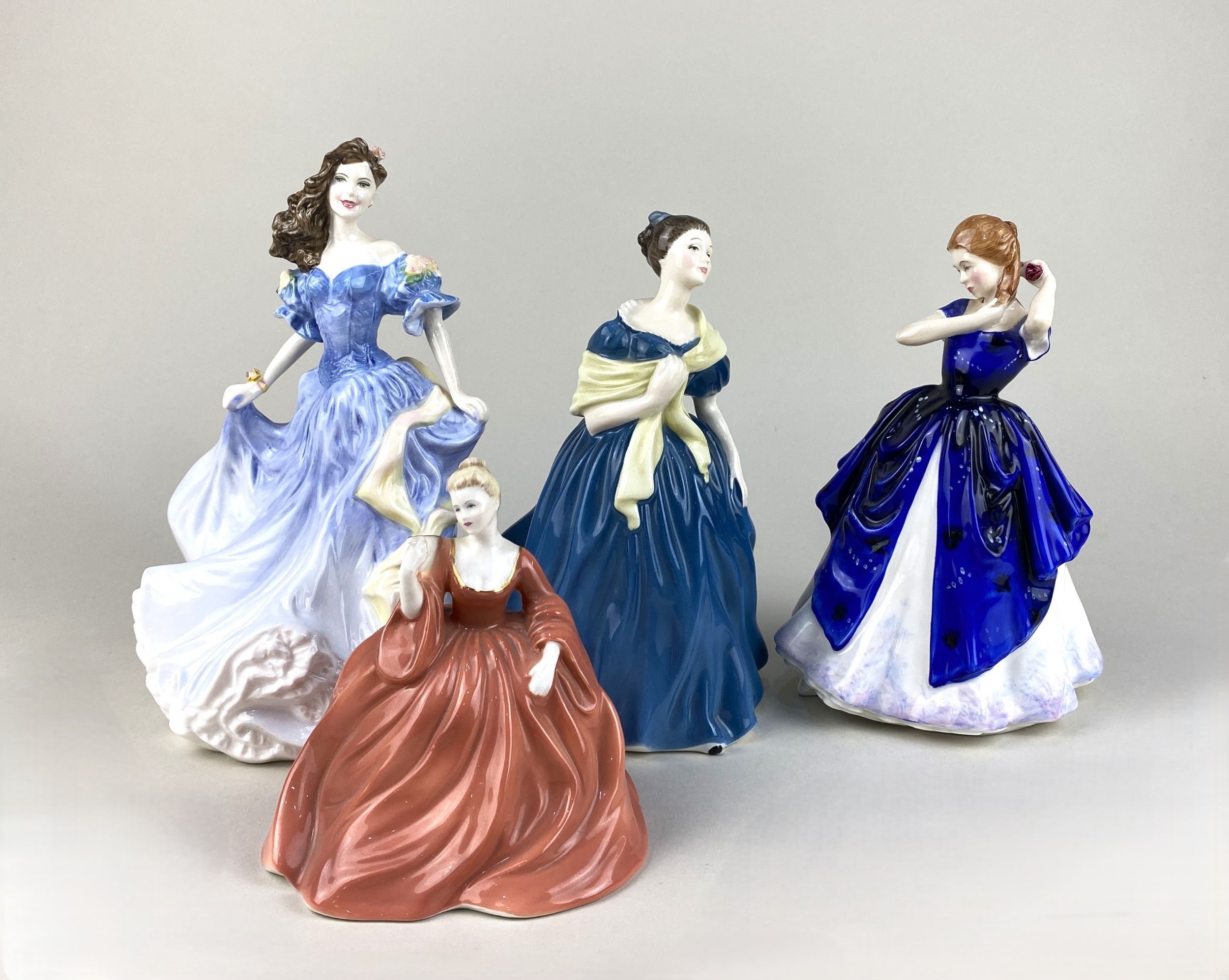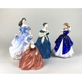 Three Royal Doulton ceramic models of ladies comprising Figure of the Year 1998 'Rebecca', 22cm high, 'Laura' and 'Adrienne', together with a Coalport model 'Natalie' (4)