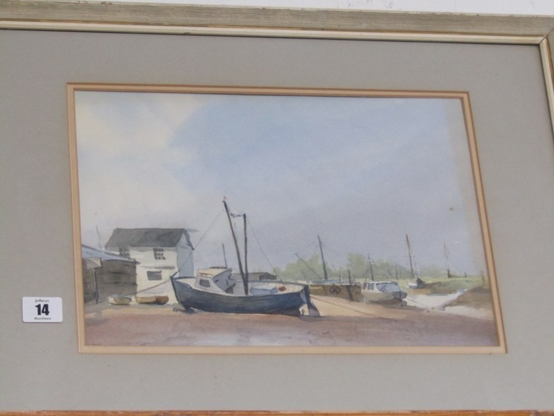 WATERCOLOURS, "Fishing boats at low tide"