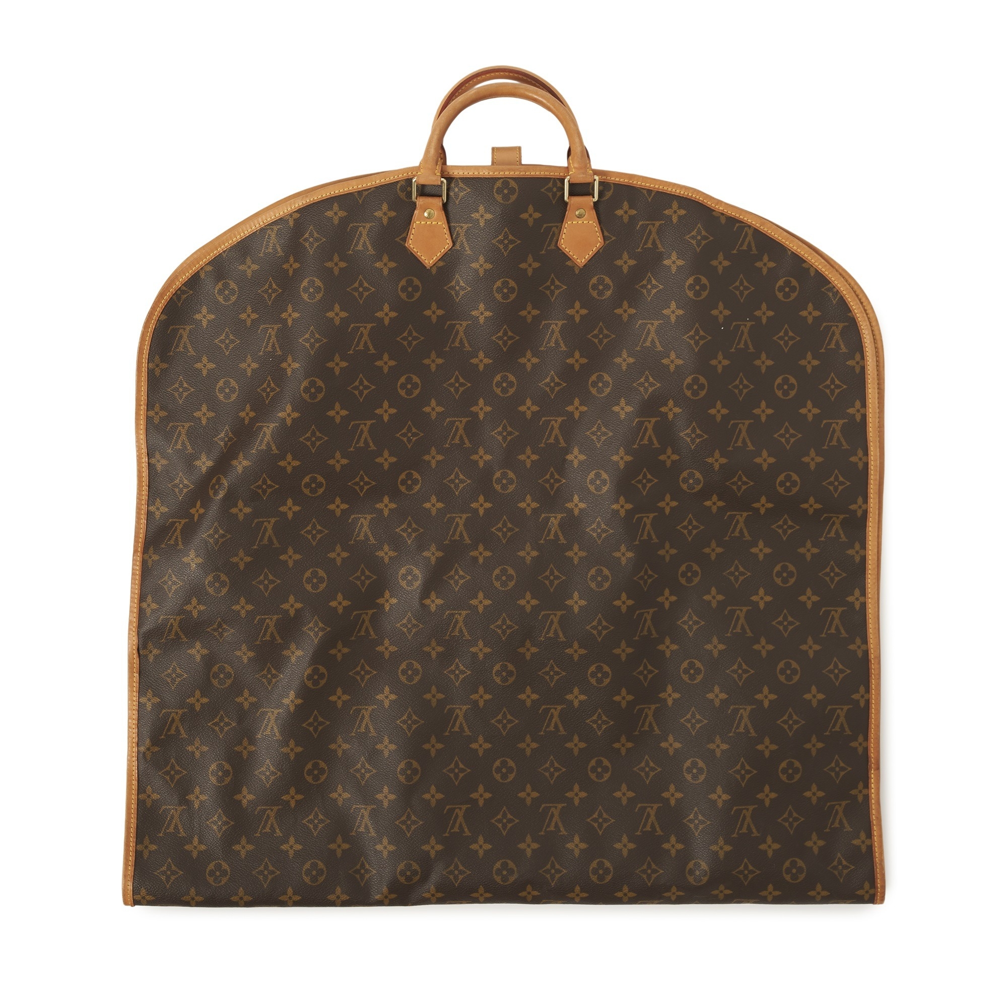 Louis Vuitton a monogram garment bag, with dual rolled leather handles, snap button fastening, and a full-length zip on the protective nylon interior cover, measuring 58 by 62cm