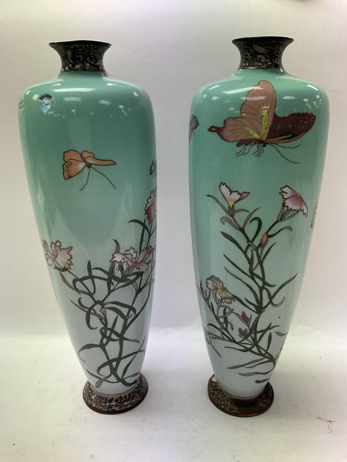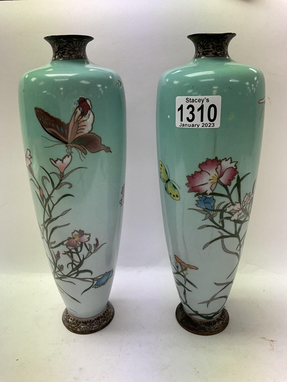 A pair of Japanese cloisonné Vases with floral design ( some damage). 31cm.