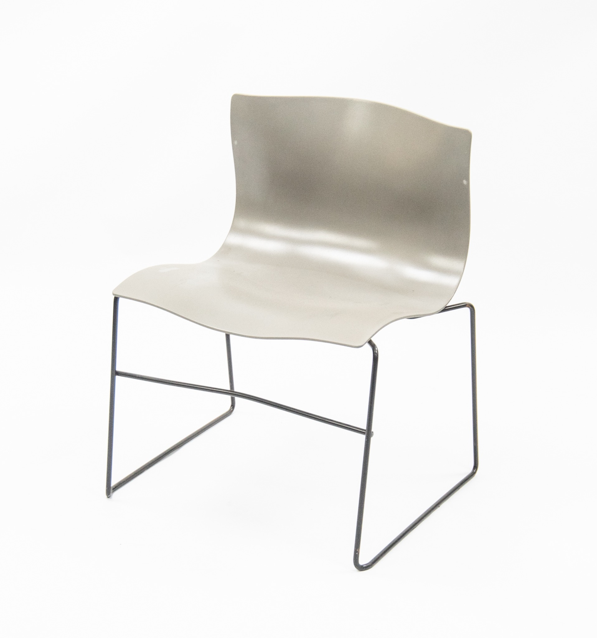 MASSIMO VIGNELLI DESIGNS FOR KNOLL STUDIO 1985, SET OF SIX GREY ‘HANDKERCHIEF’ STACKING CHAIRS, each bearing white metal label to the underside, (6)