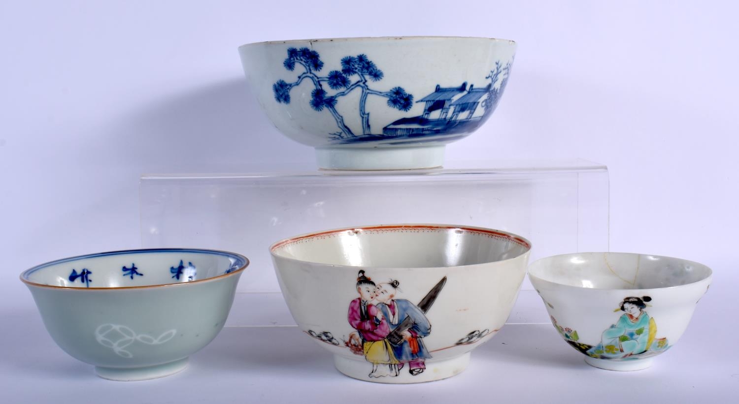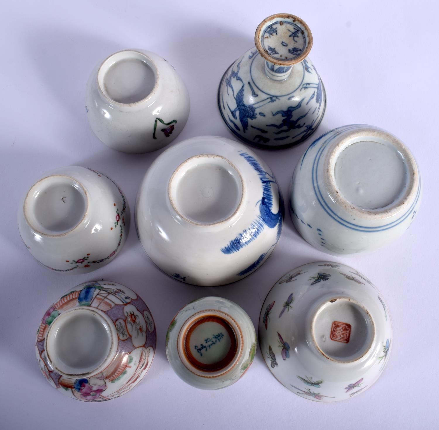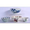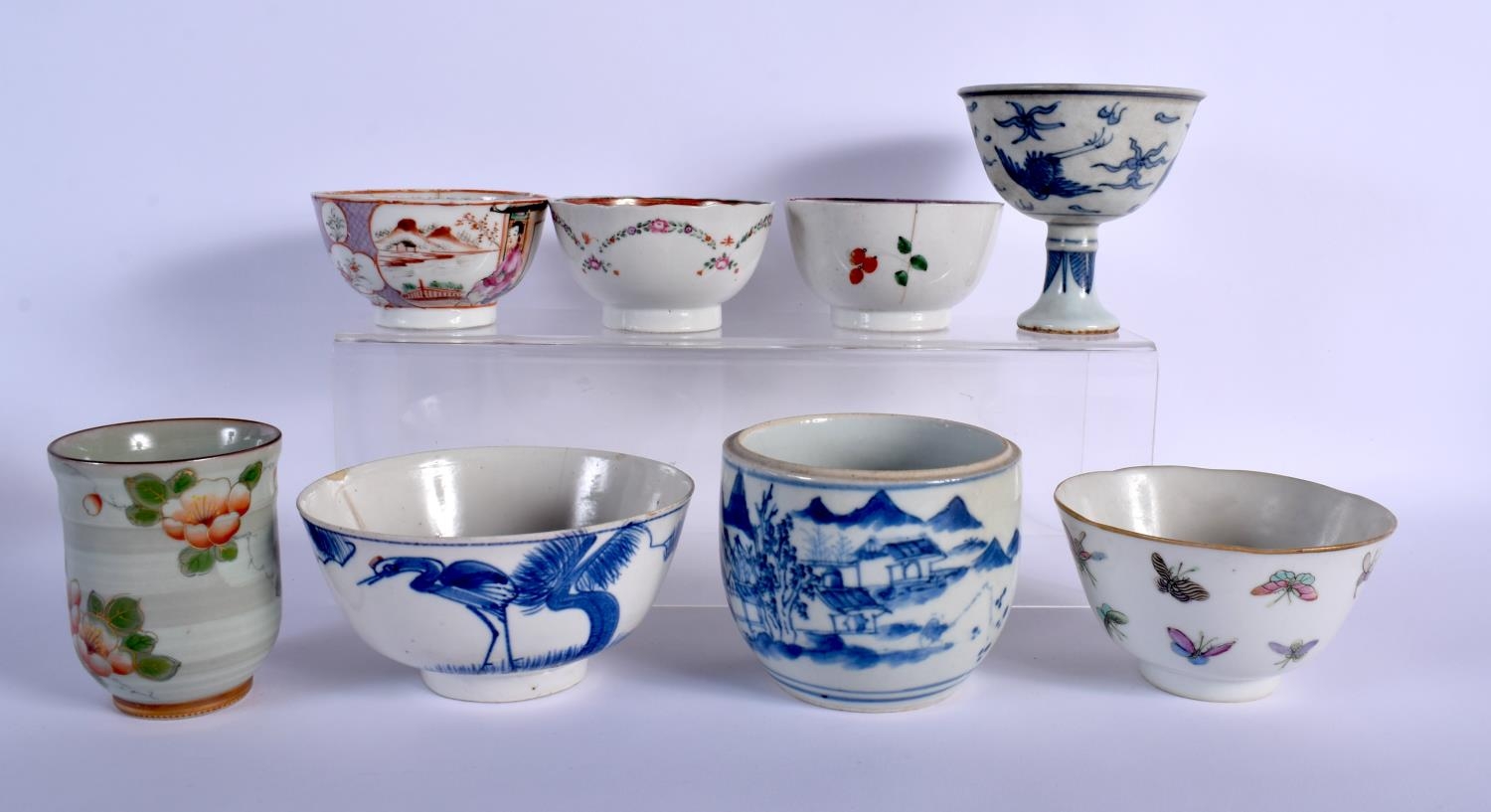 COLLECTION OF CHINESE: A STEM CUP, 6 BOWLS, 3 SAUCERS, 8 TEABOWLS, A BEAKER, A JAR BASE AND A SMALL MOULDED GREEN BASIN, TOGETHER WITH A PAIR OF SATSUMA STYLE VASES. Stem Cup 9cm high, Beaker 8cm high (23)