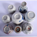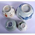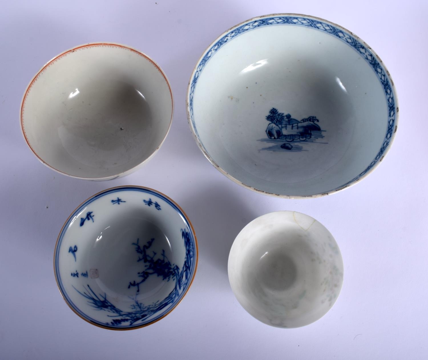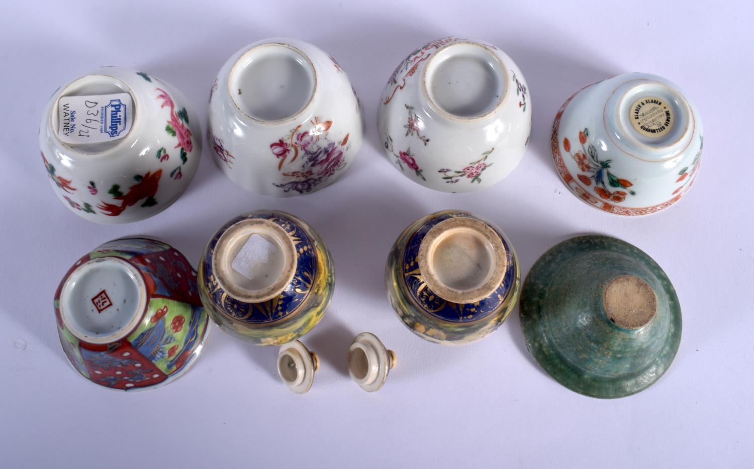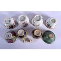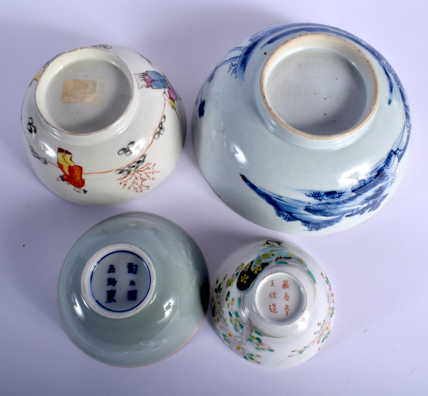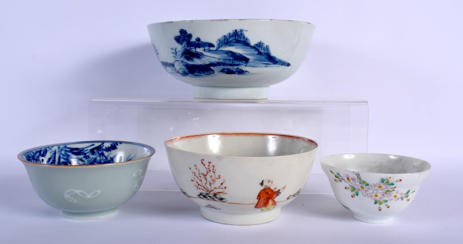 COLLECTION OF CHINESE: A STEM CUP, 6 BOWLS, 3 SAUCERS, 8 TEABOWLS, A BEAKER, A JAR BASE AND A SMALL MOULDED GREEN BASIN, TOGETHER WITH A PAIR OF SATSUMA STYLE VASES. Stem Cup 9cm high, Beaker 8cm high (23)