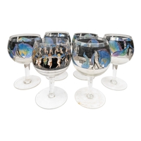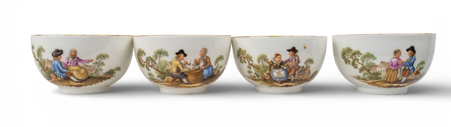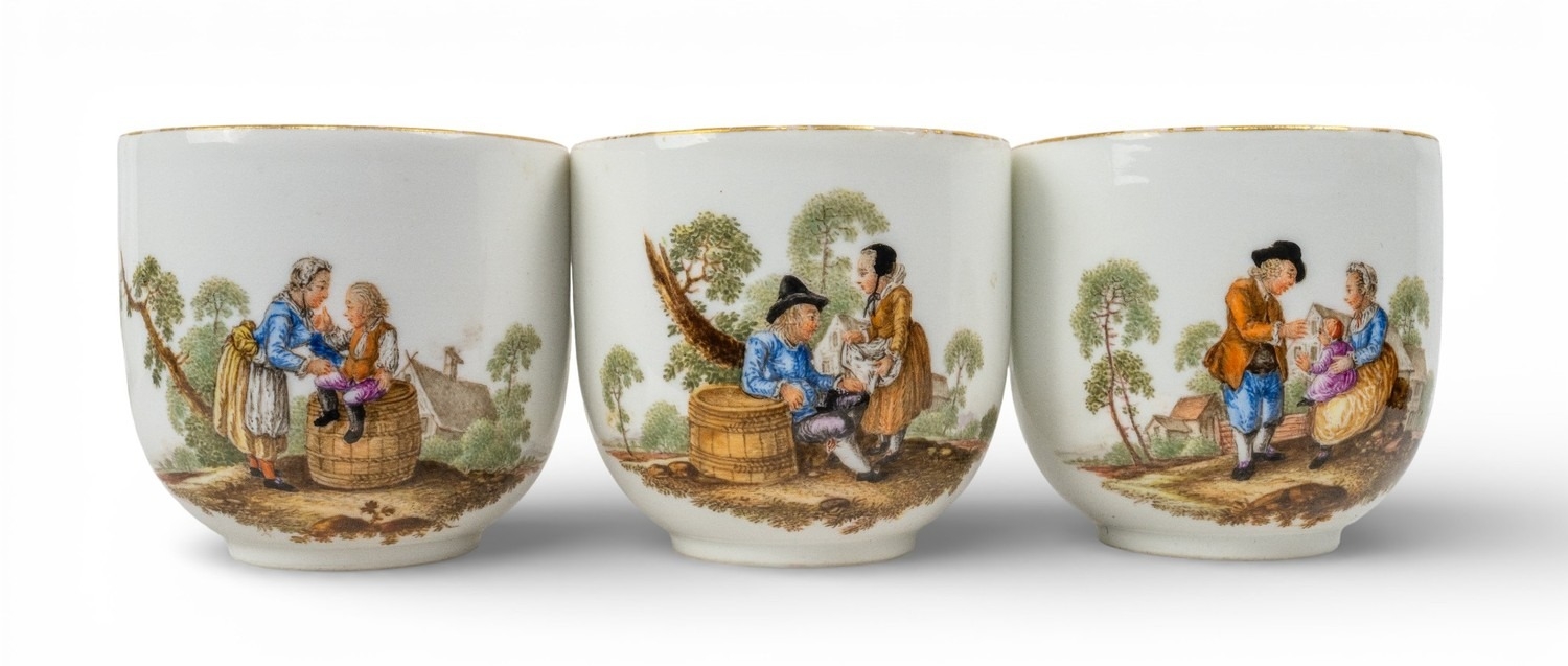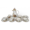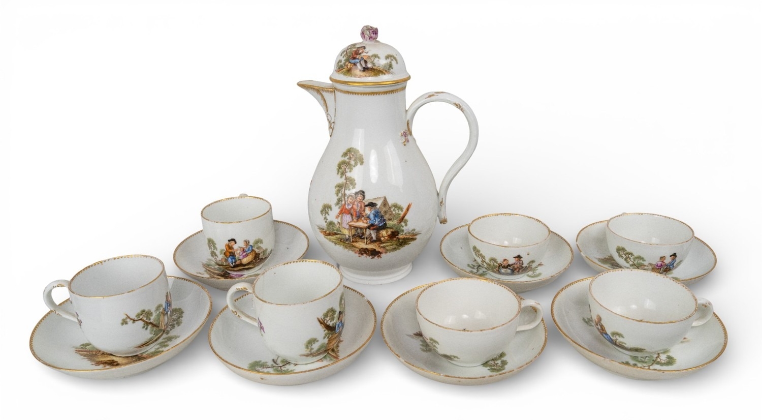 Featuring a chocolate pot, seven cups of two differing shapes and seven saucers
