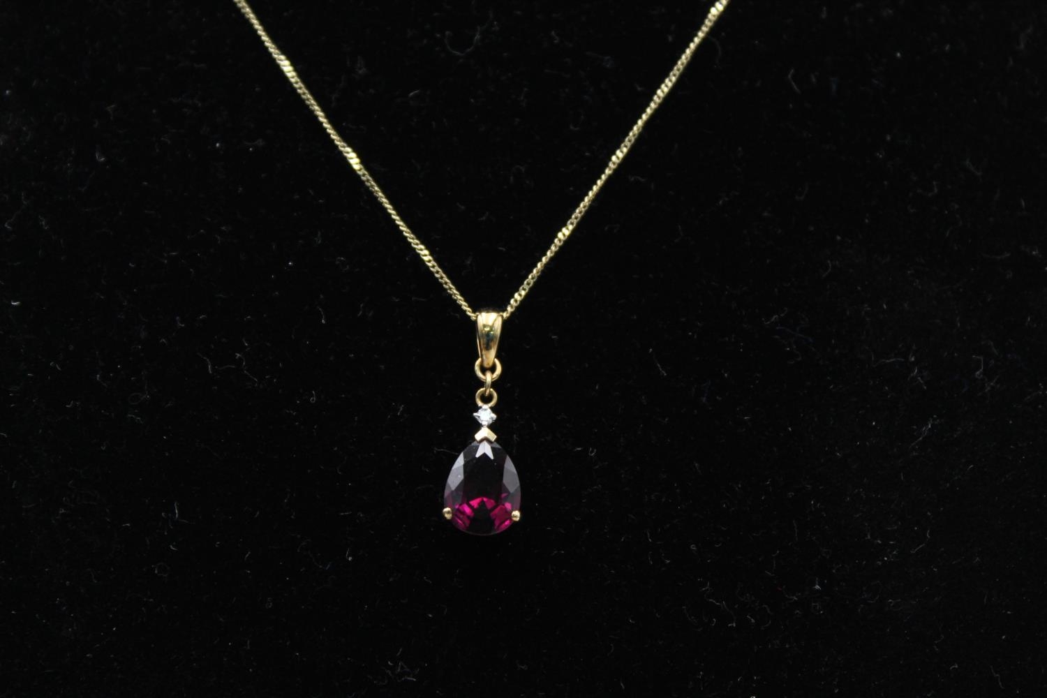 A 9ct gold diamond and gemstone pendant 45cm necklace - approx. gross weight 1.8 grams