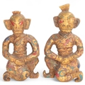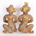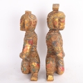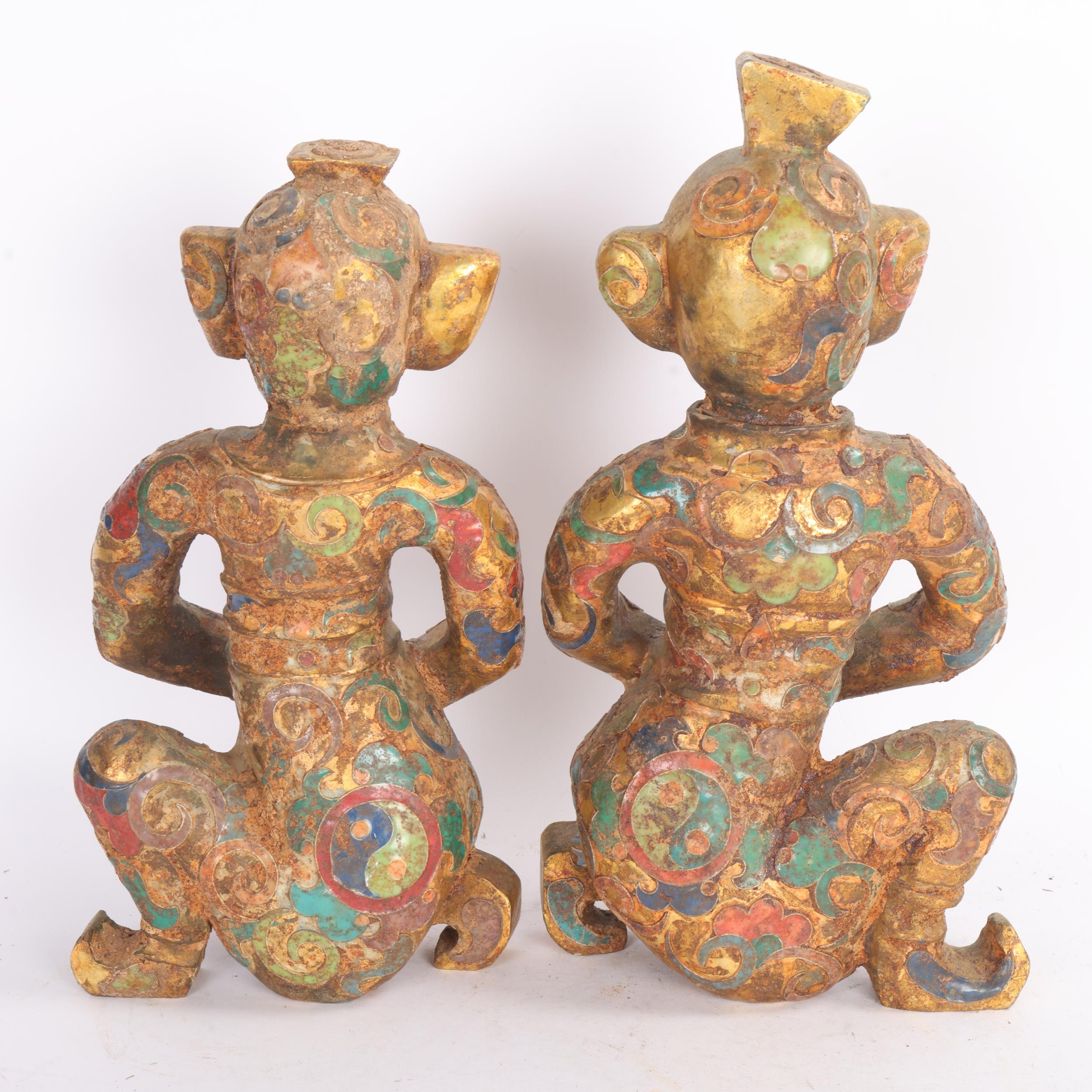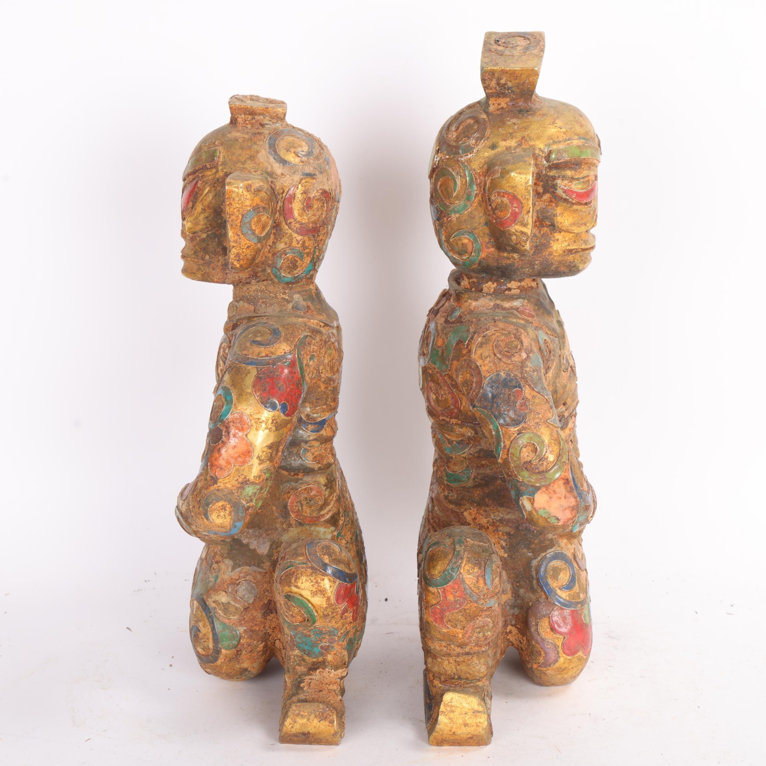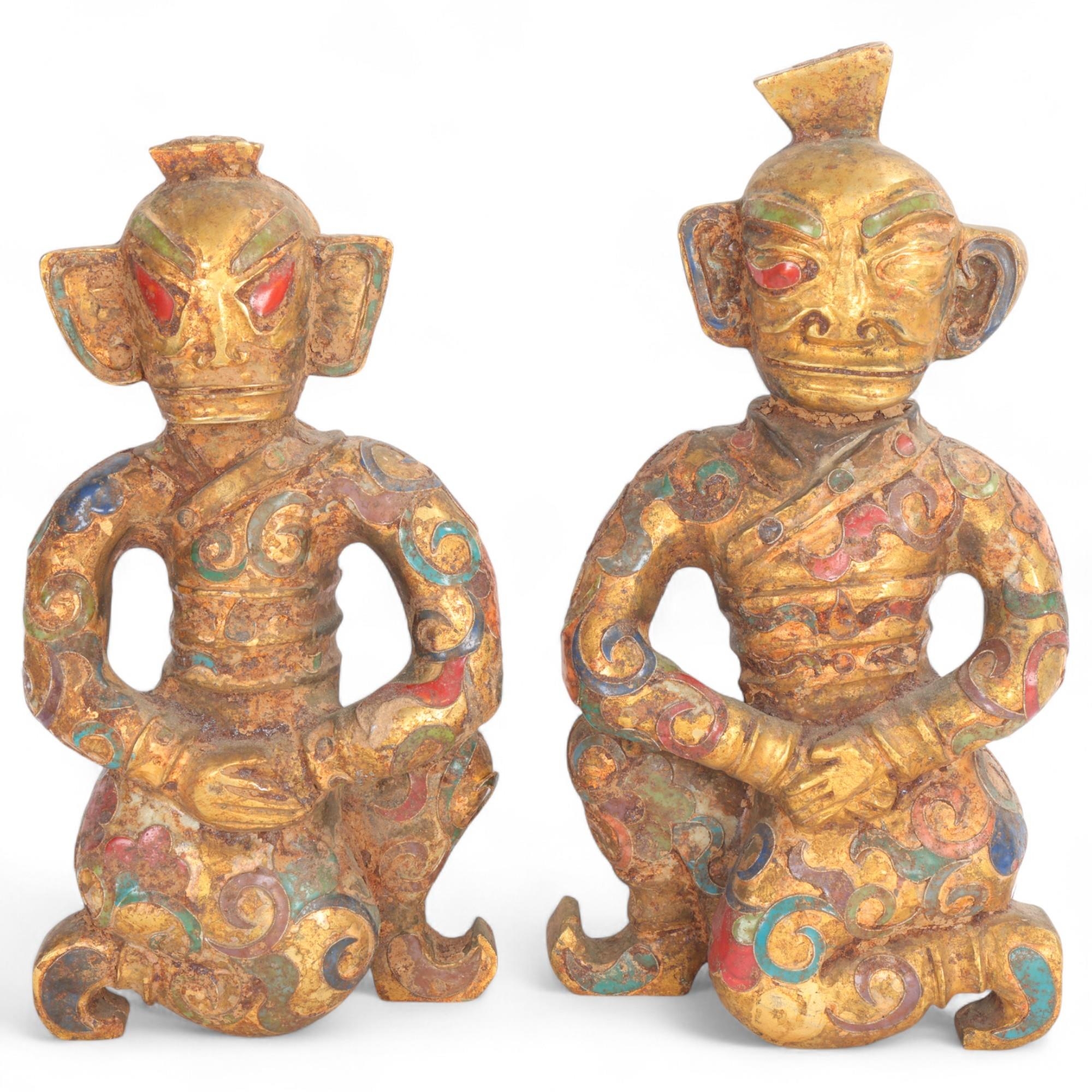 A pair of Chinese gilt-metal and champleve enamel figures, largest height 31cm
