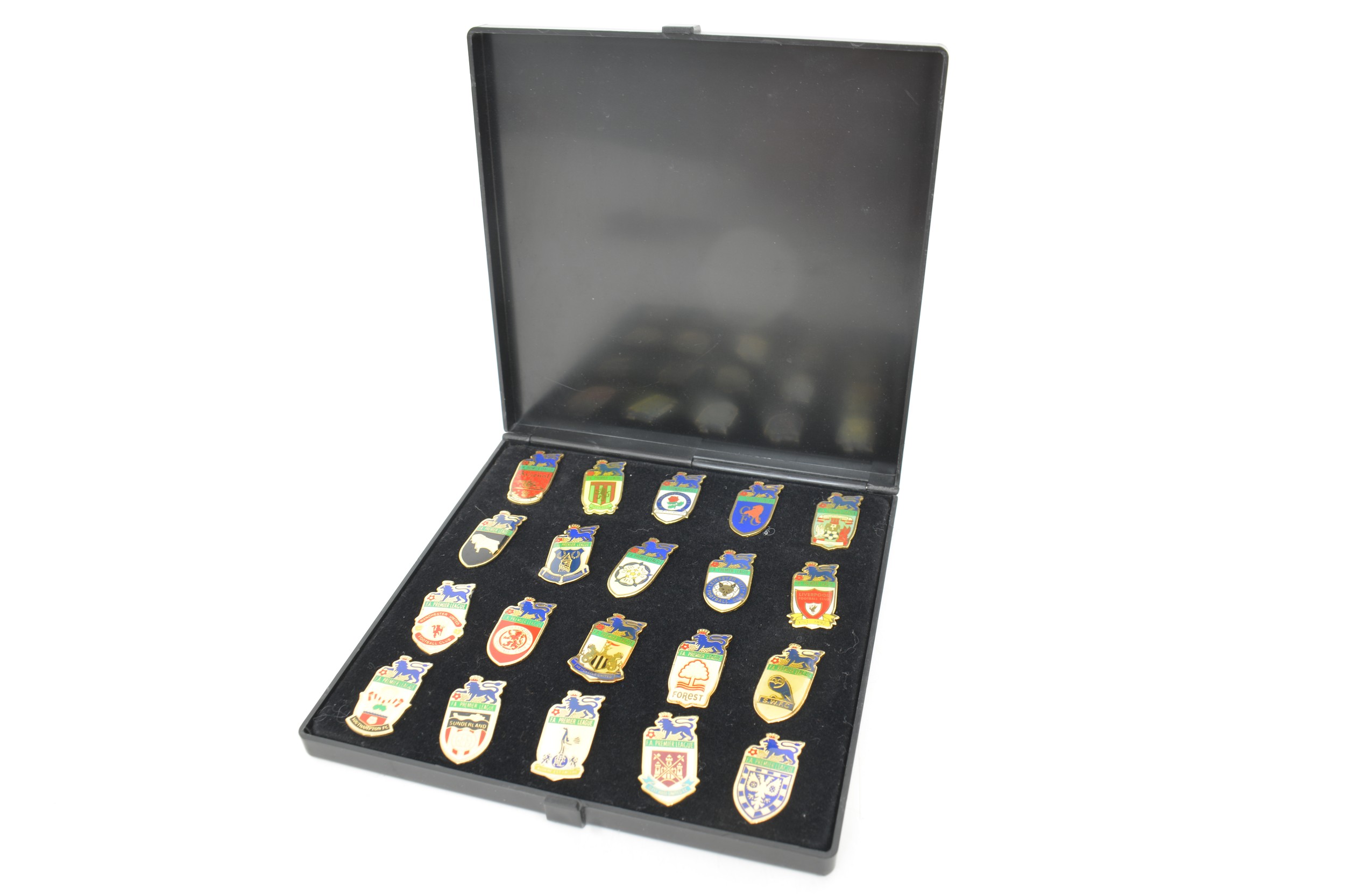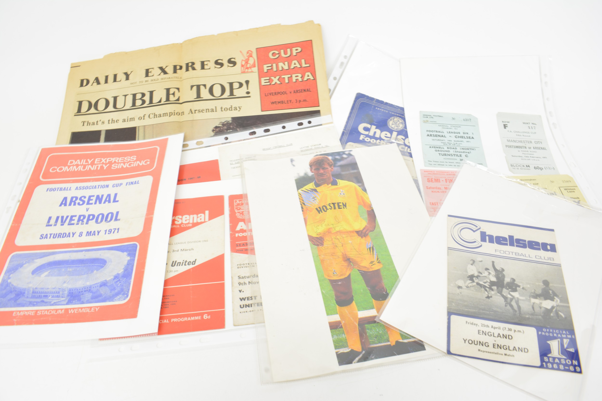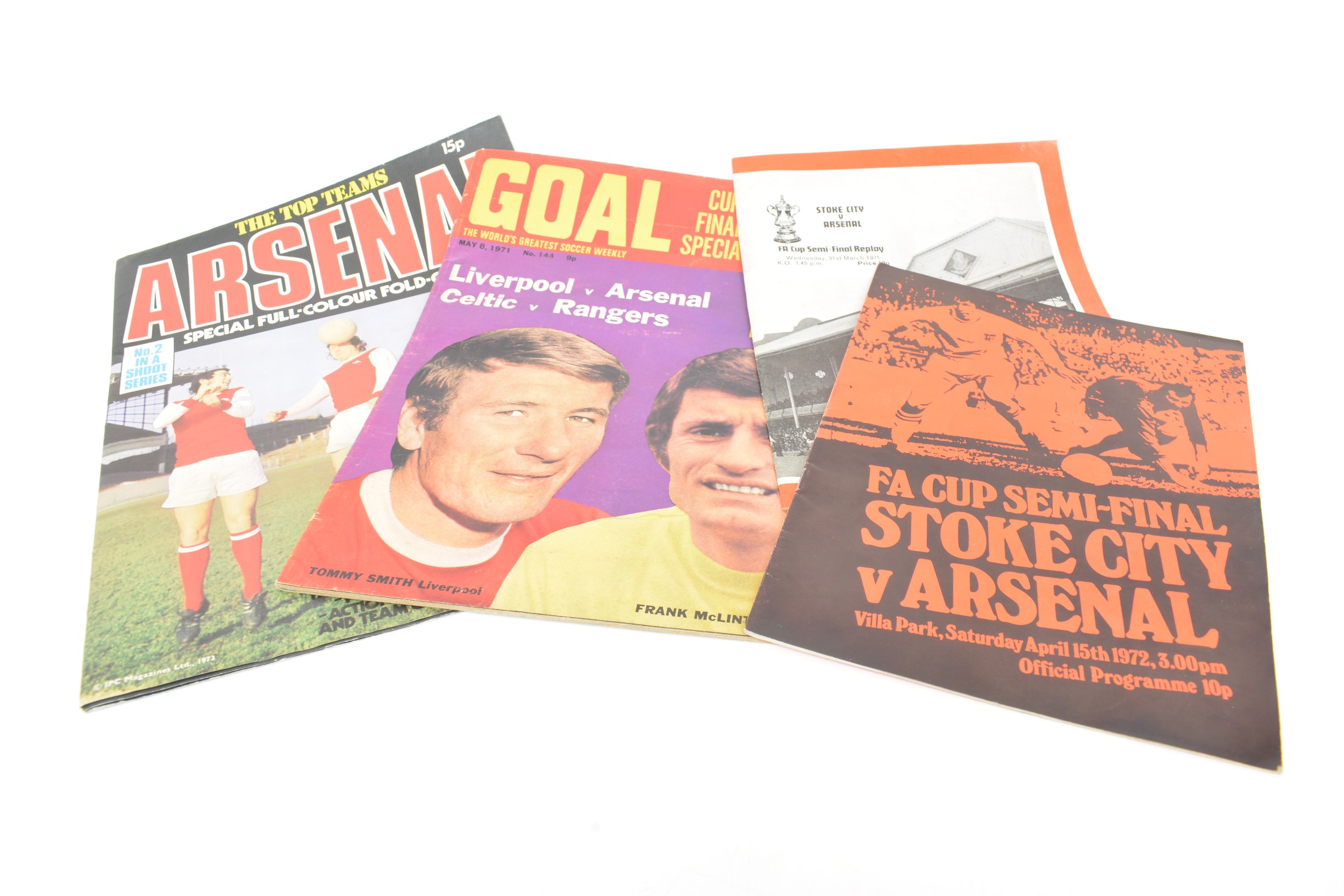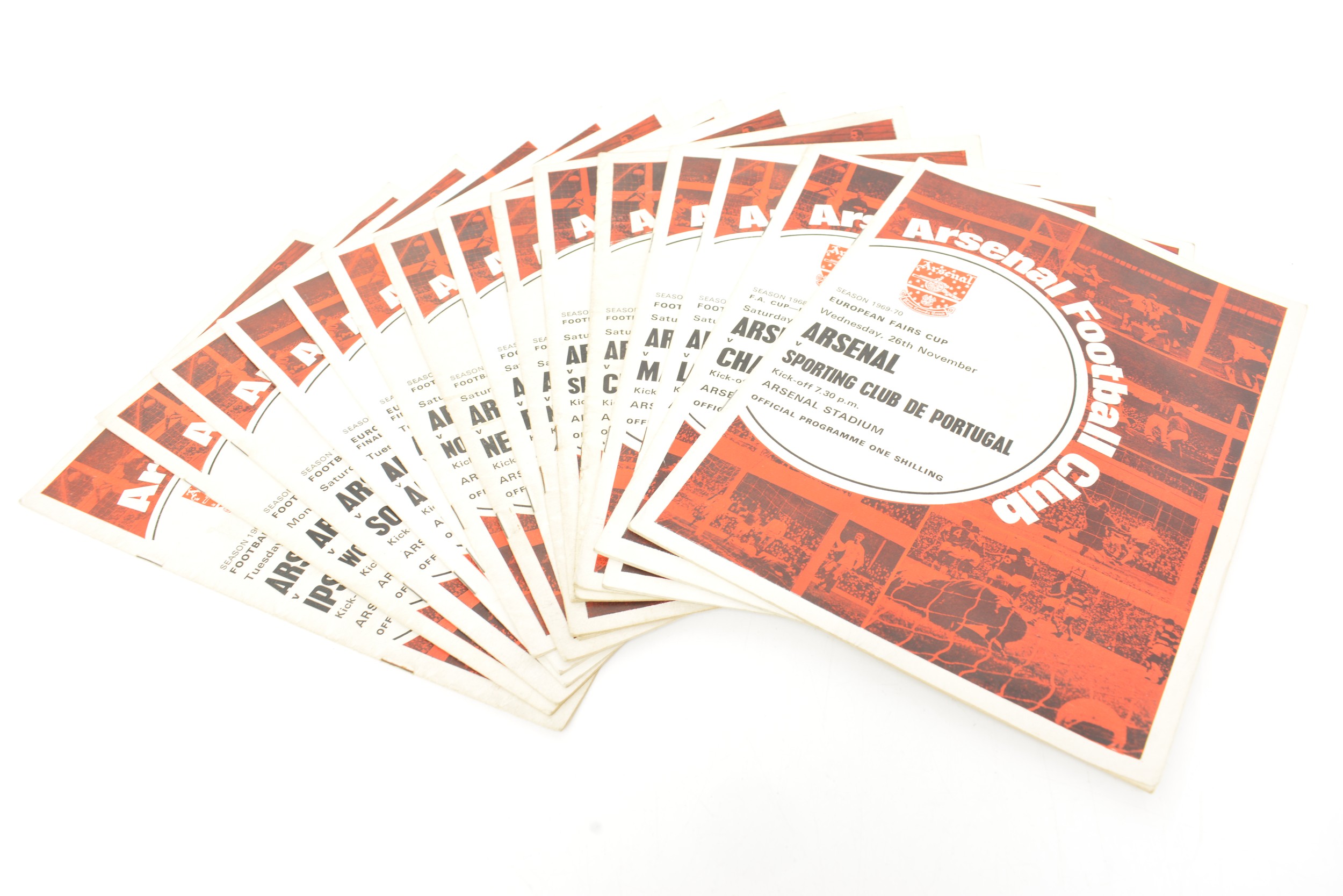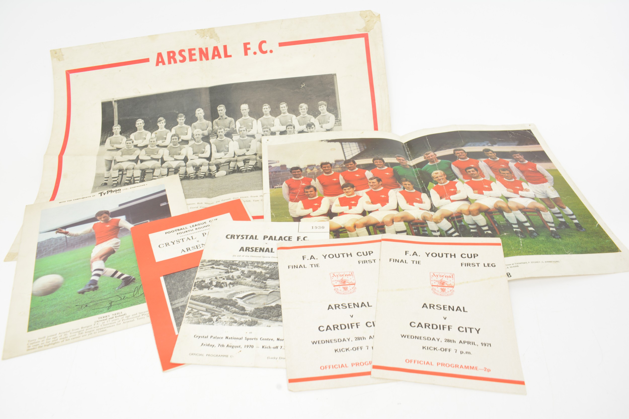 Arsenal Football memorabilia items, including pin badges, programs, handbooks some of which are signed, plus other programs.