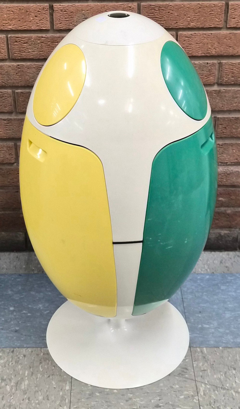 An Italian Soldidesign Ovetto recycling bin, designed by Gianluca Soldi