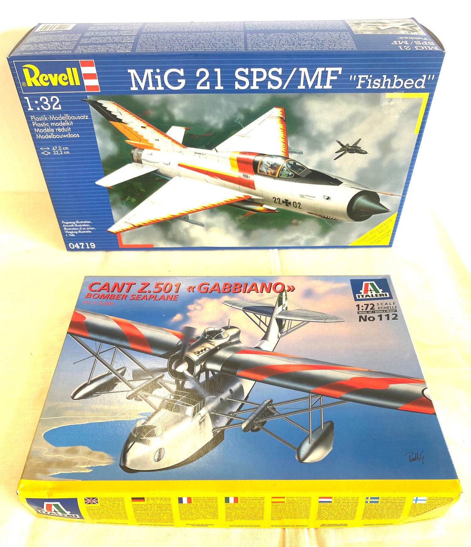 2 boxed craft models, Revell Mig 21 SPS/MF Fishbed, Italeri Canr z.501 Gabbiano