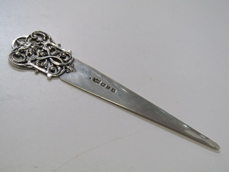 SILVER LETTER OPENER, Samuel Morden "Green man", silver letter opener, with Chester HM, 1900, 13.5cm length, 28.8 grams