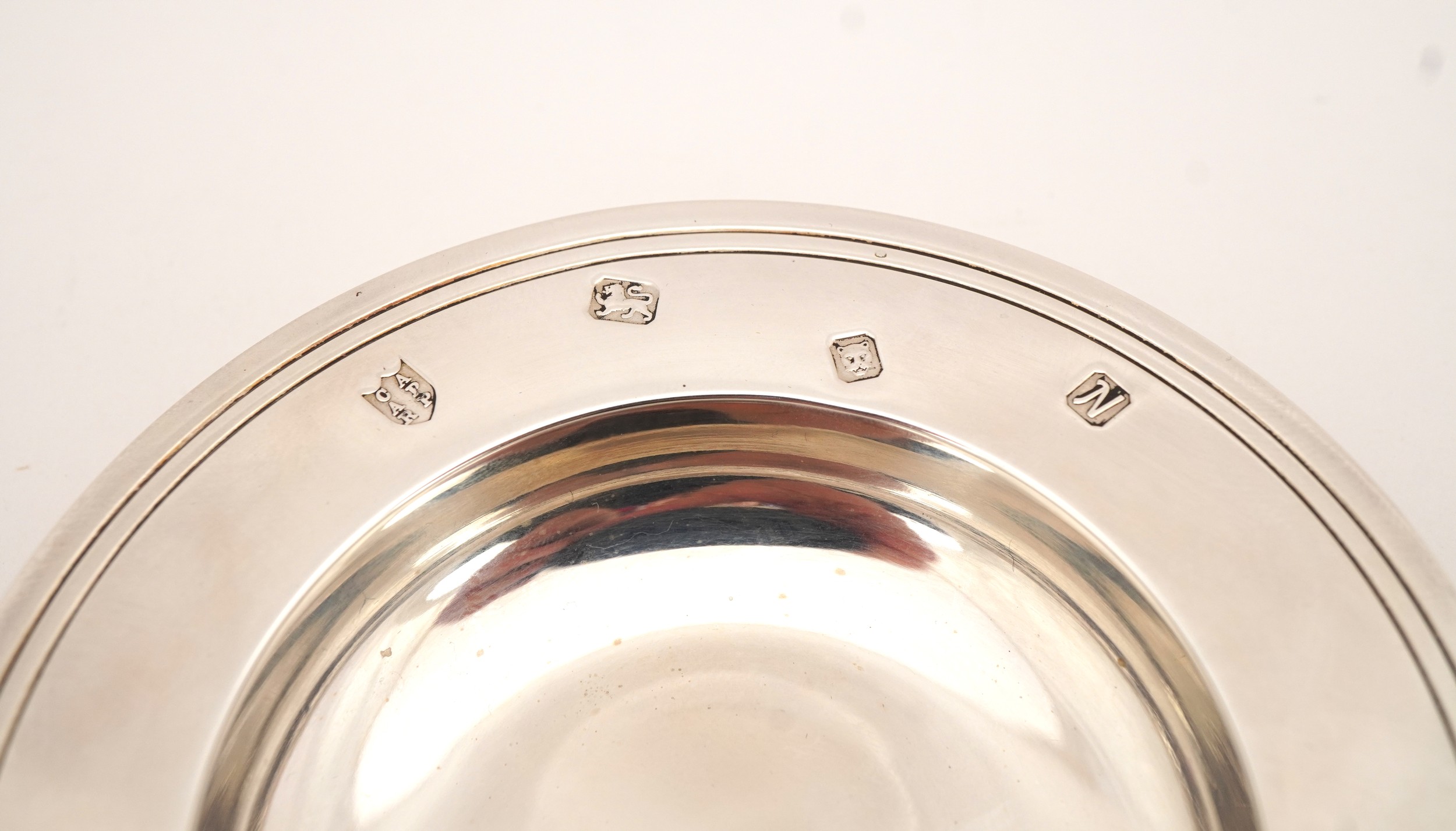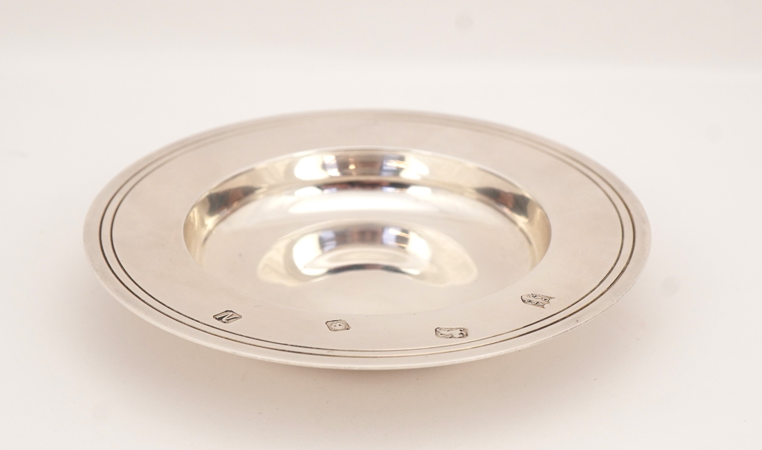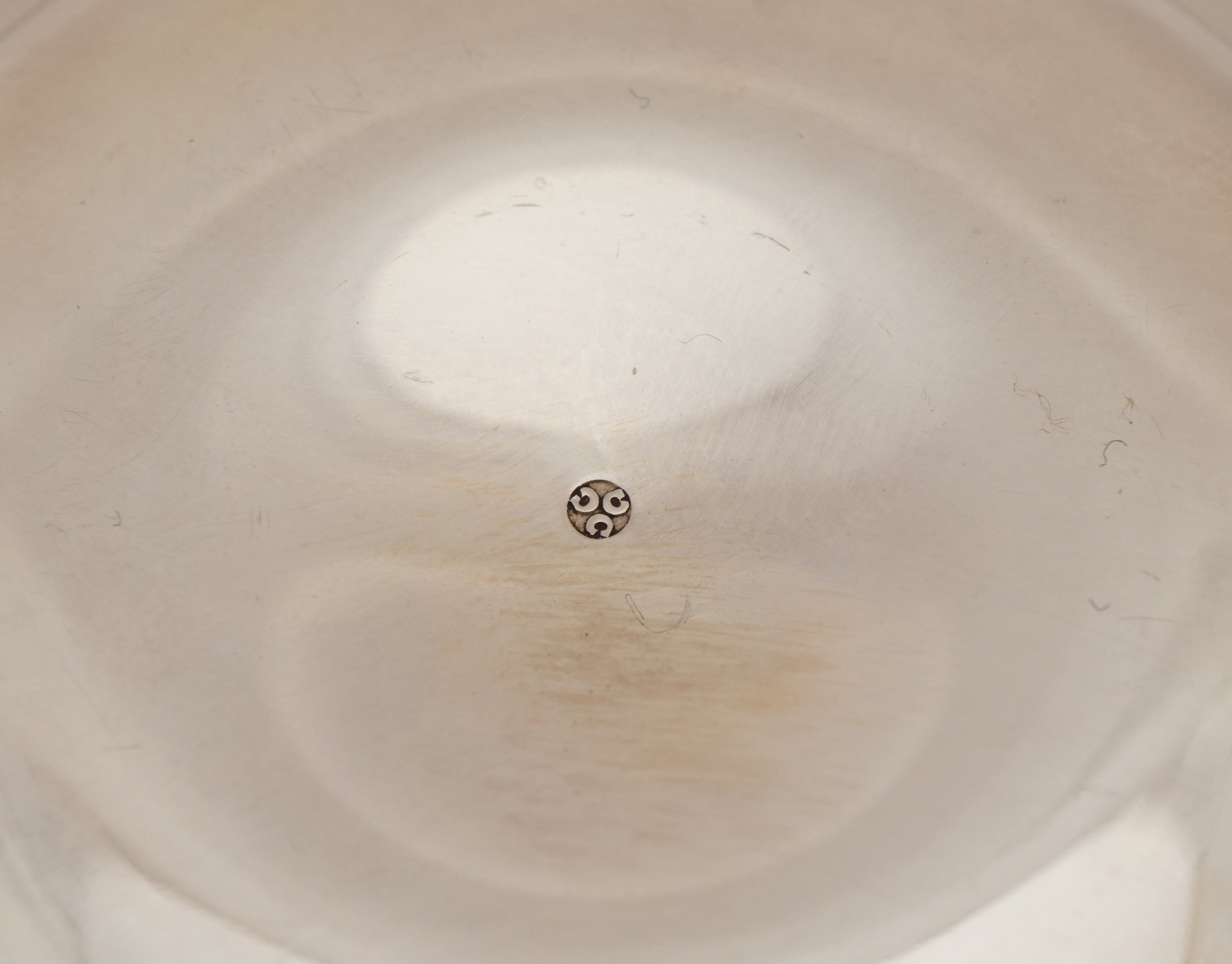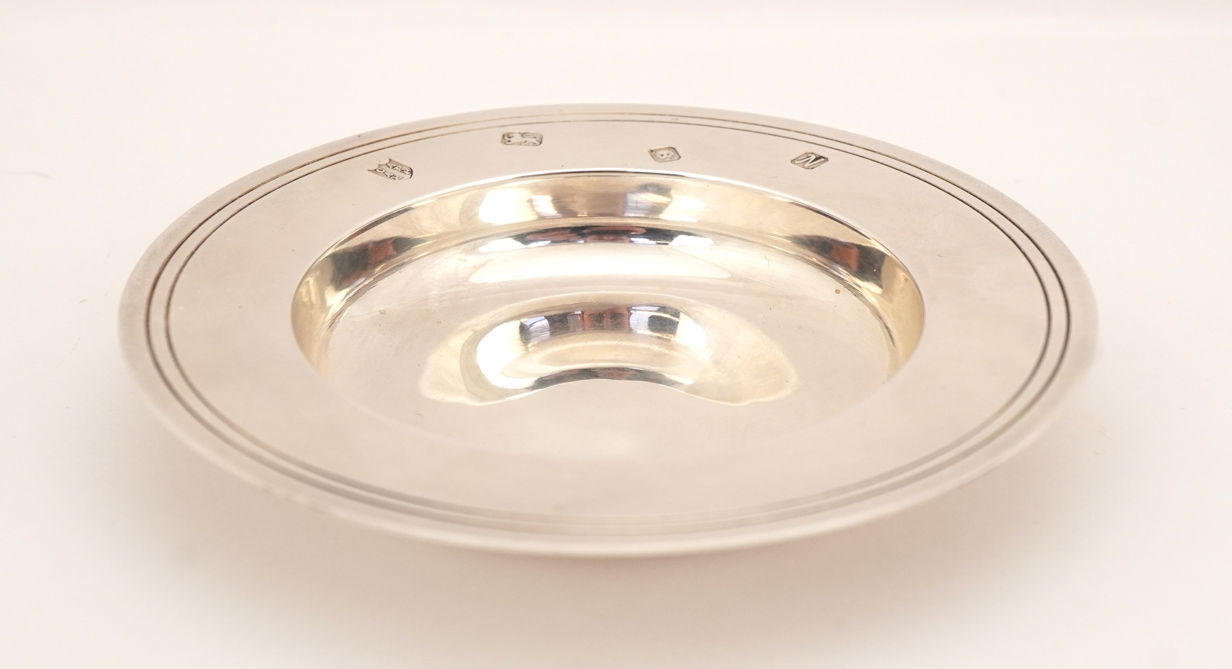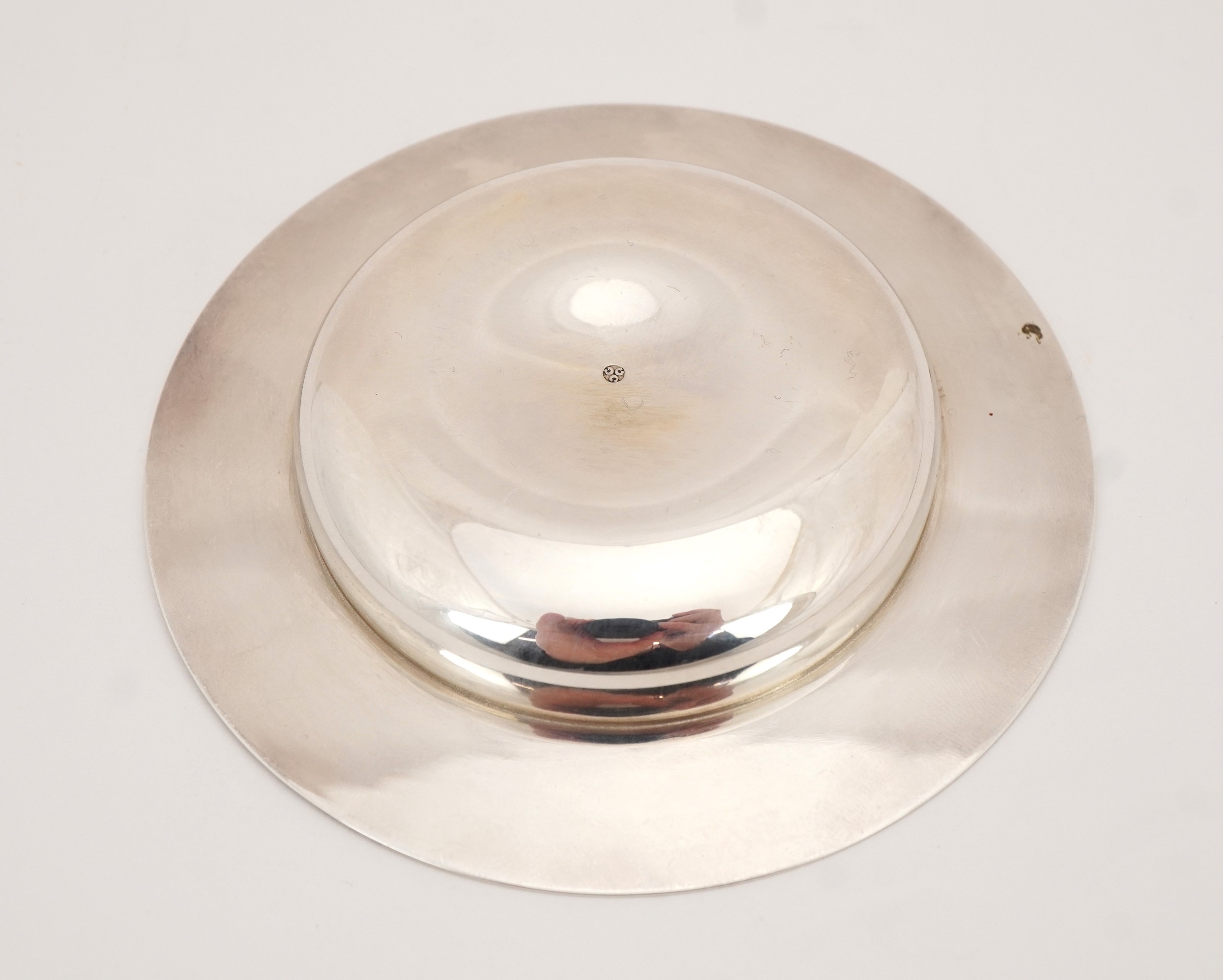 Tessiers Ltd, a circular silver Armada dish, London 1987, 9.5cm in diameter, 58.5g, with box