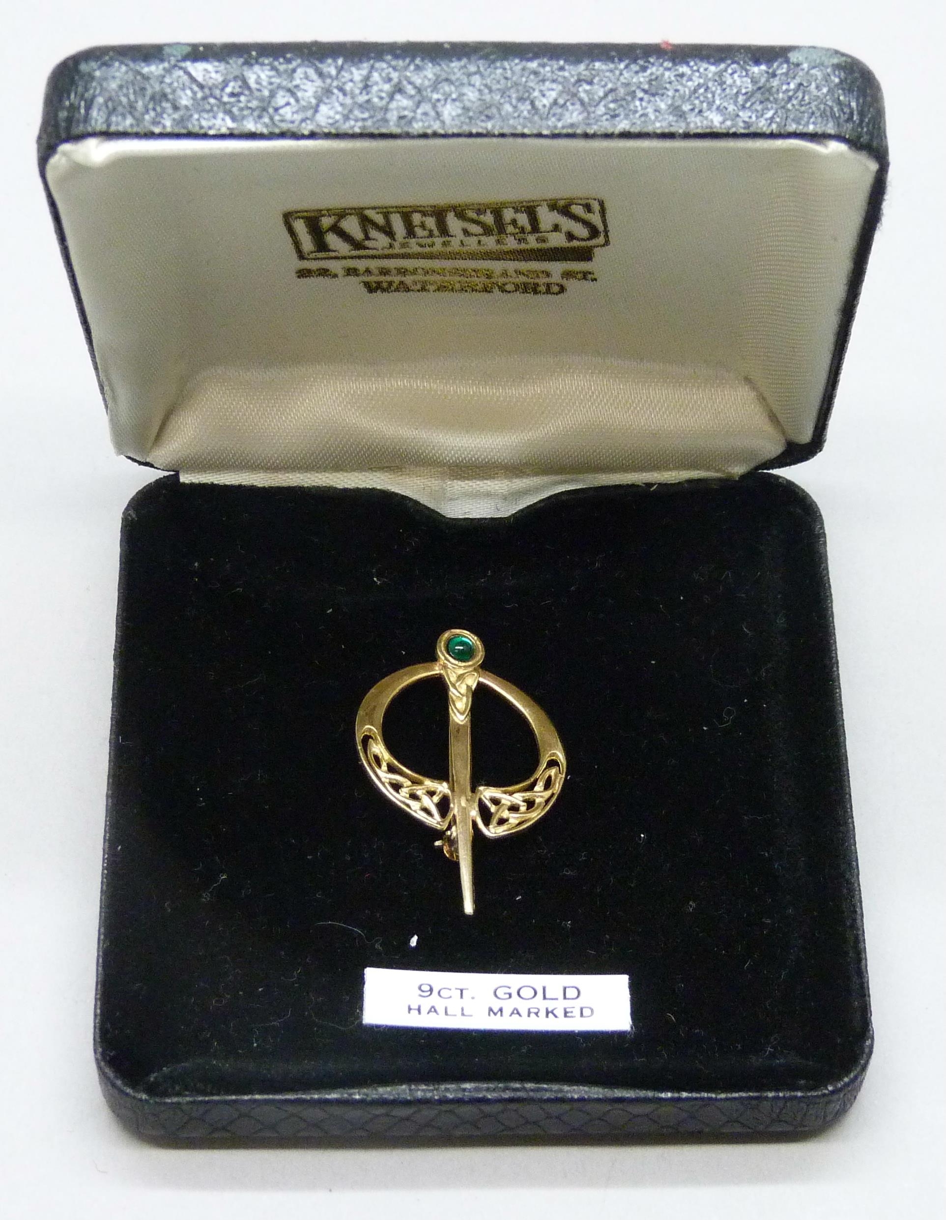 A 9ct gold Celtic design brooch, 2.5g, 3.4cm