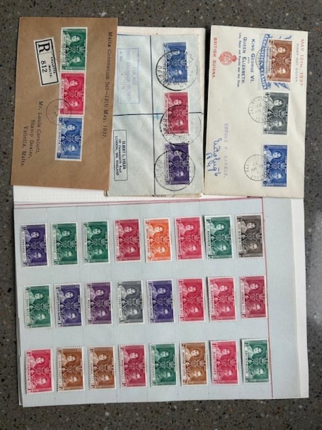 Odds end of lot CW grenada 1937 Coro PHQ cards GB 1935 Jub cover forged pmk (E)