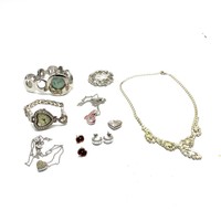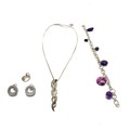 Silver bracelet with agate stones, silver earrings, silver chain and pendant and silver heart pendant.