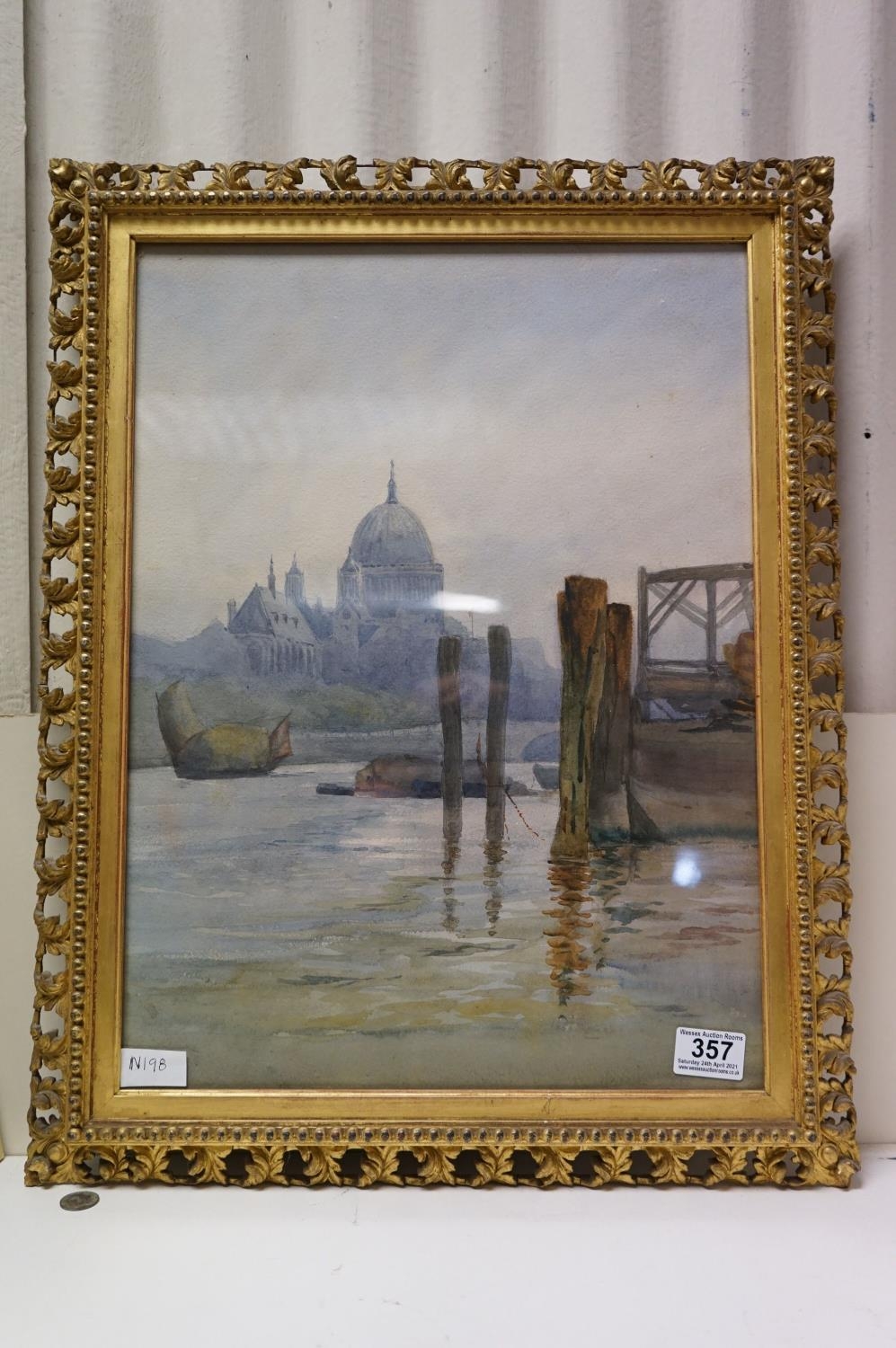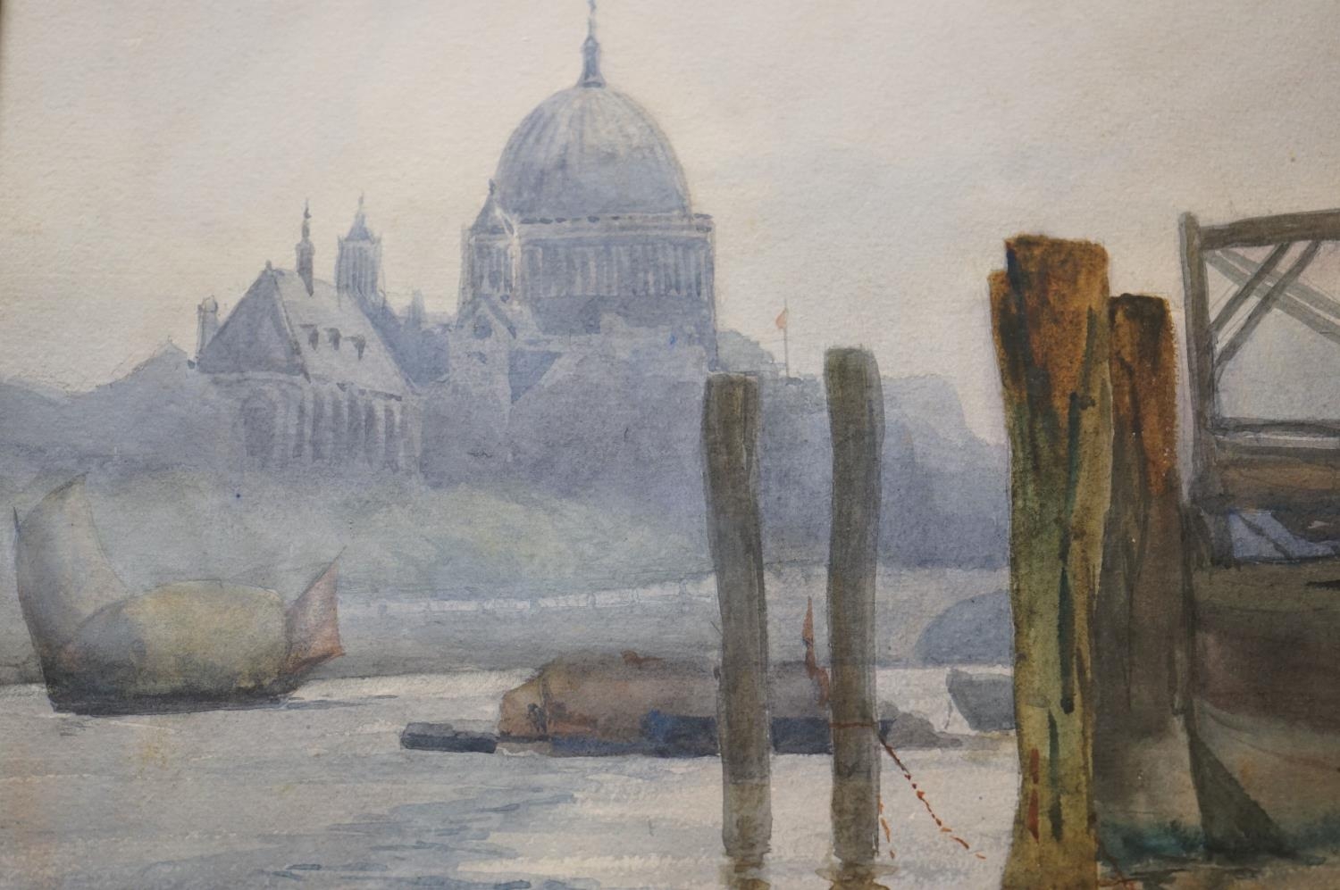 Early 20th century Watercolour of St Pauls's Cathedral across the River Thames, unsigned but label to verso, 35cms x 48cms, gilt framed and glazed