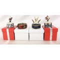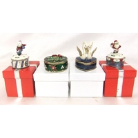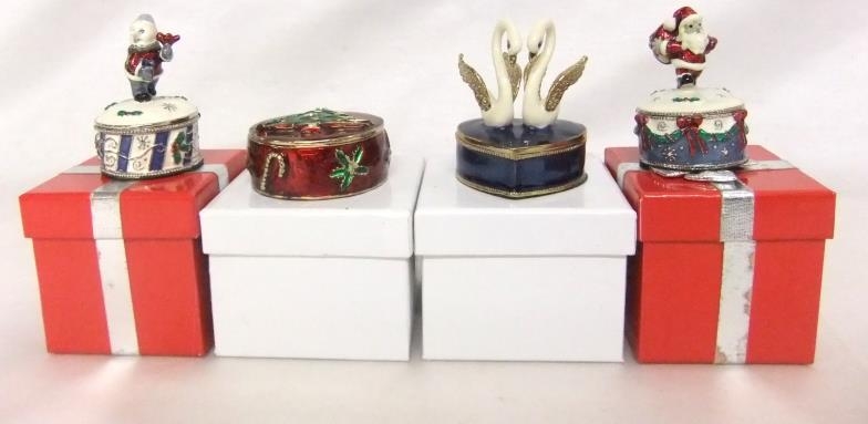 Enamelled Christmas Gift Boxes, Heart Shaped Enamelled Box decorated with 2 swans & Circular Enamelled Box decorated with Christmas tree (4) (CABINET 3)