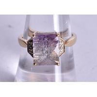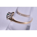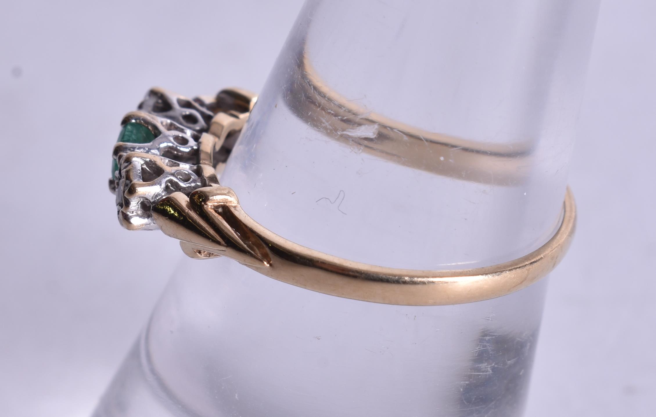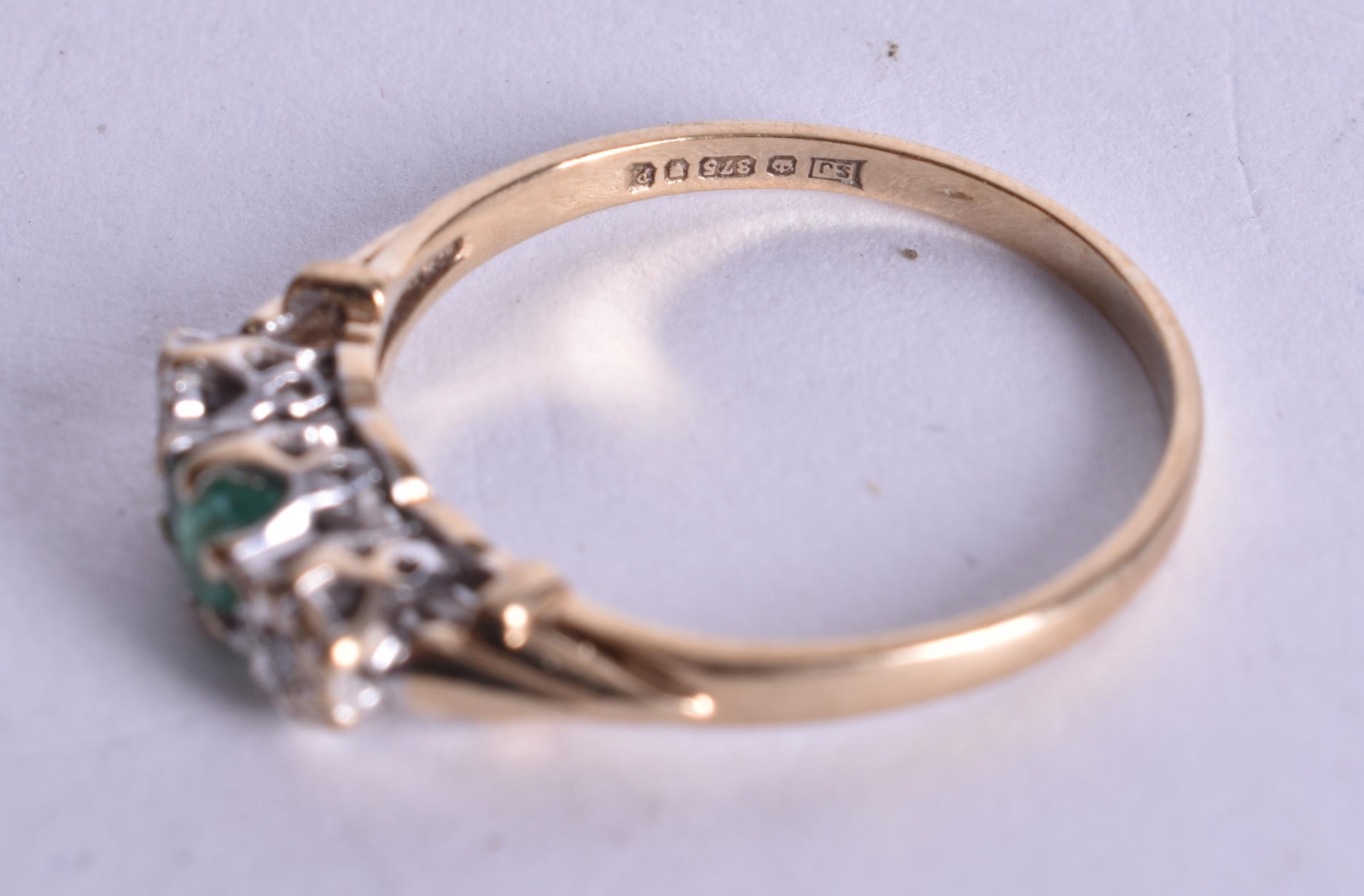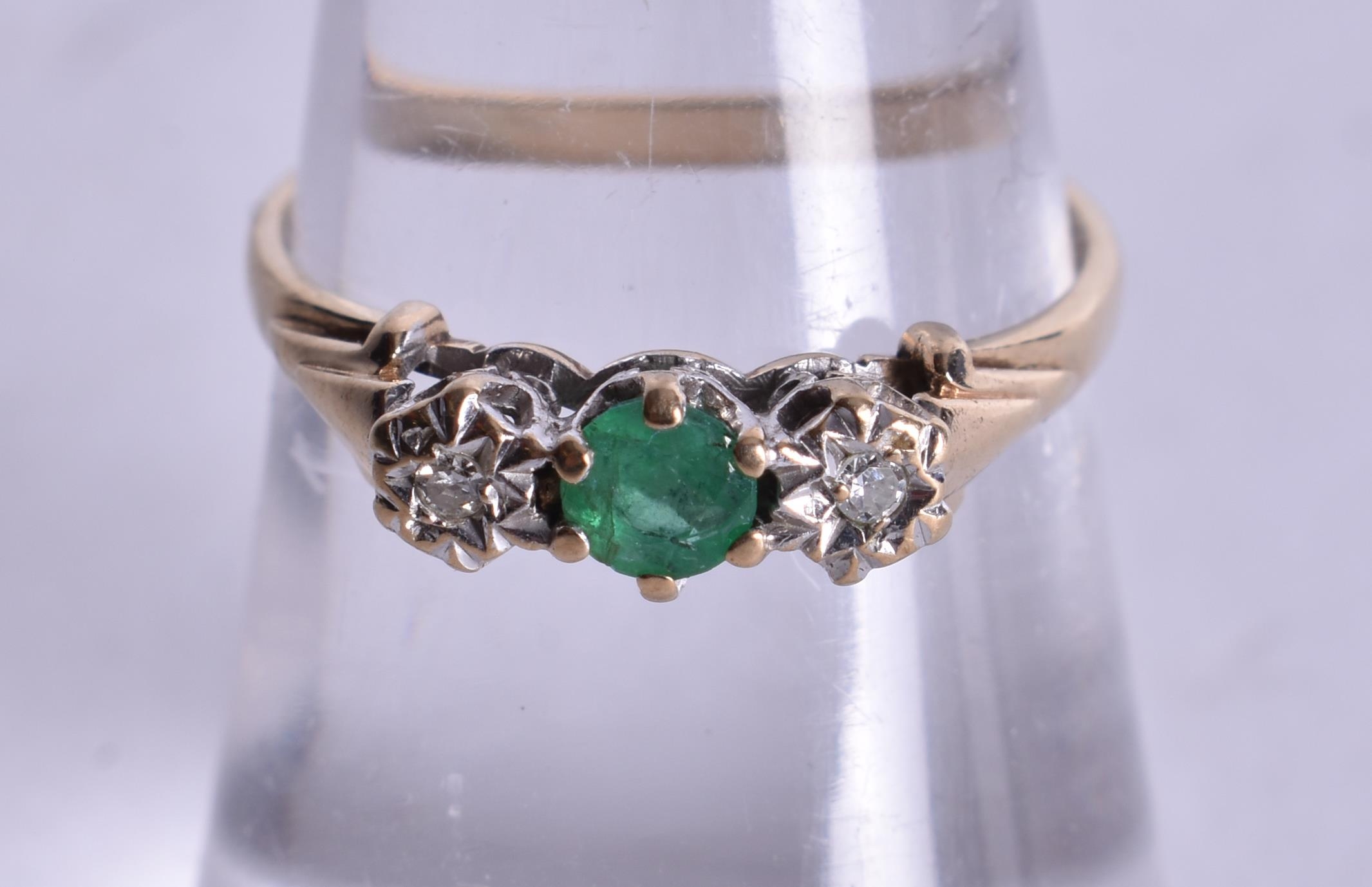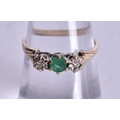 9ct gold emerald diamond trilogy ring (1.5g). M 1/2.