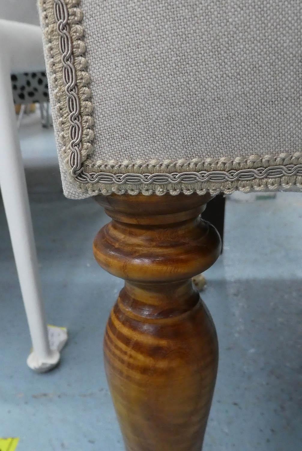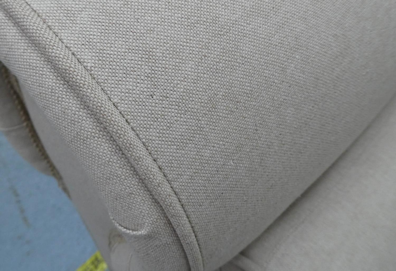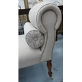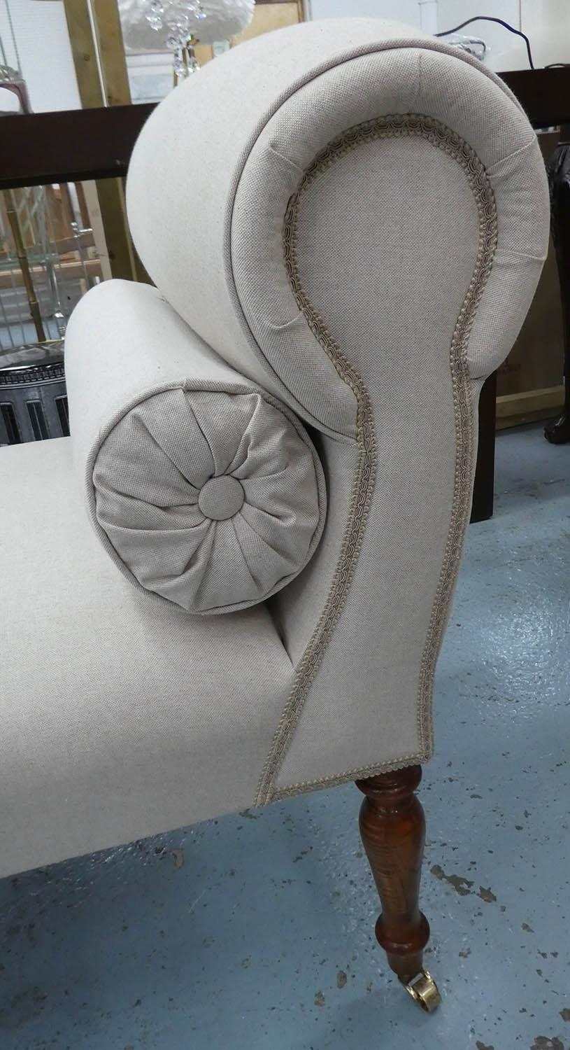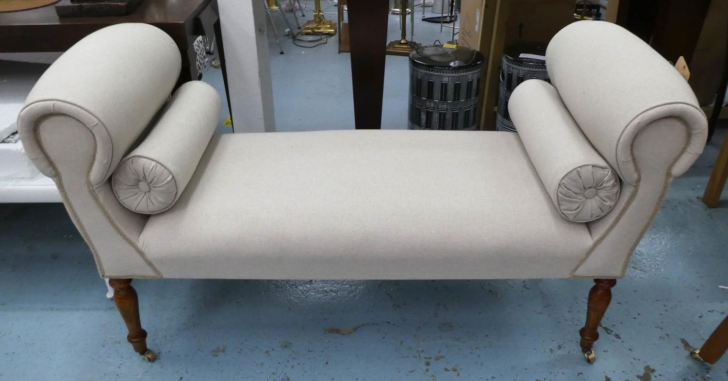WINDOW SEAT, late Victorian design, neutral linen upholstered with two bolster cushions, 139cm W.