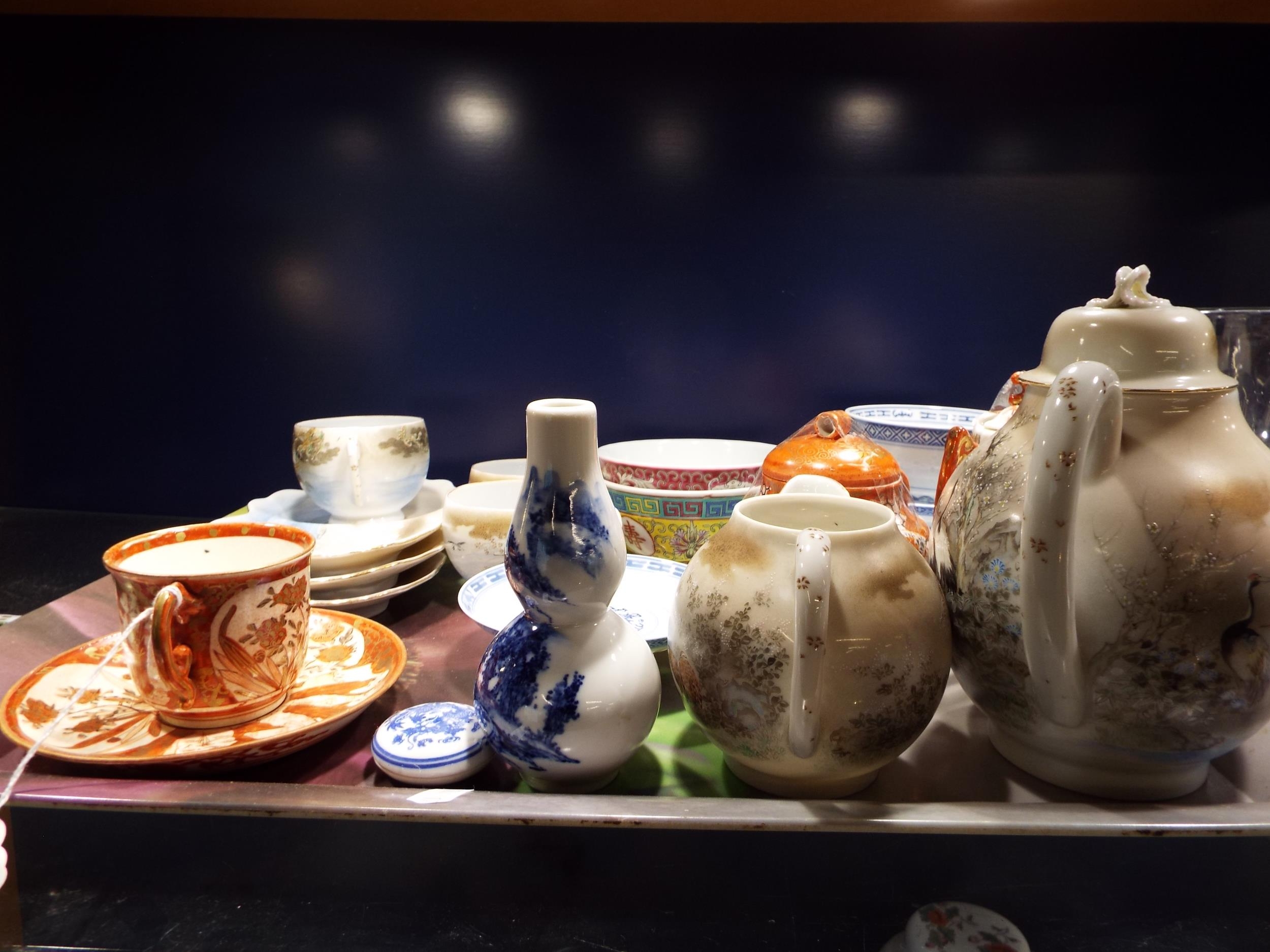 A mixed selection of assorted Oriental china to include cup and saucers, tea bowl, tea-pot etc