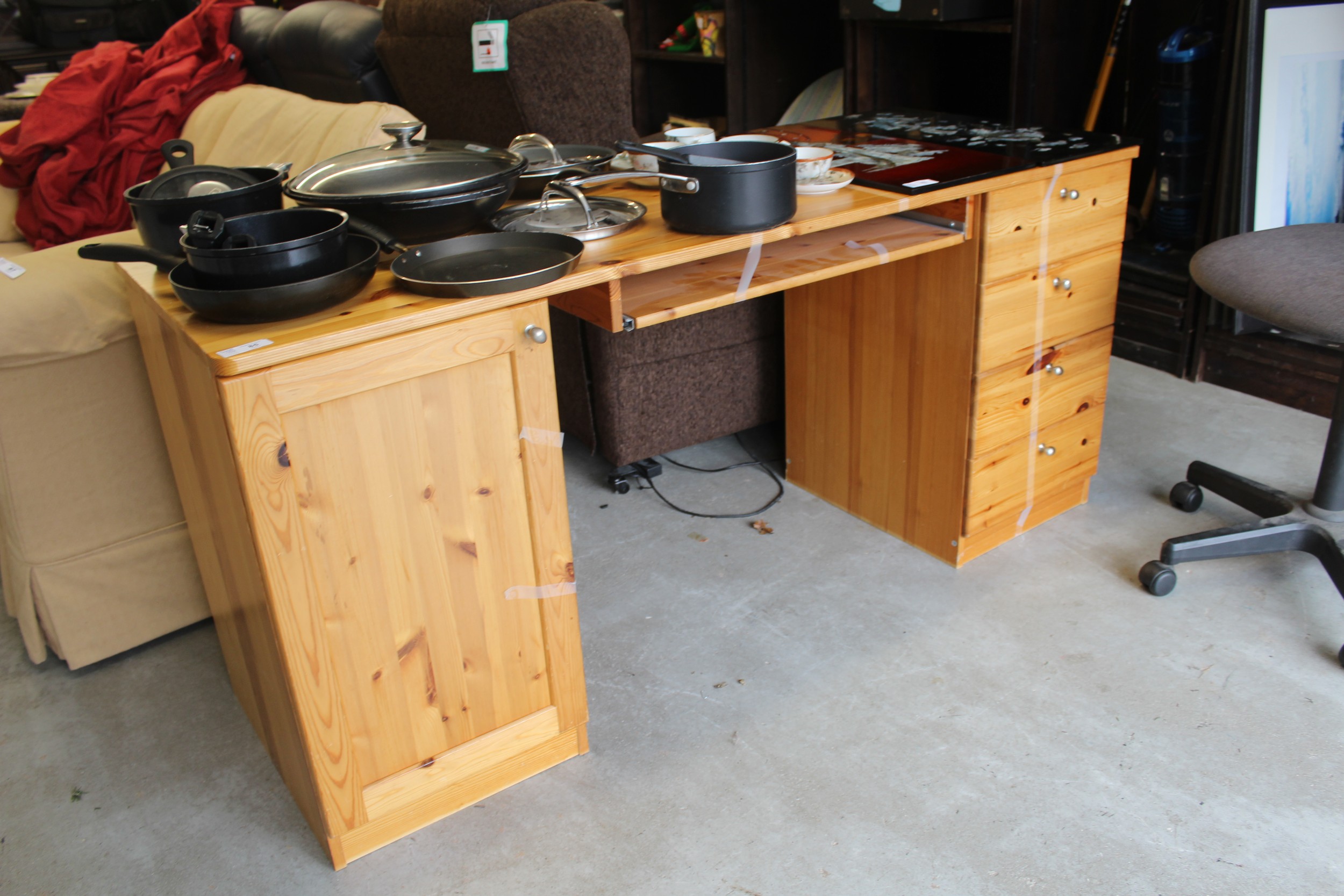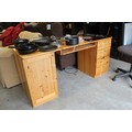 Pine Twin Pedestal Desk with Computer Under-shelf with Three Drawer Cabinet and Cupboard