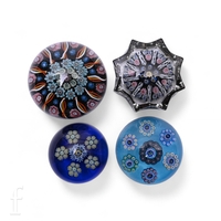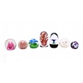 A collection of 20th Century glass paperweights, to include Caithness, Strathearn and Selkirk examples, all decorated with varying examples of internal decoration, largest height 10cm. (7)