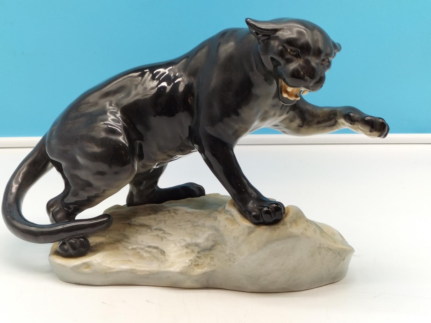 Beswick Figure of a Black Puma on Rock. 21cm High x 32cm.
