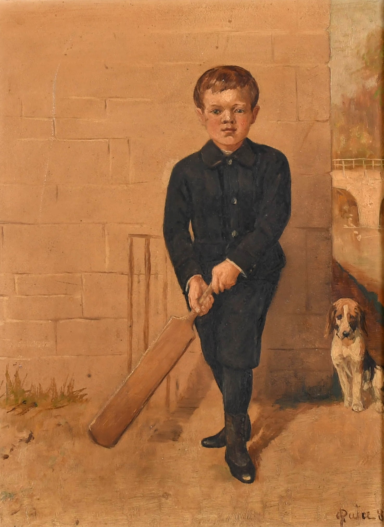 George Paice (1854-1925) British. The Young Cricketer, Oil on board, Signed and dated '88, 12" x 9" (30.5 x 22.8cm)