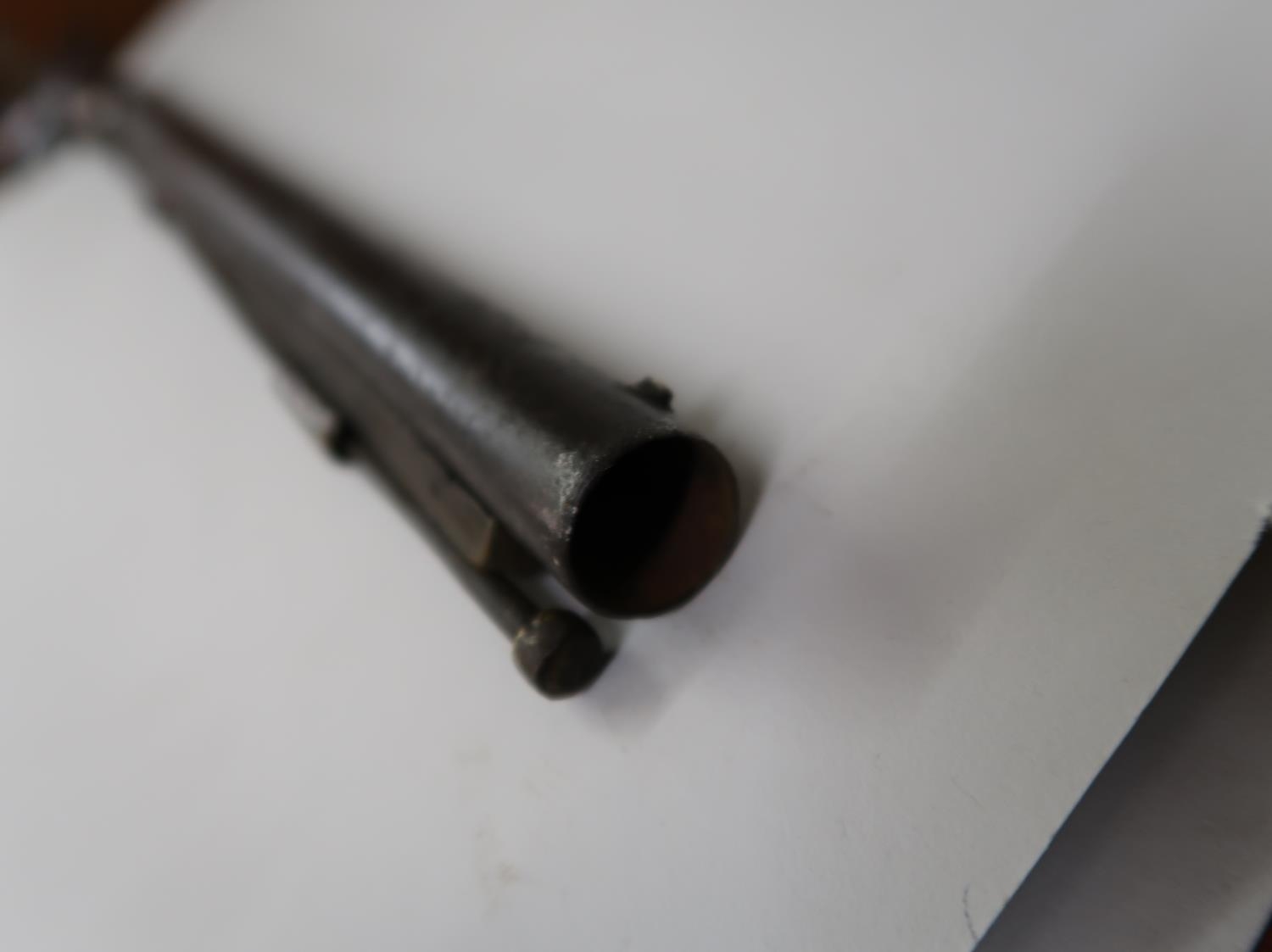 Antique flintlock rifle (converted to percussion cap) having ramrod, brass mounts and mahogany stock, 48.5ins total length with 32in barrel