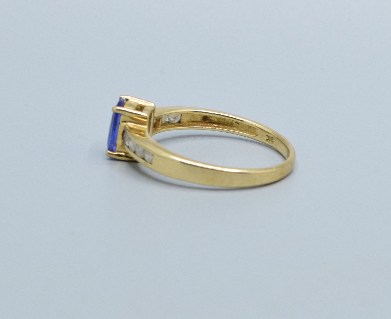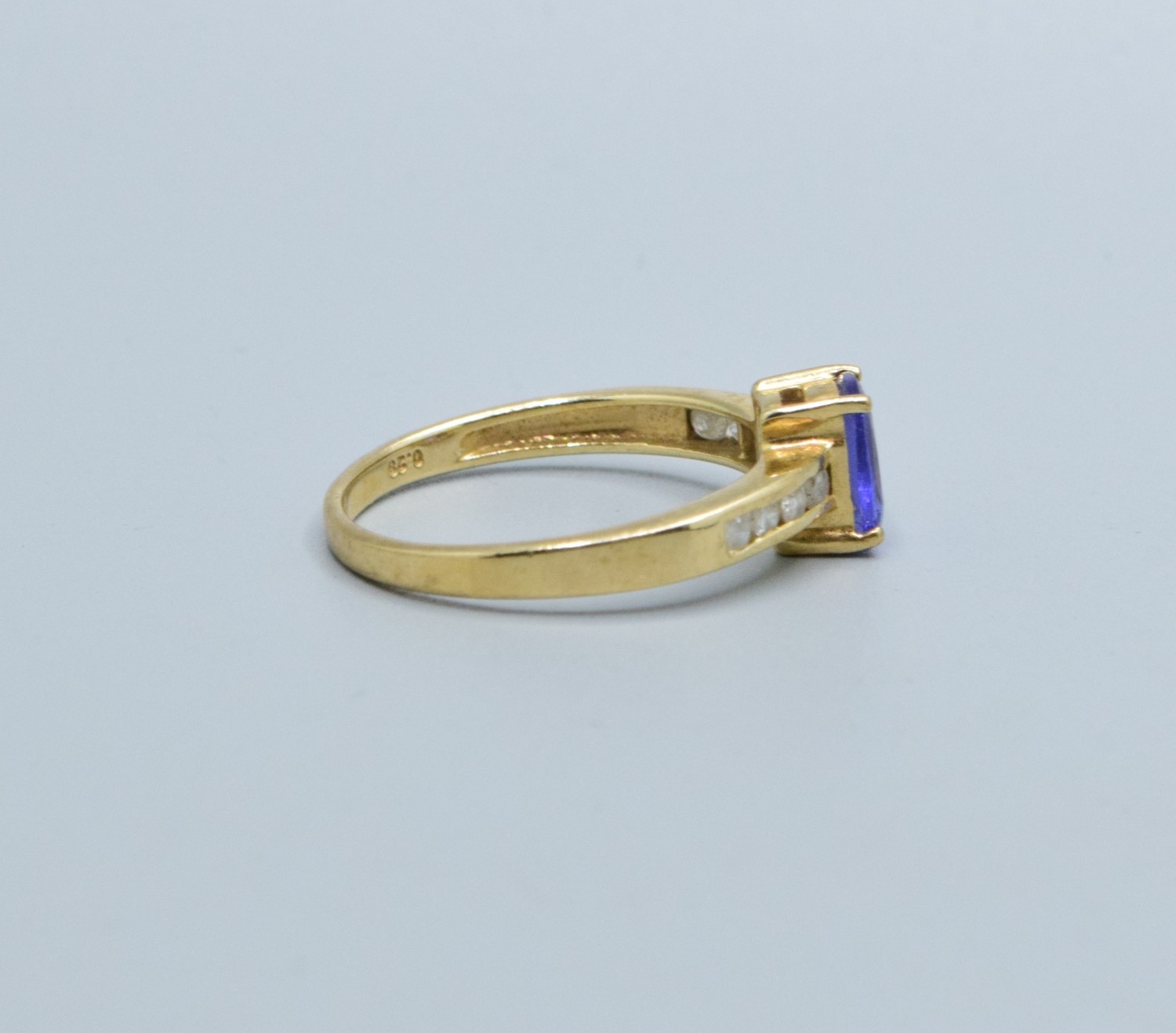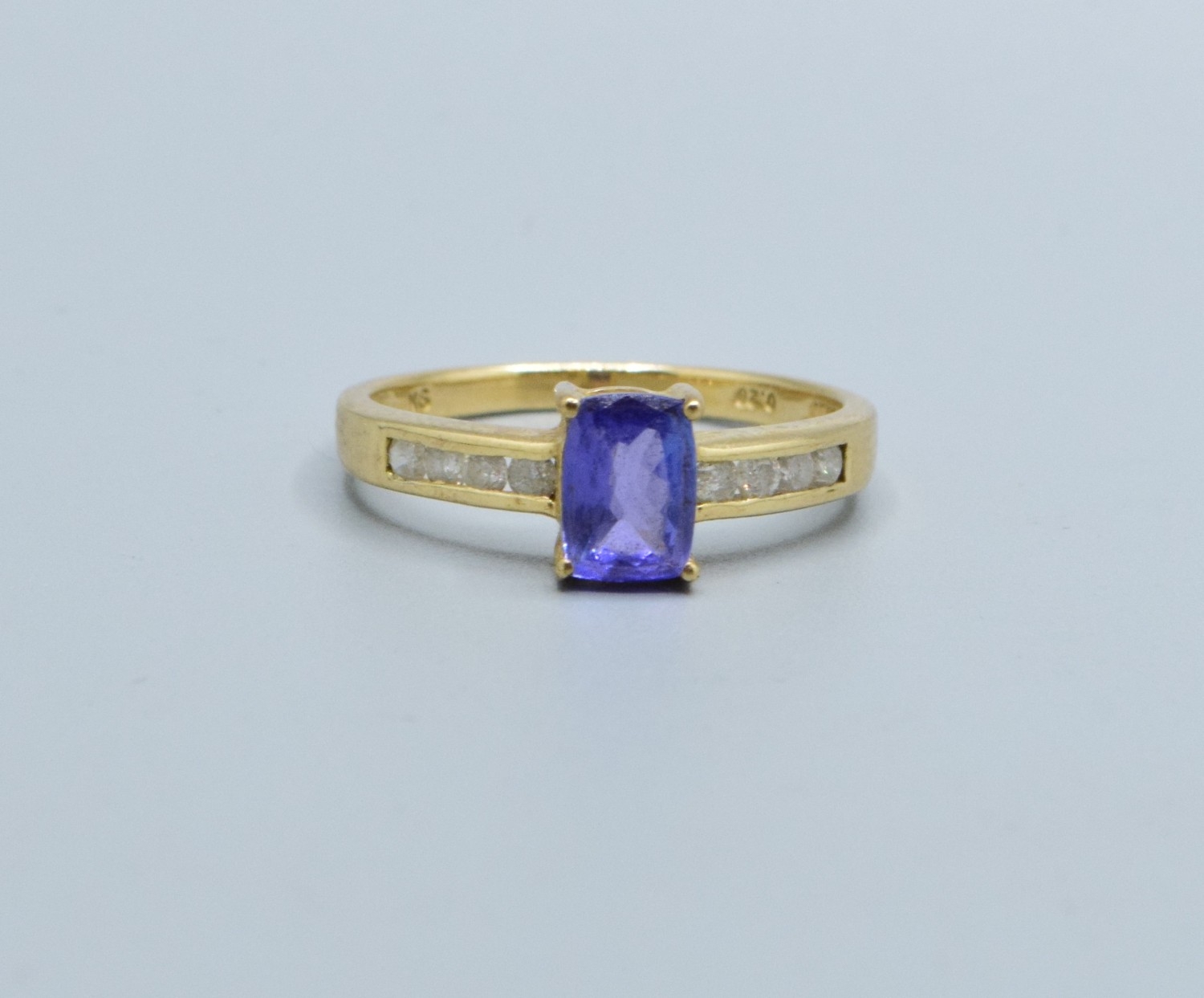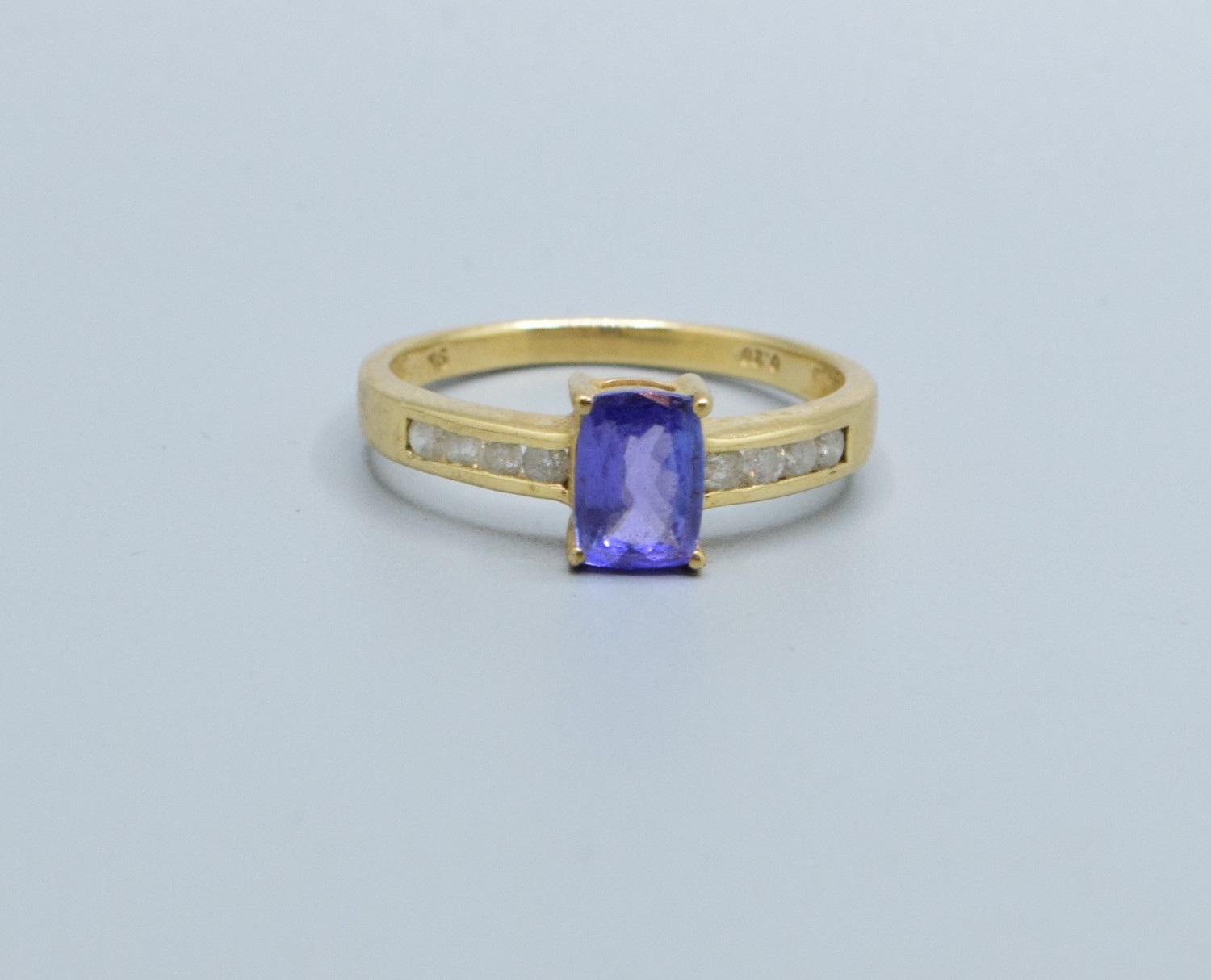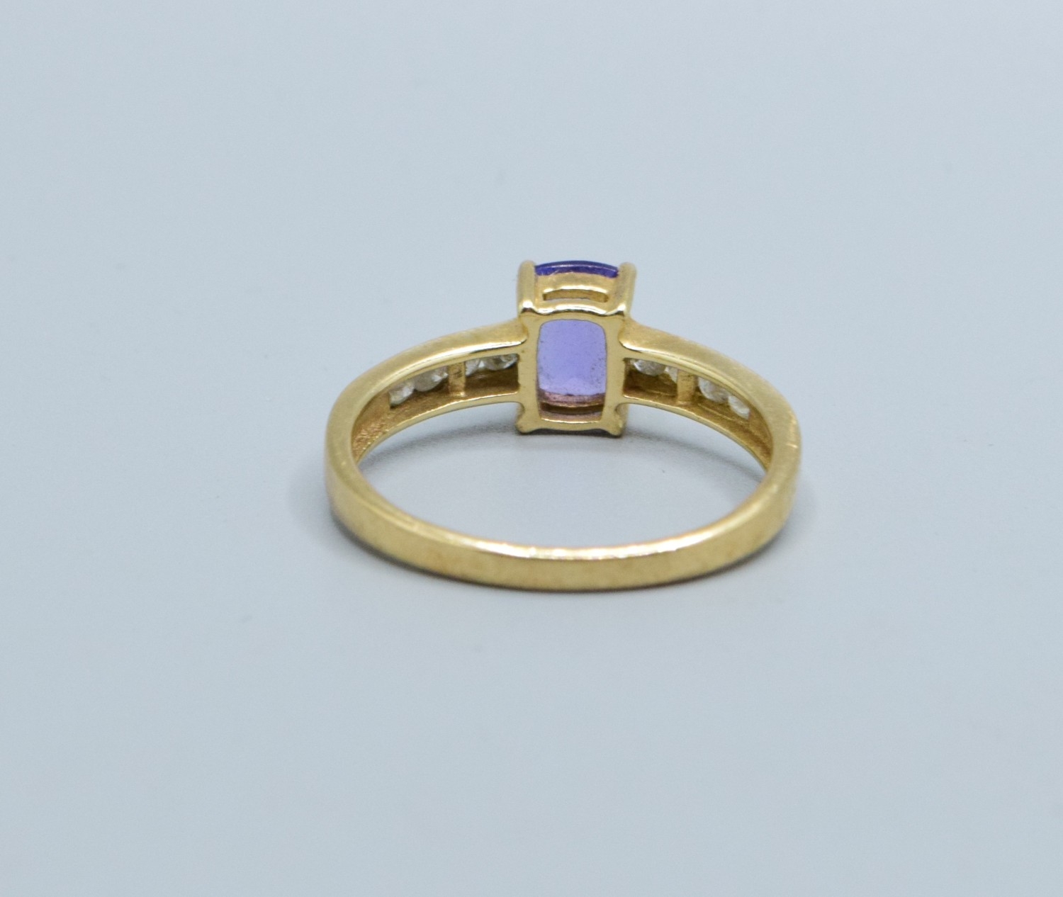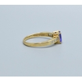 9ct gold ladies Amethyst and Diamond shoulder ring hall marked in ring as Diamond 0.25cts size P
